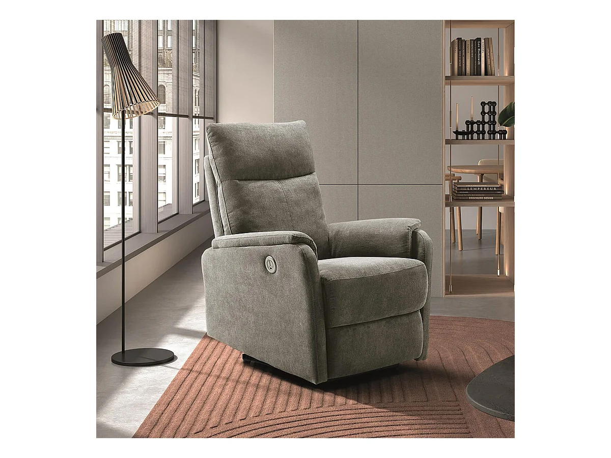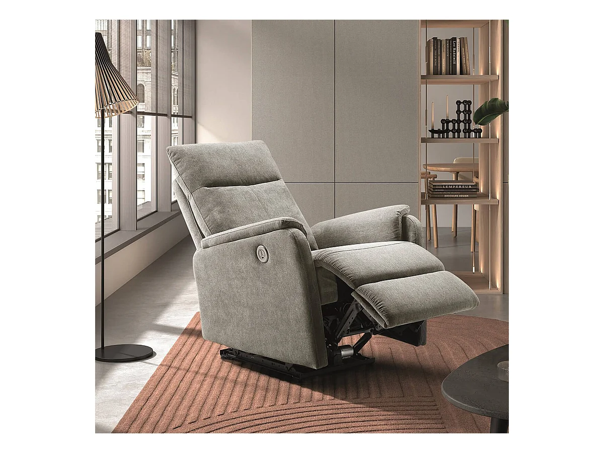 ALCANTAR - Fauteuil Relax Electrique Tissu Gris clair