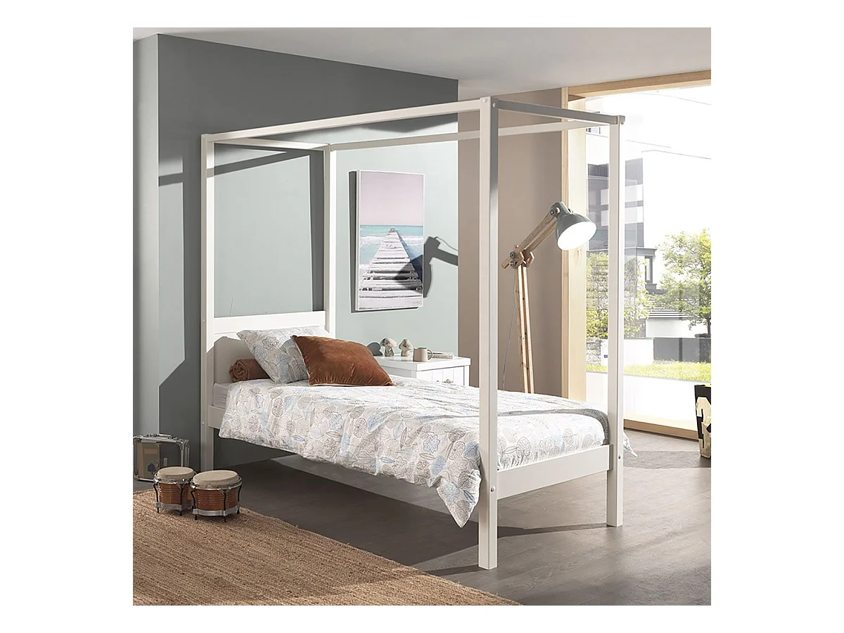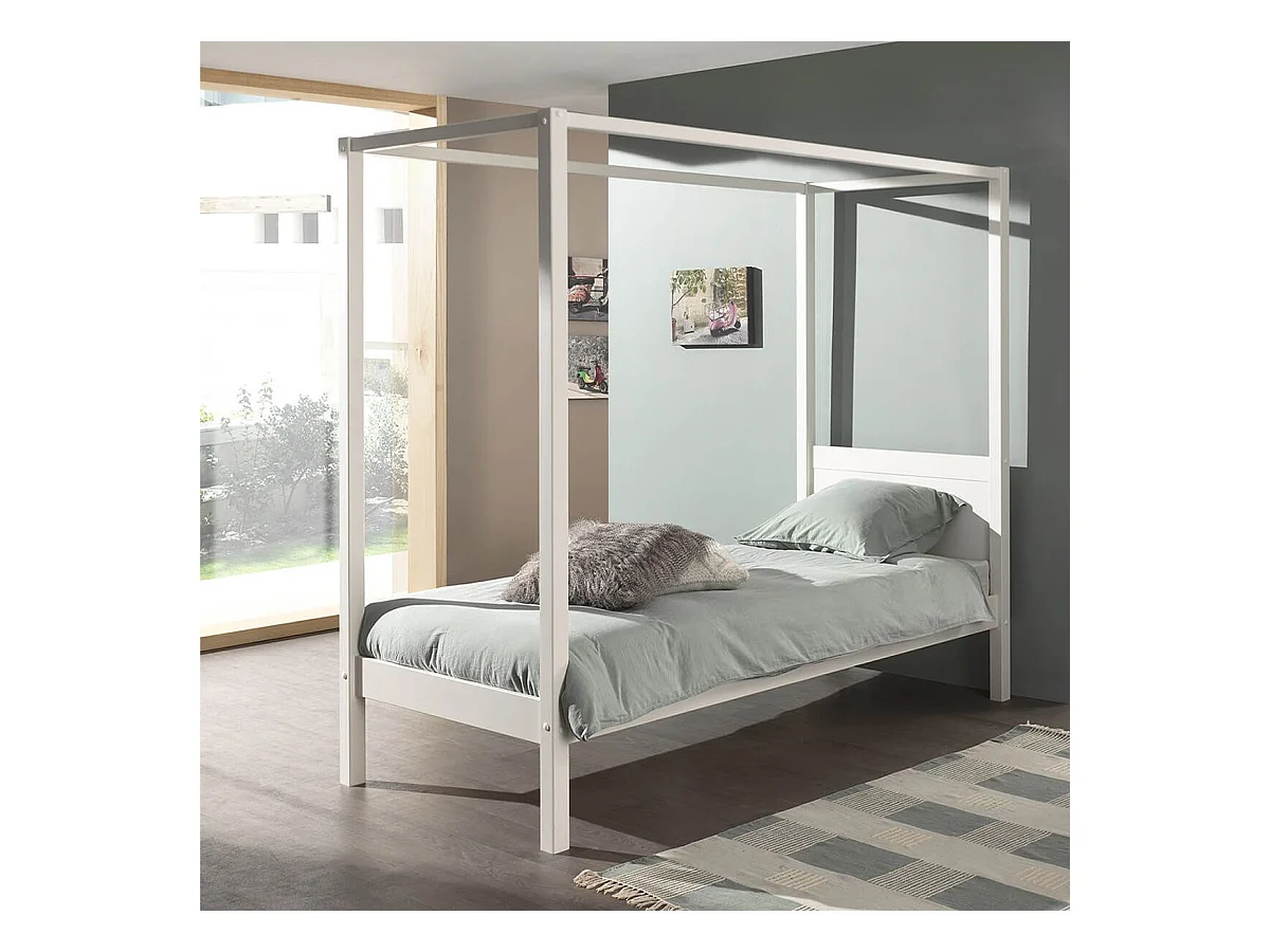 ALCOVE - Lit Baldaquin en Pin Laqué Blanc 90x200cm