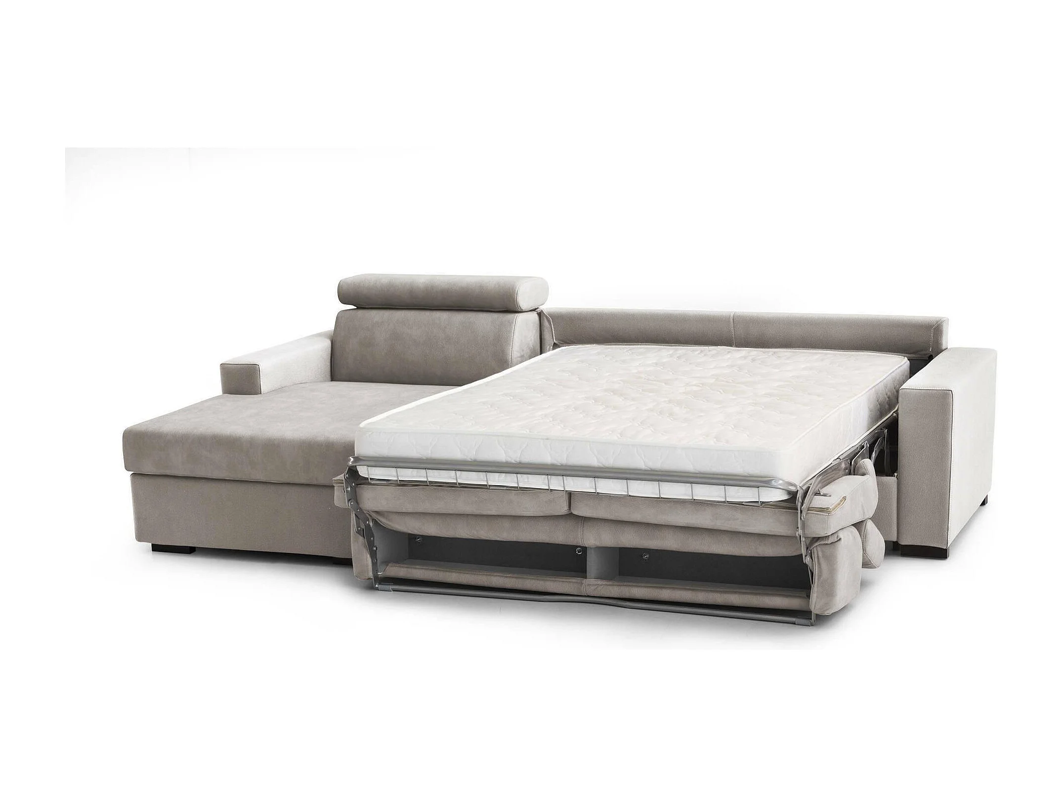 Divano letto con penisola Alda, Sof con penisola contenitore Sinistra, Braccioli standard, 100% Made in Italy, Cm 280x95h85, Tortora