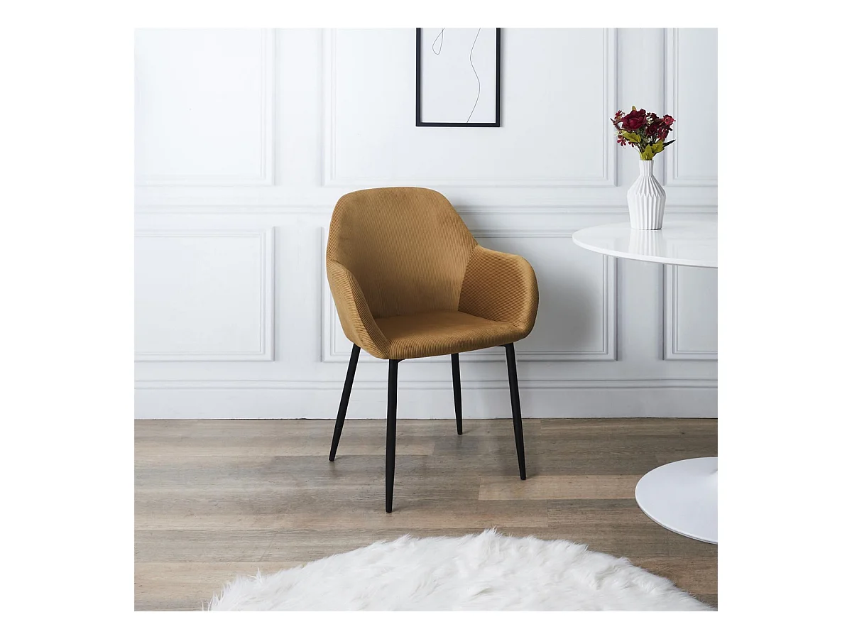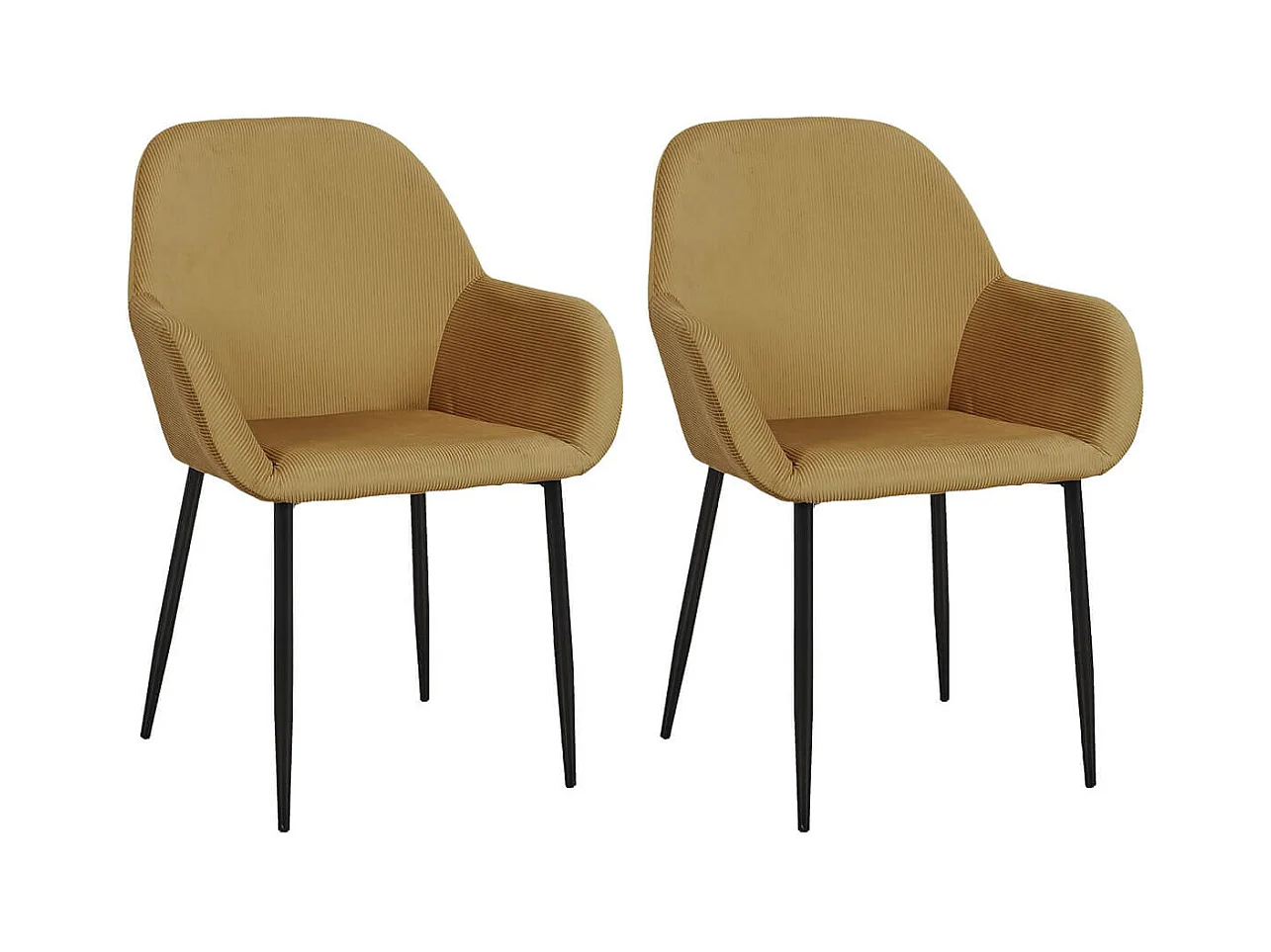 ALESSIA - Lot de 2 Fauteuils Velours Côtelé Jaune Moutarde