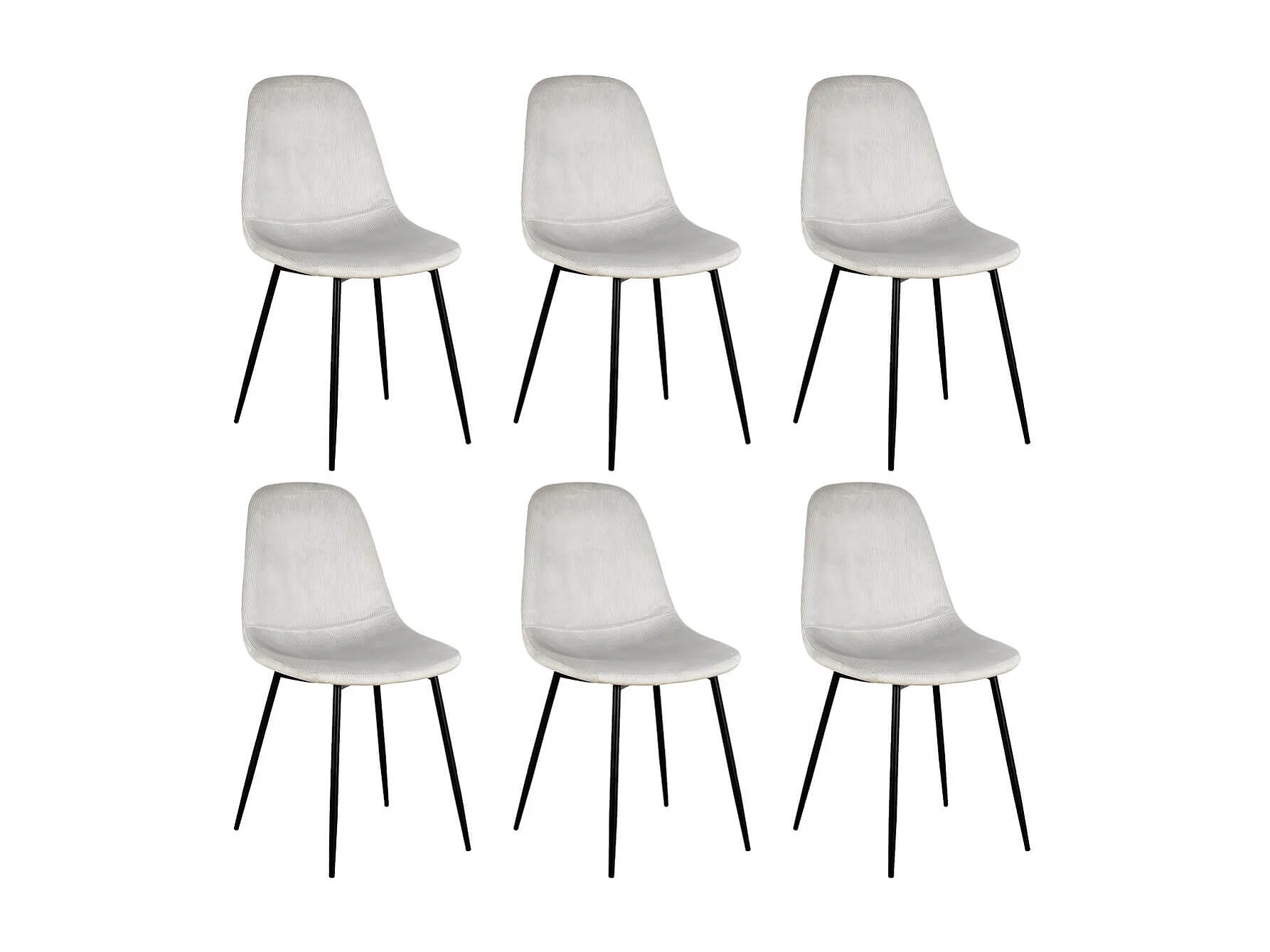 ALESSIA - Lot de 6 Chaises Velours Côtelé Gris Clair