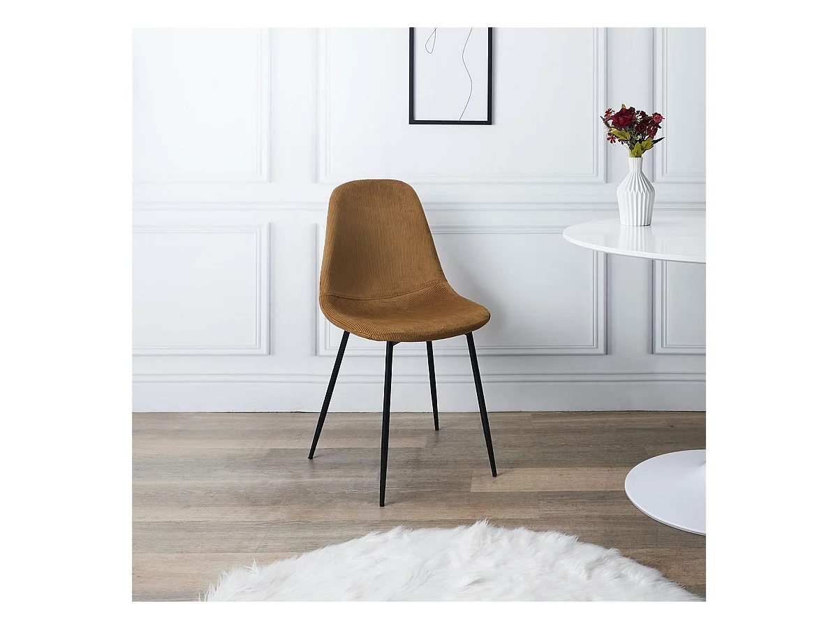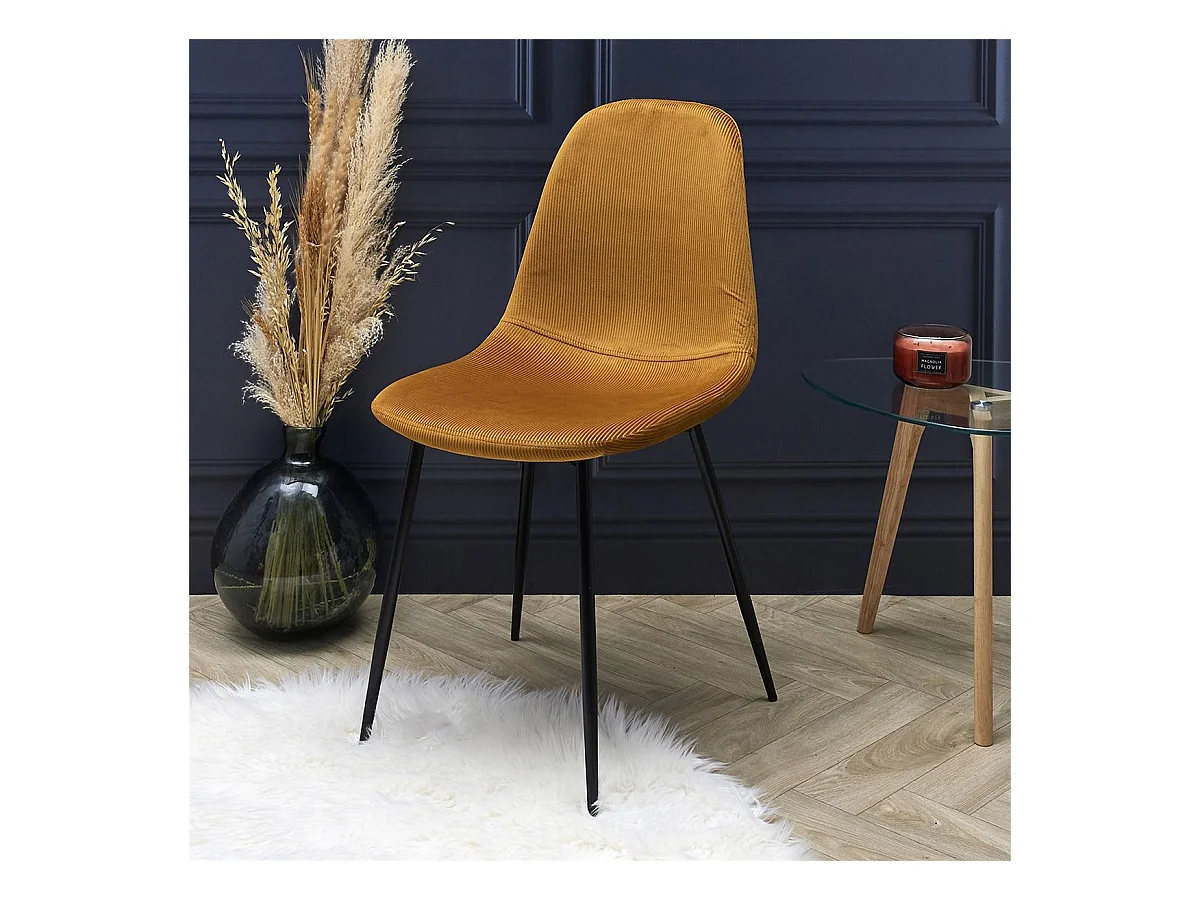 ALESSIA - Lot de 6 Chaises Velours Côtelé Jaune Moutarde