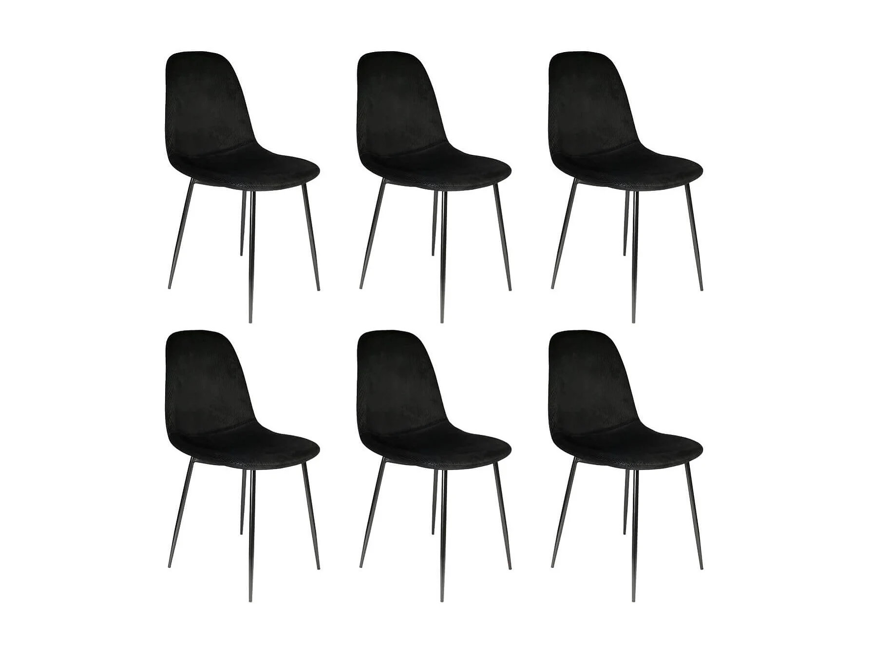ALESSIA - Lot de 6 Chaises Velours Côtelé Noires