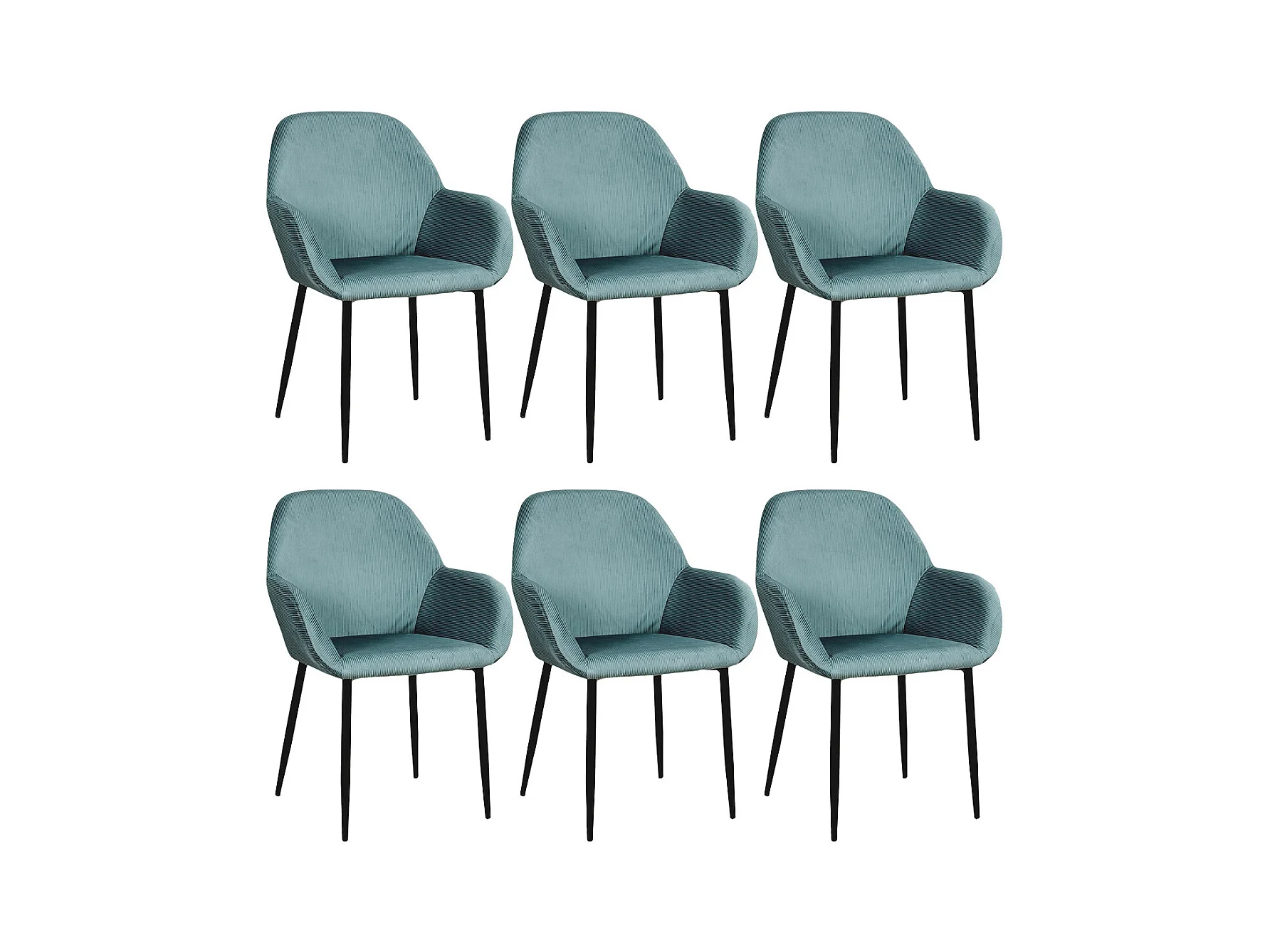 ALESSIA - Lot de 6 Fauteuils Velours Côtelé Bleu Canard