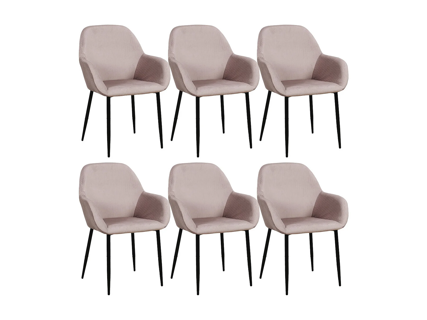 ALESSIA - Lot de 6 Fauteuils Velours Côtelé Rose