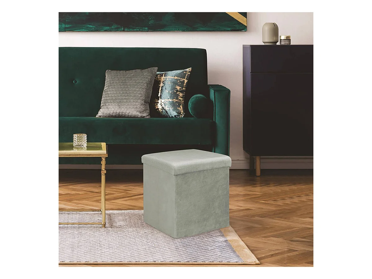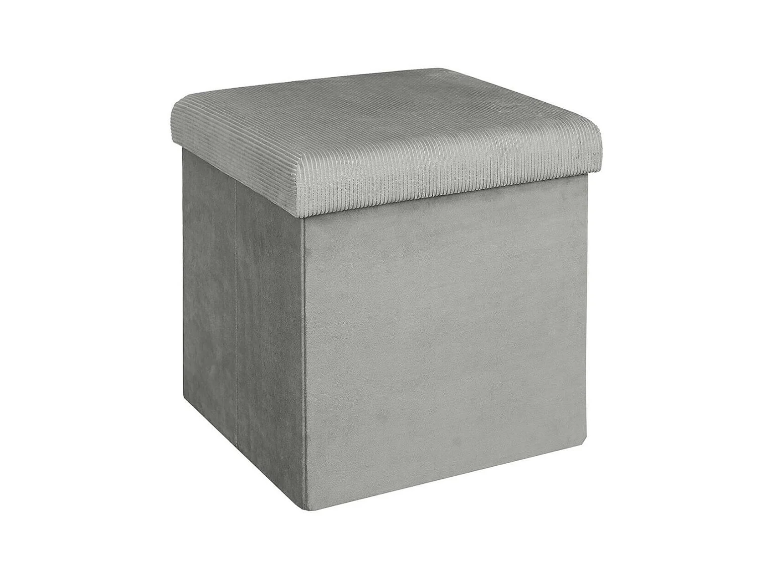 Pouf Coffre Pliable en Velours Côtelé Gris - NEIRA