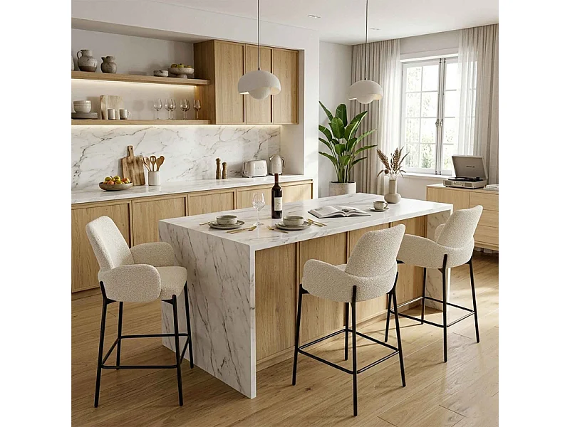 ALEX-Fauteuil de bar en tissu Ikon Coloris Lin (x2)