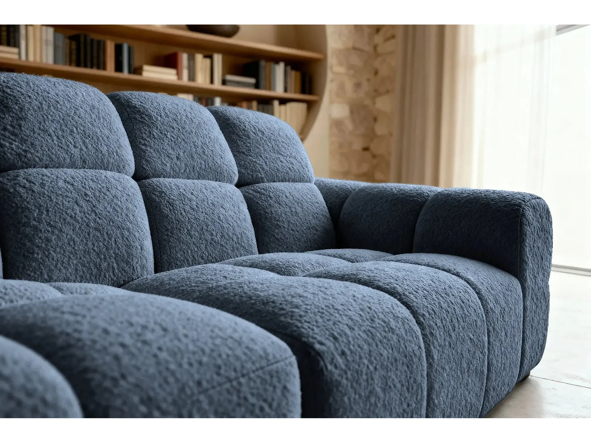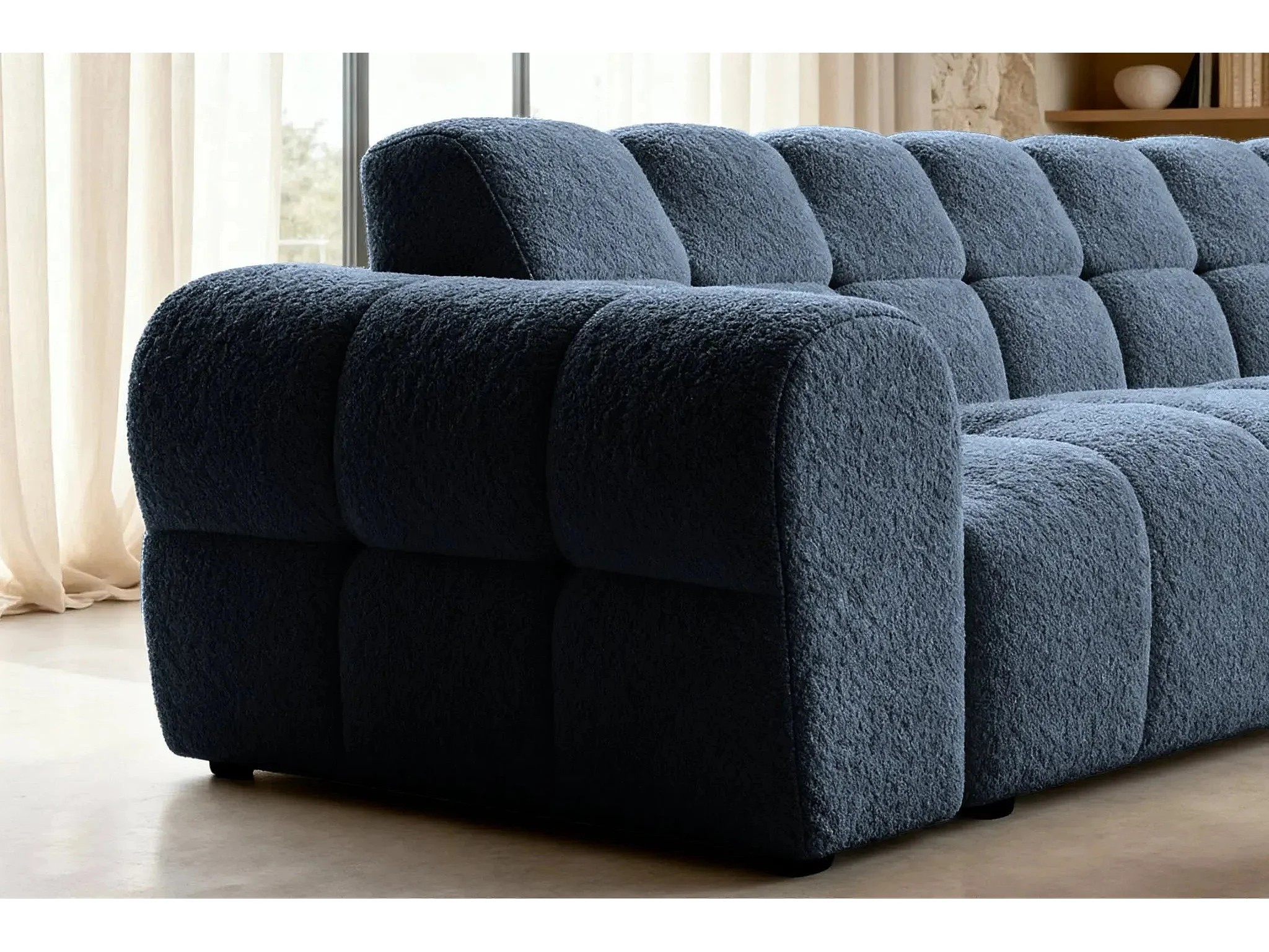 ALEXIA - Canapé d'angle tissu bouclette 4 places - Bleu - Gauche