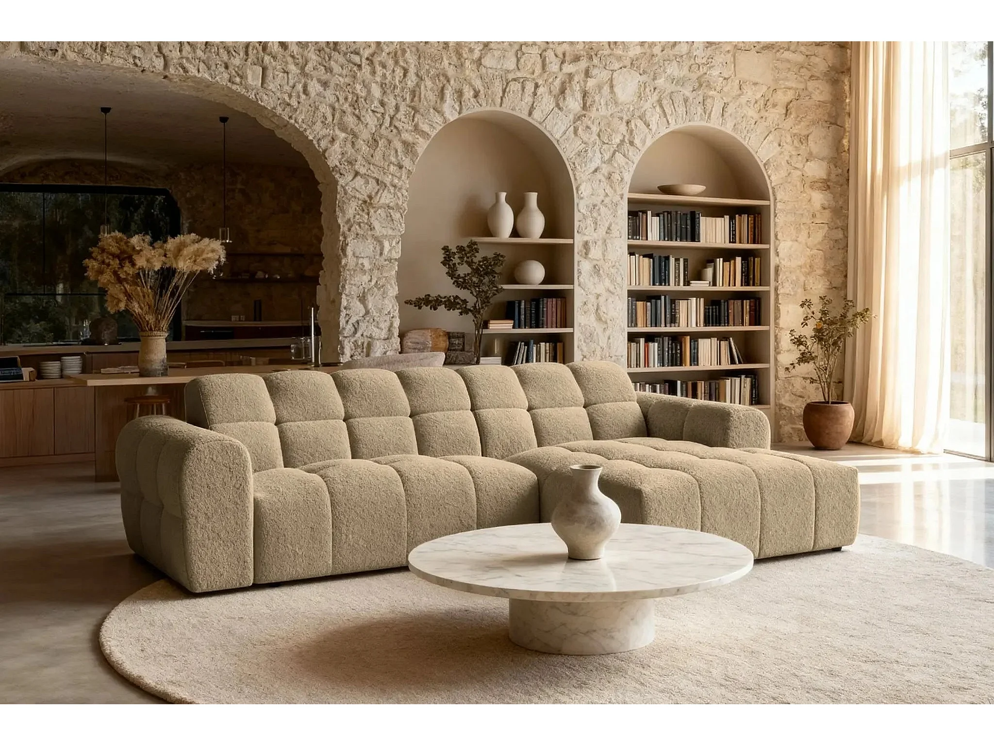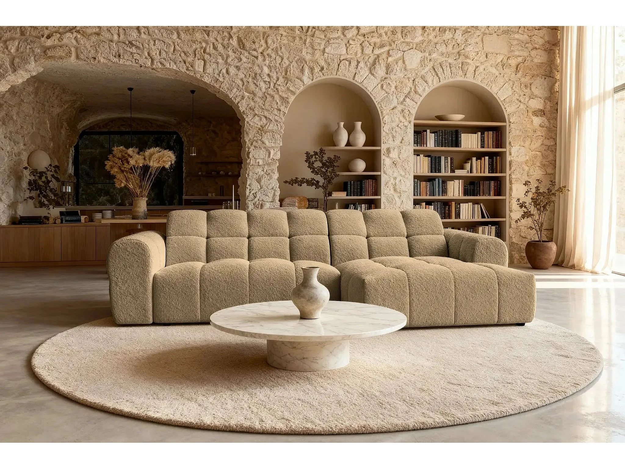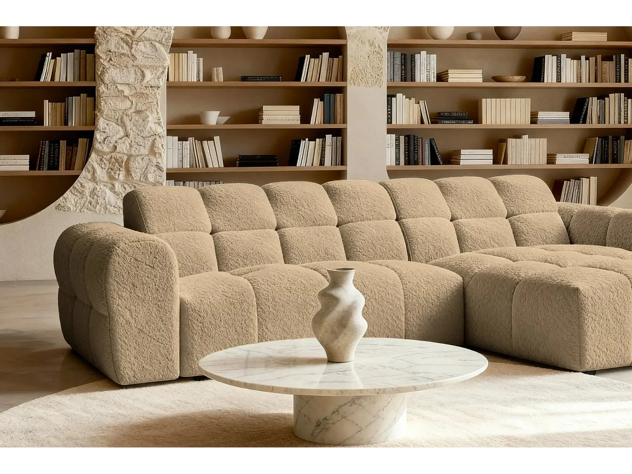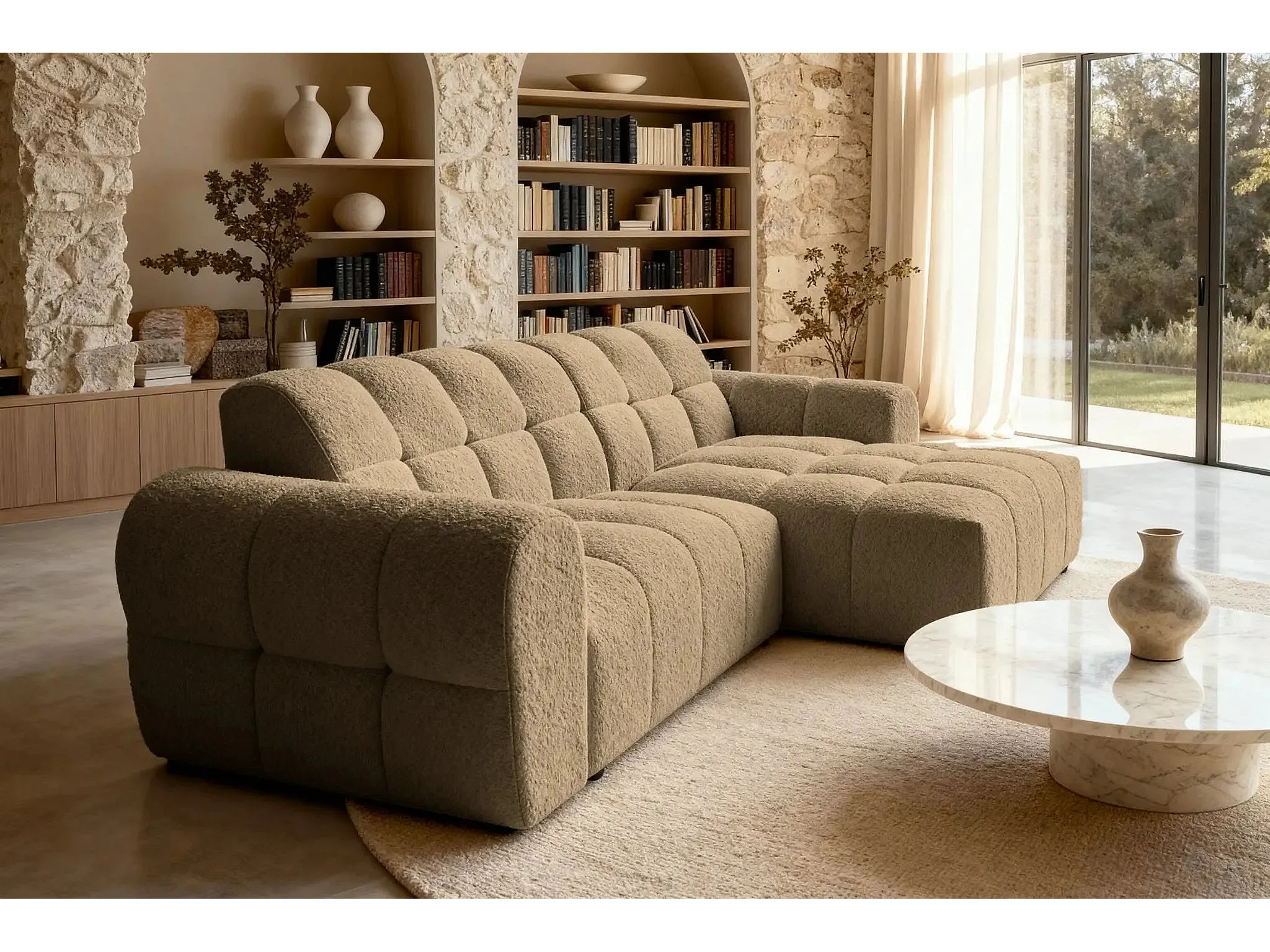ALEXIA - Canapé d'angle tissu bouclette 4 places - Café - Gauche