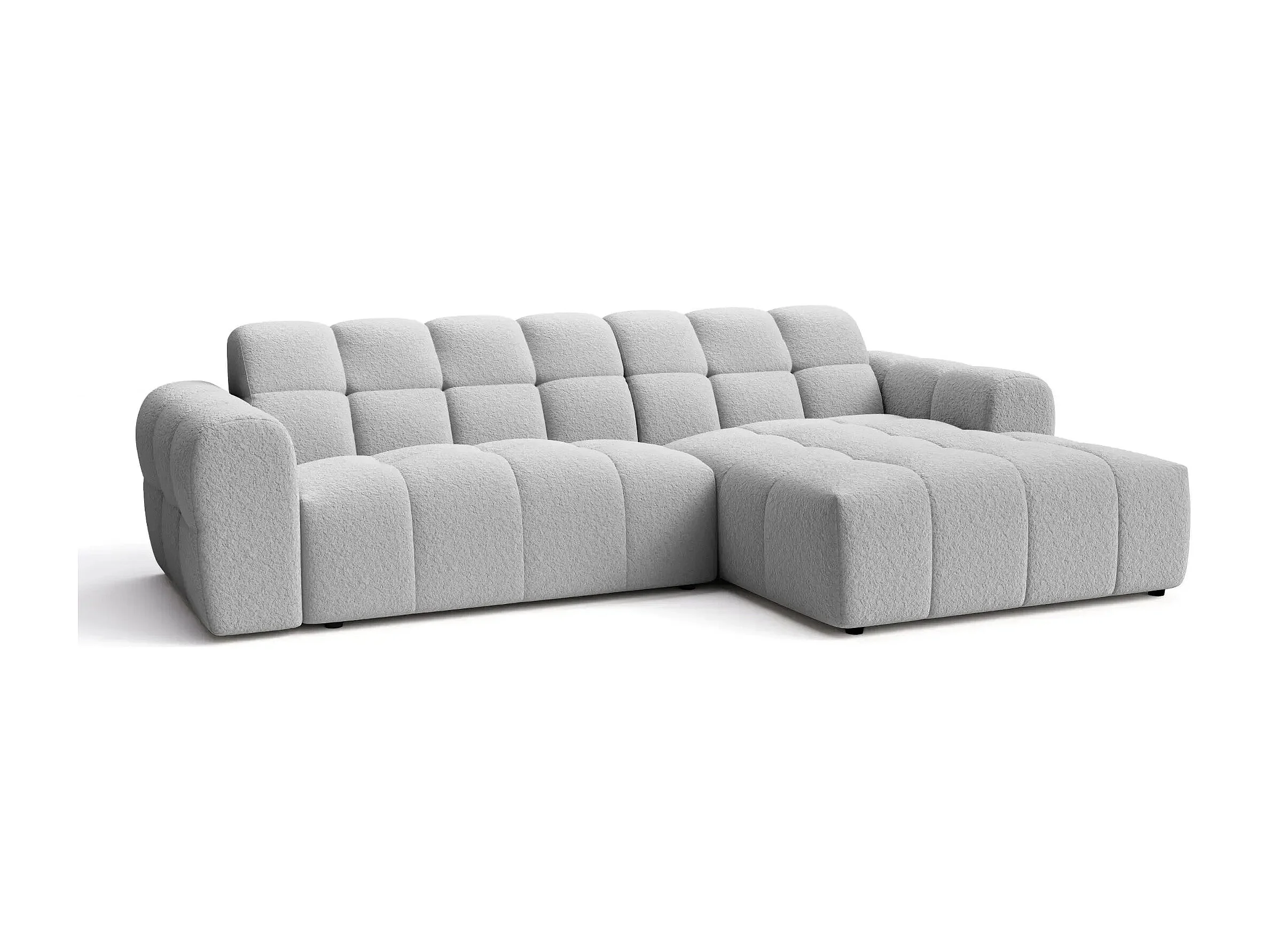 ALEXIA - Canapé d'angle tissu bouclette 4 places - Gris clair - Droit