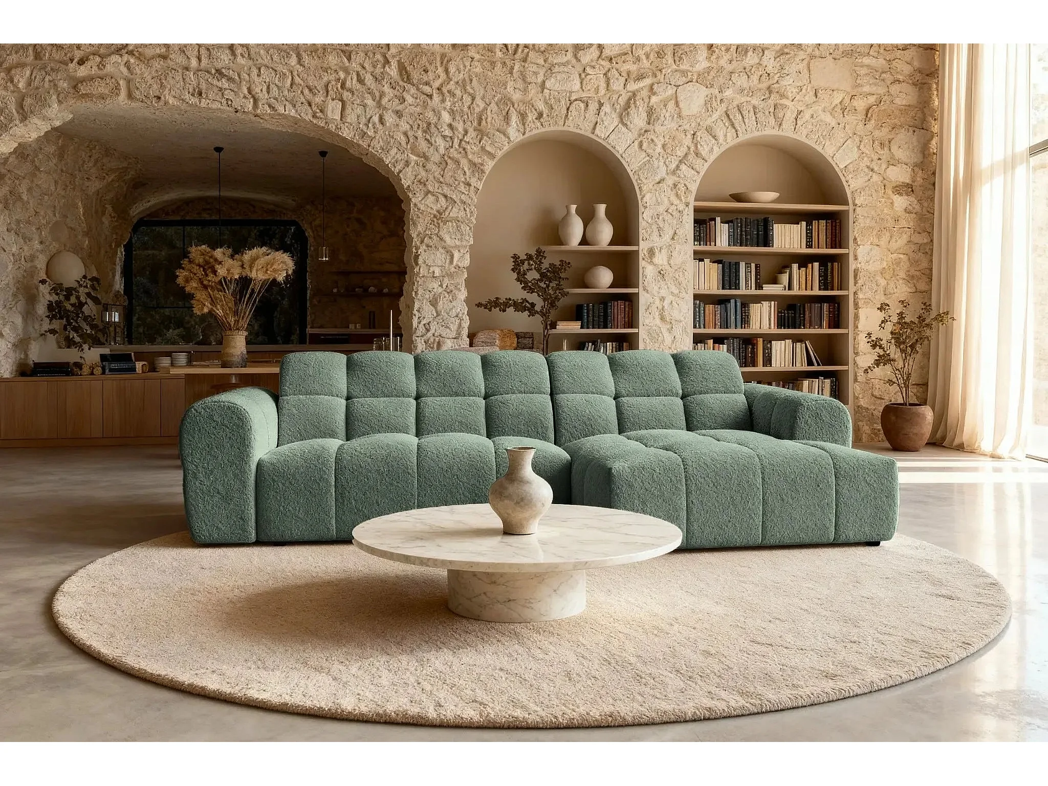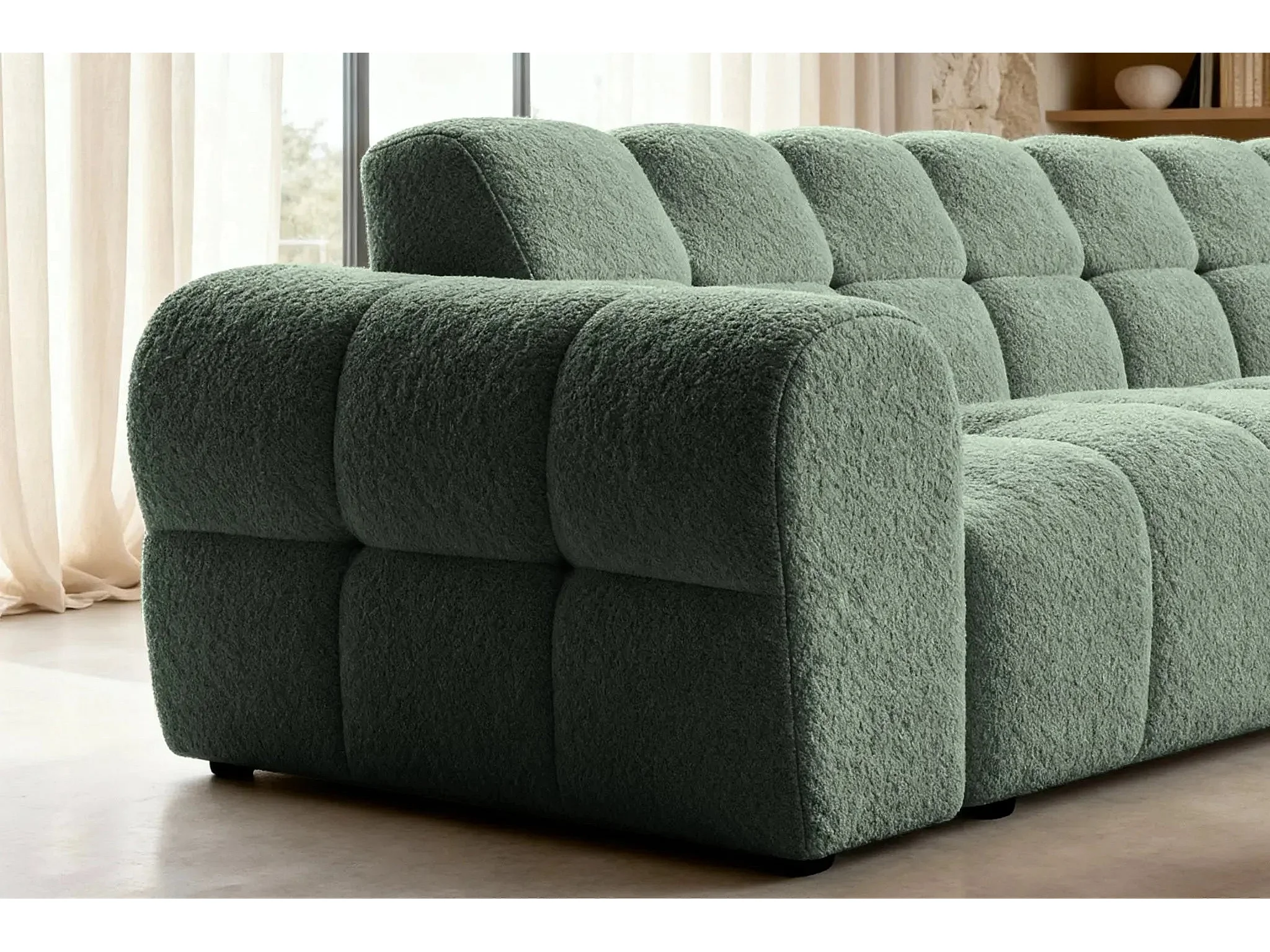ALEXIA - Canapé d'angle tissu bouclette 4 places - Vert - Droit