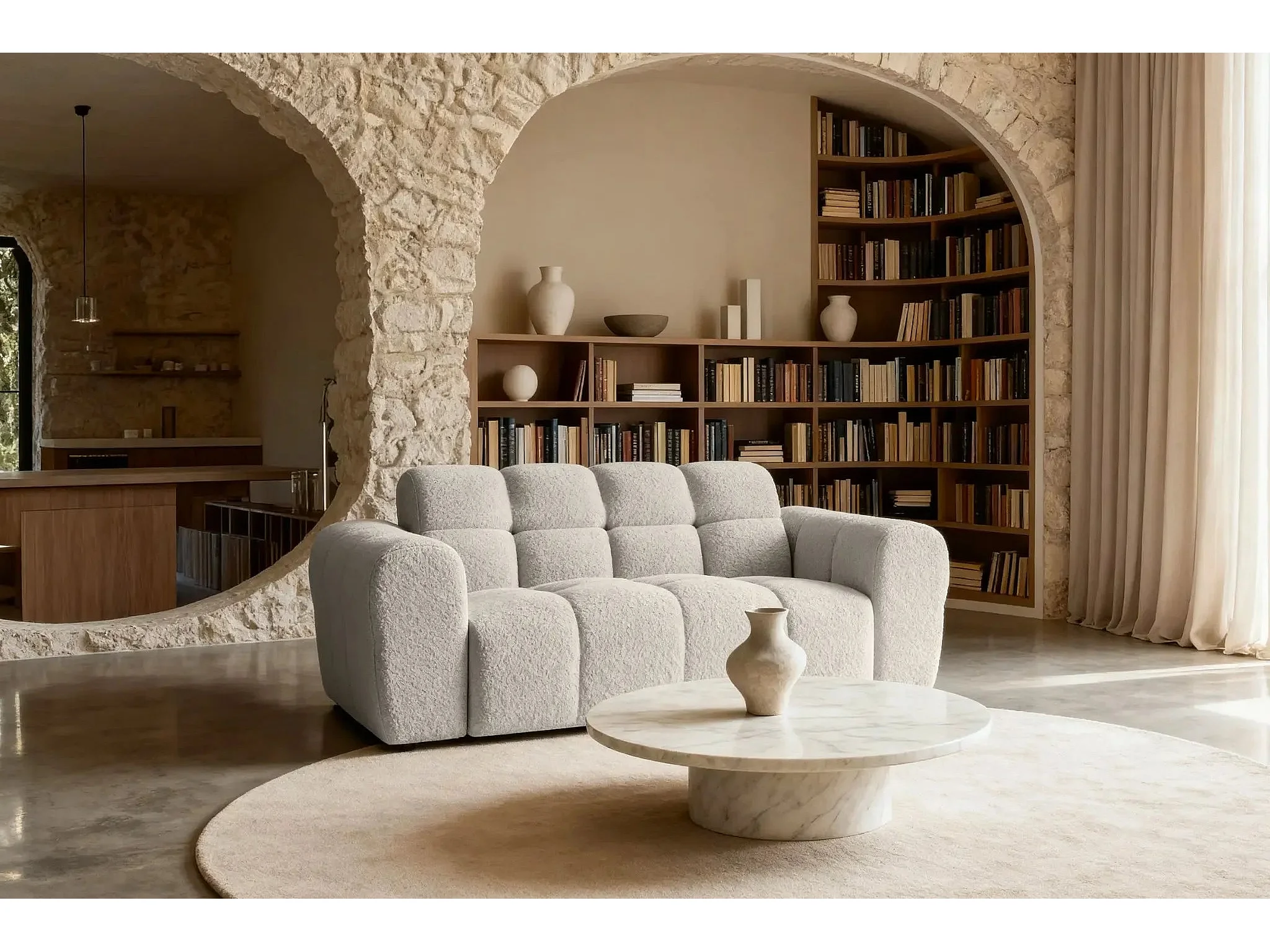 ALEXIA - Canapé droit tissu bouclette 2 places - Beige