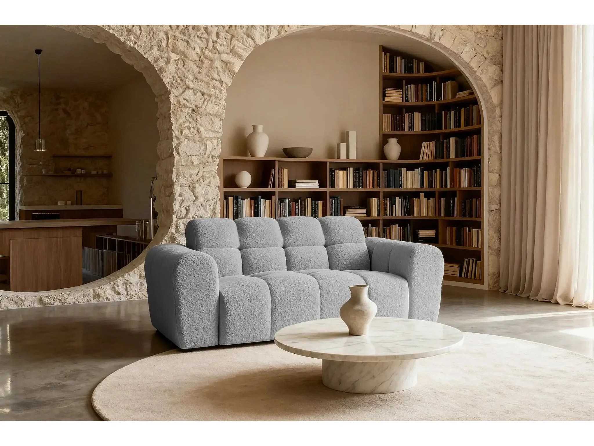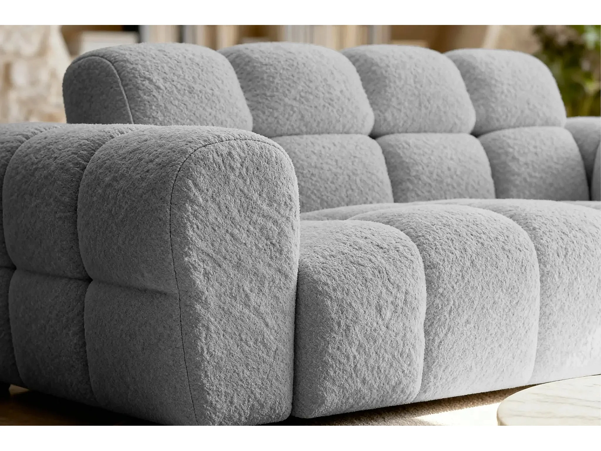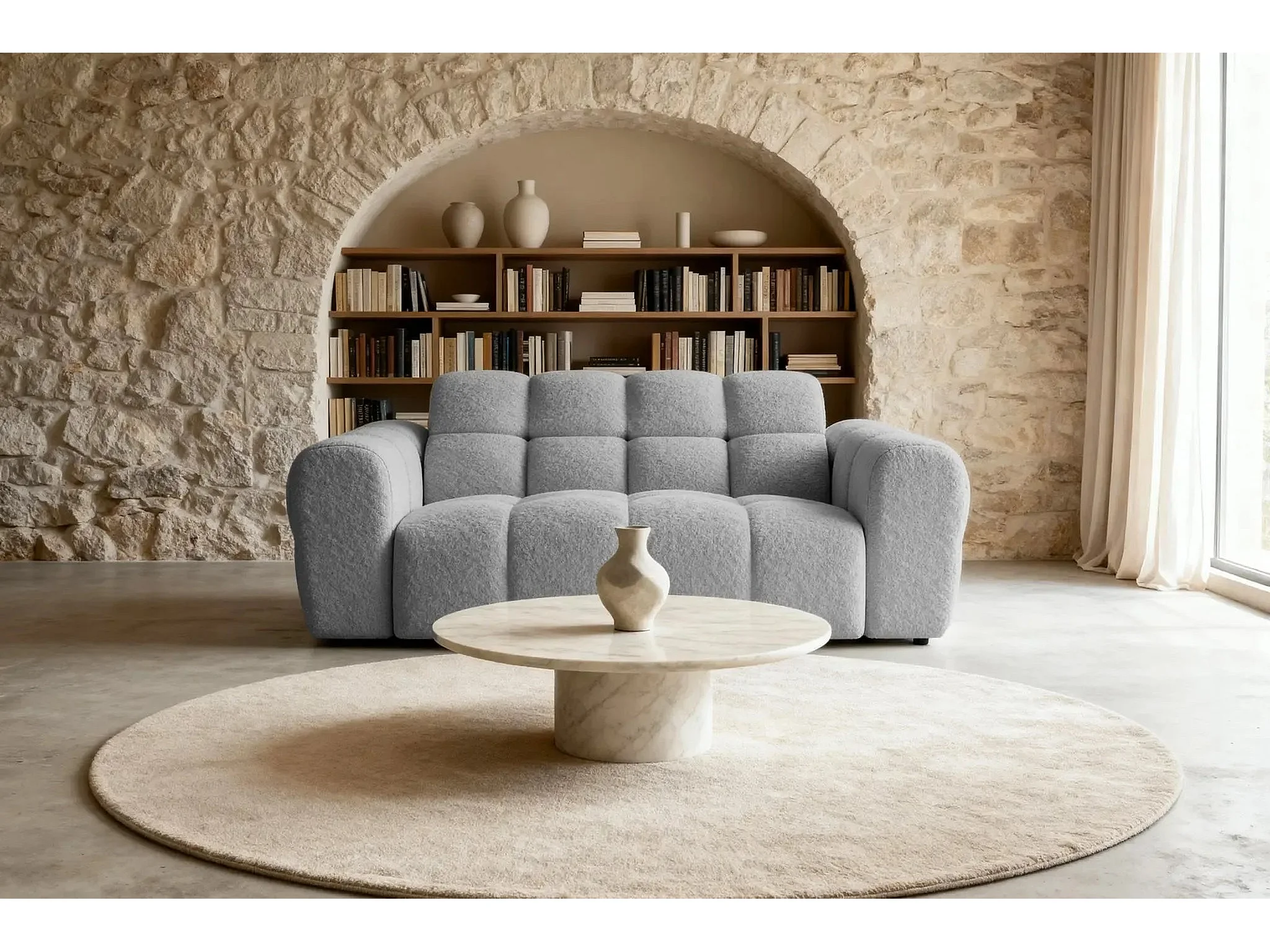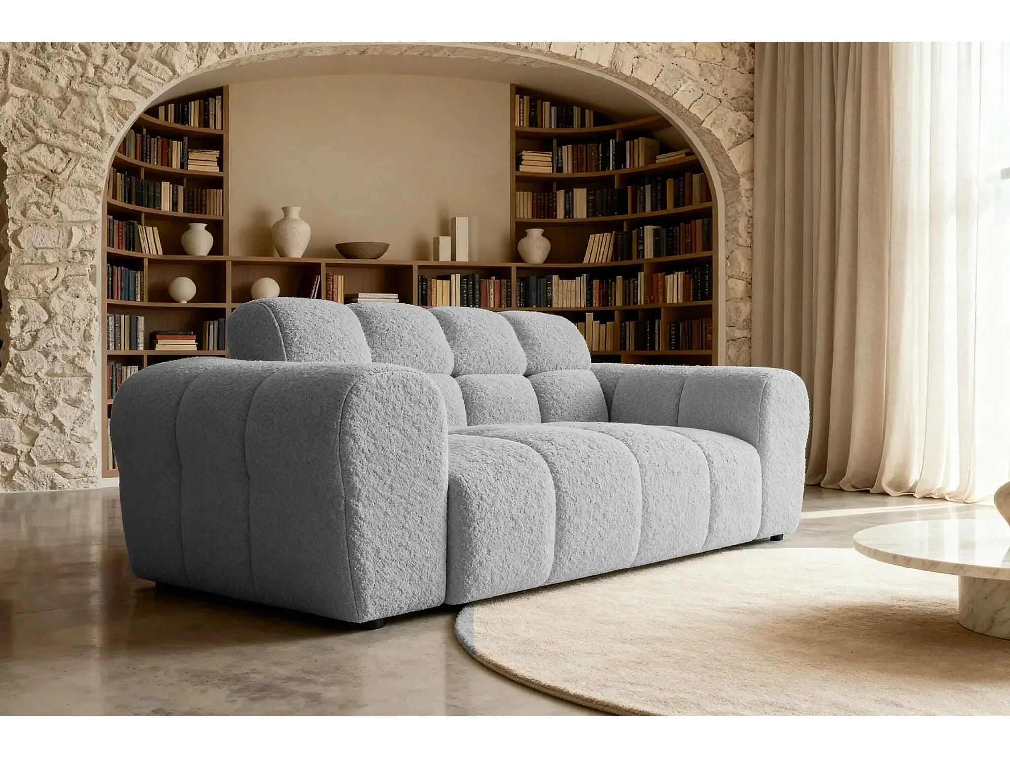 ALEXIA - Canapé droit tissu bouclette 2 places - Gris clair