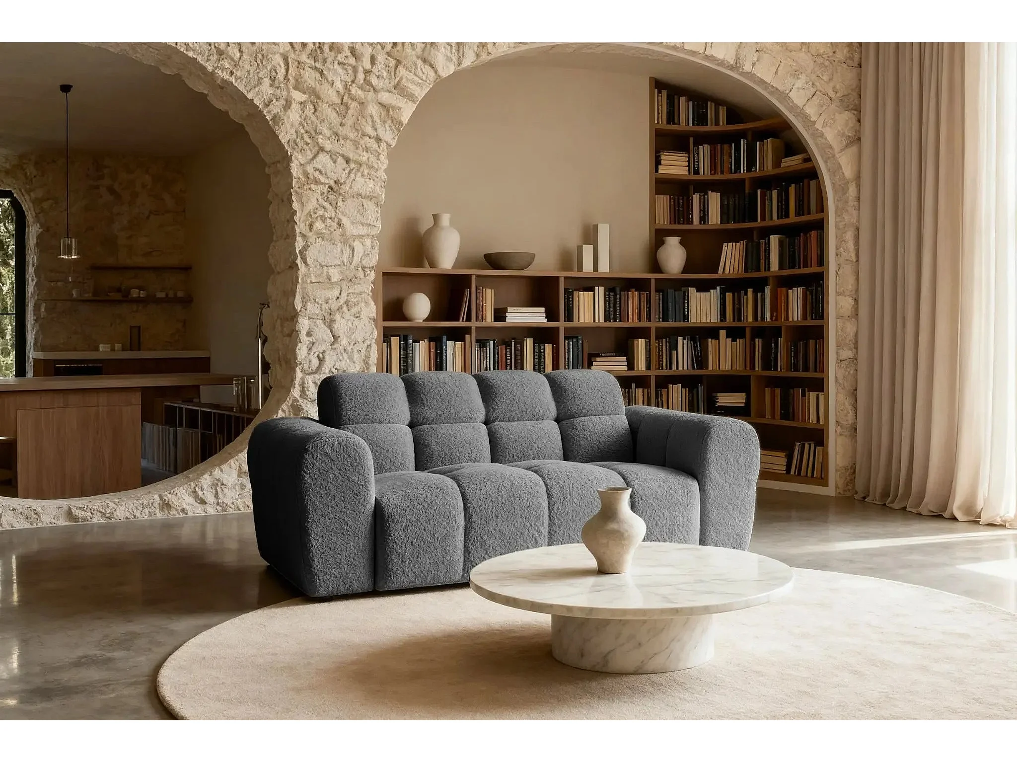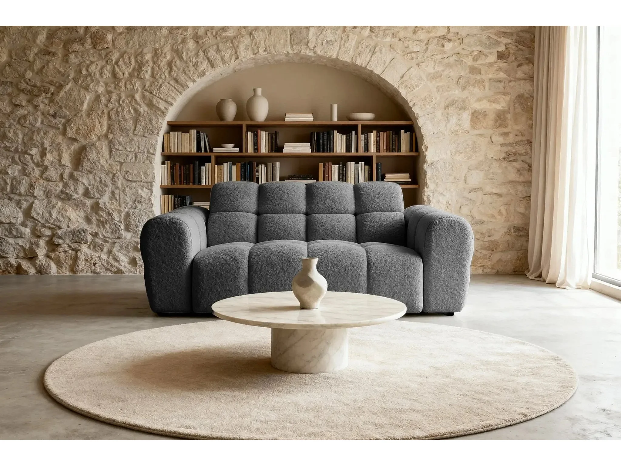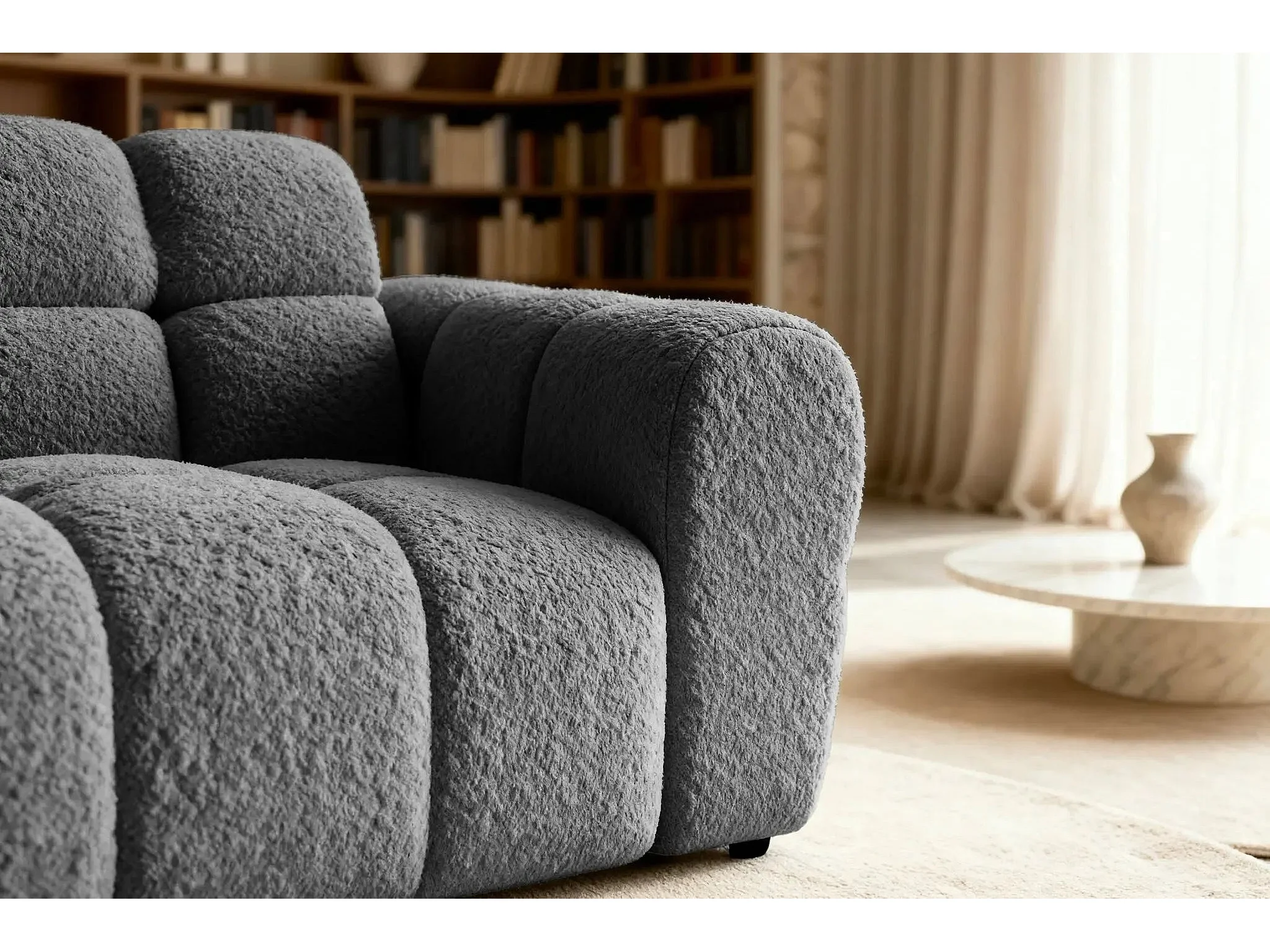 ALEXIA - Canapé droit tissu bouclette 2 places - Gris foncé