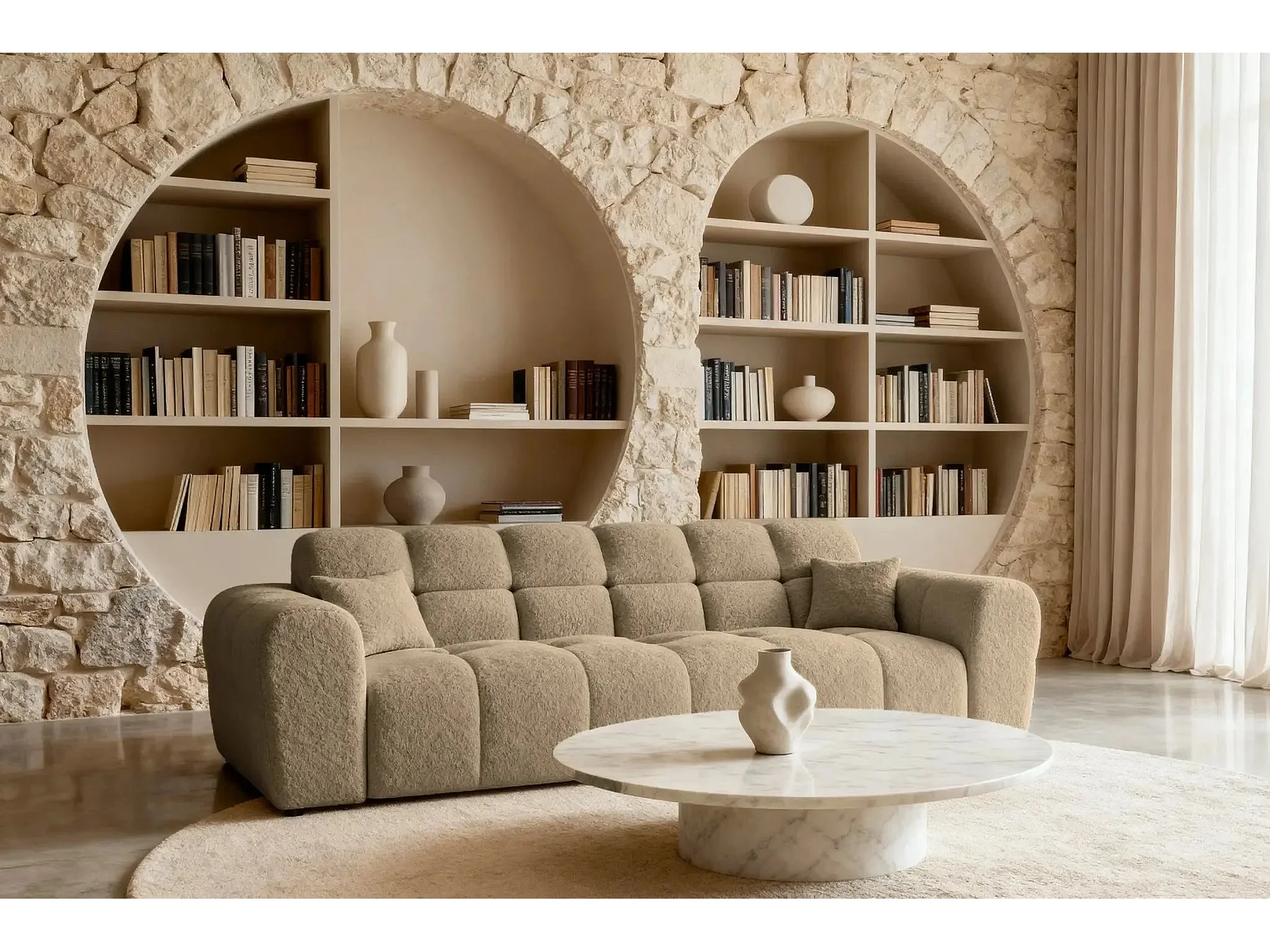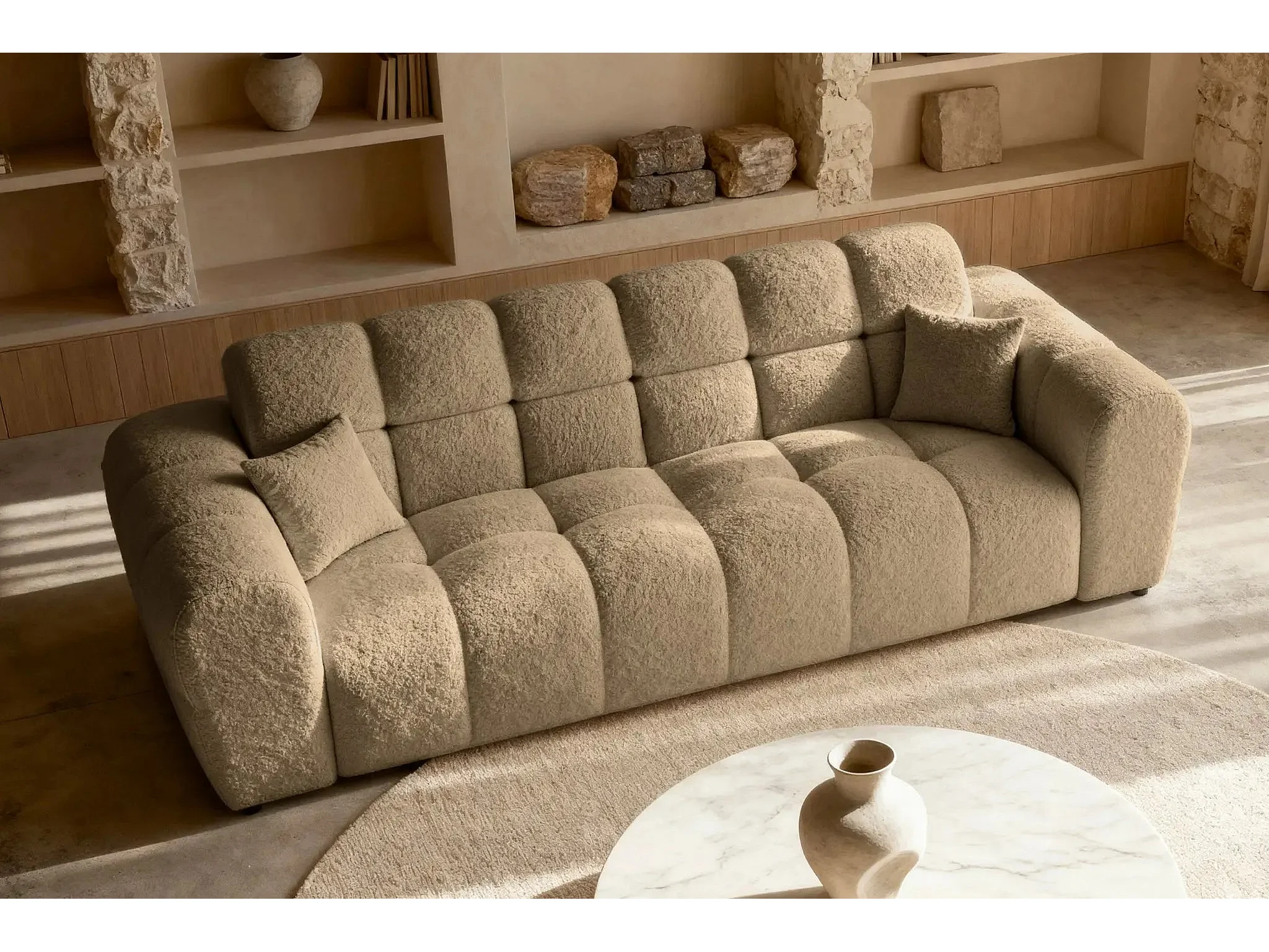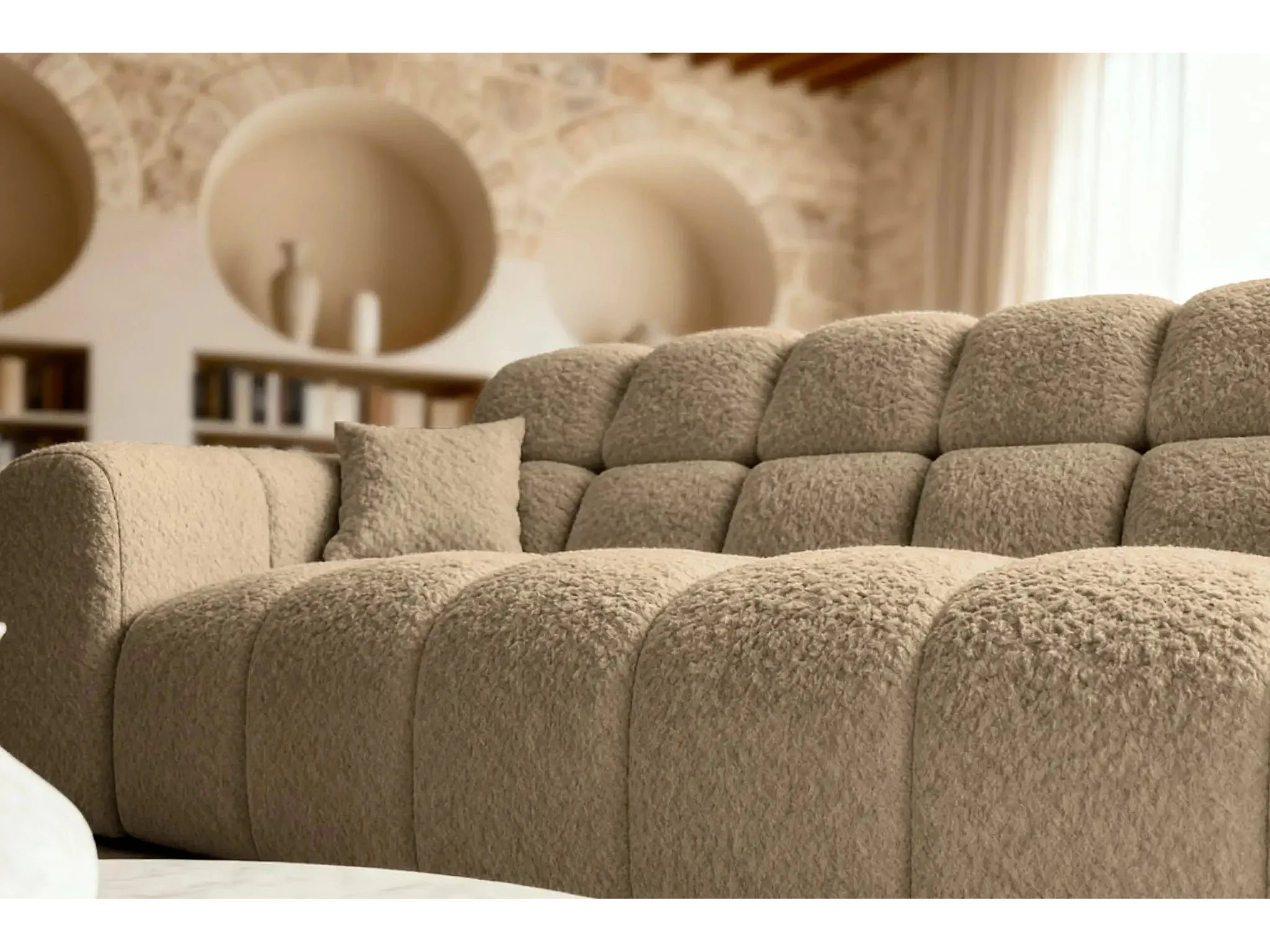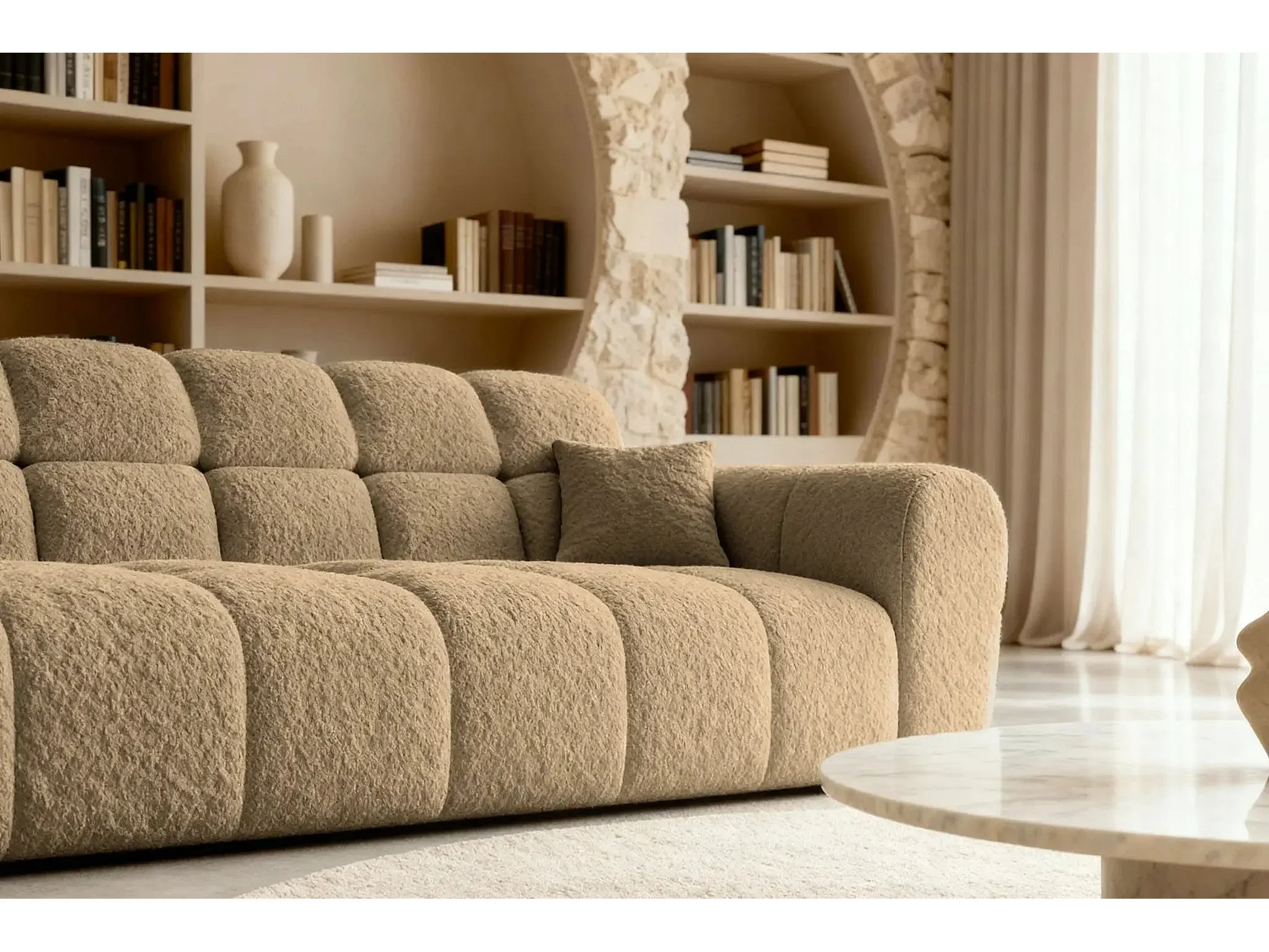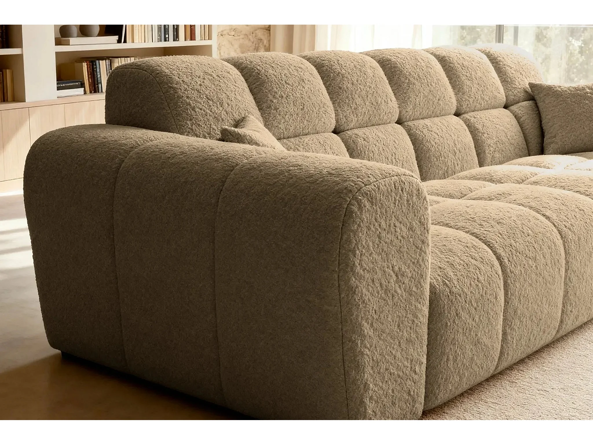 ALEXIA - Canapé droit tissu bouclette 3 places - Café