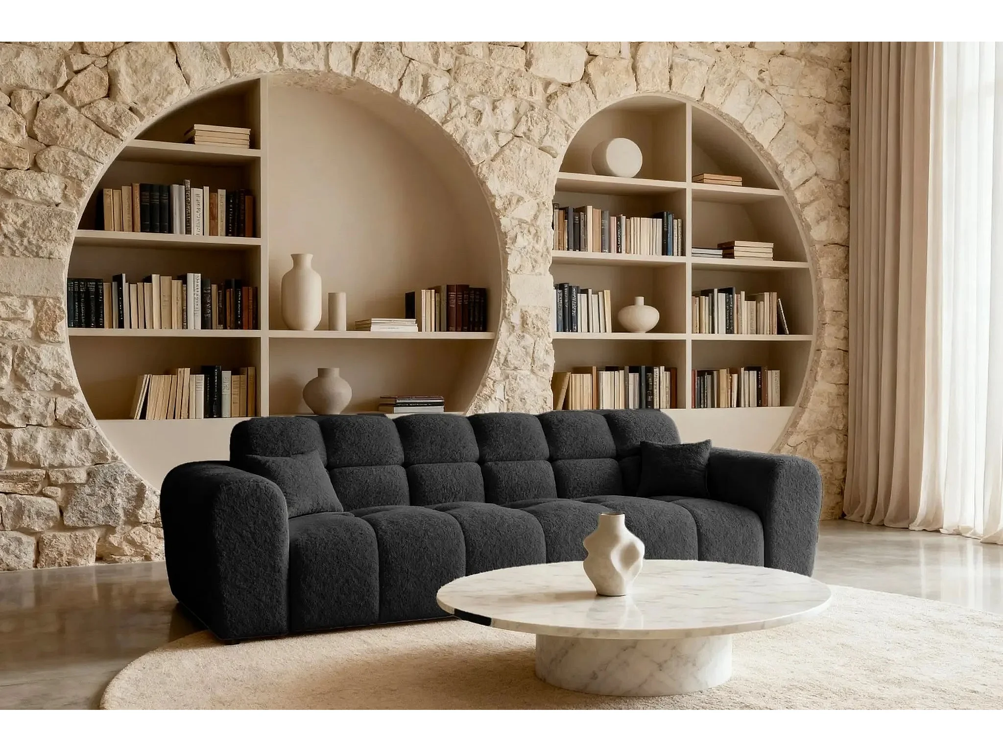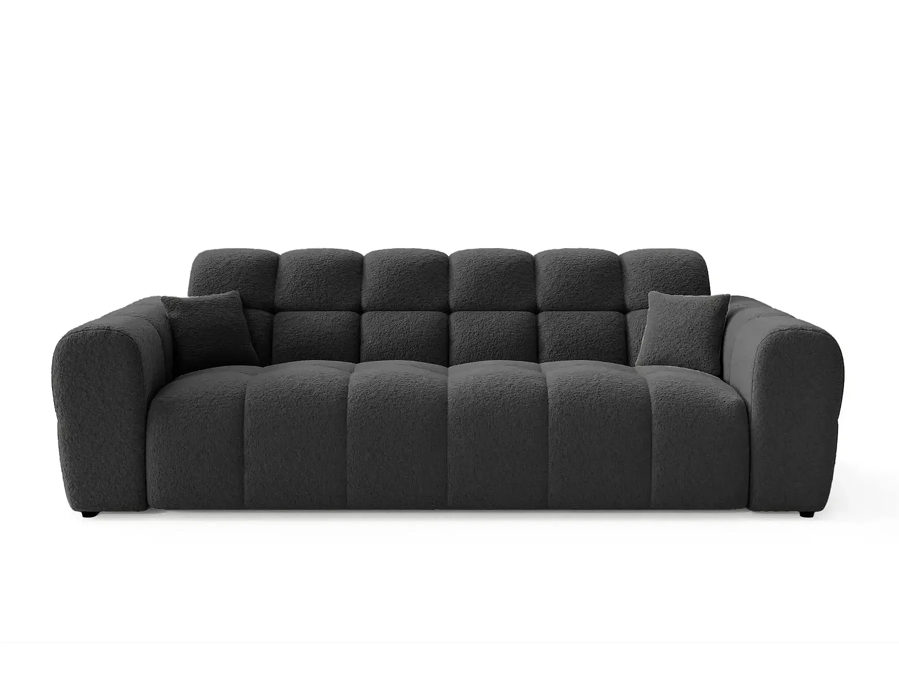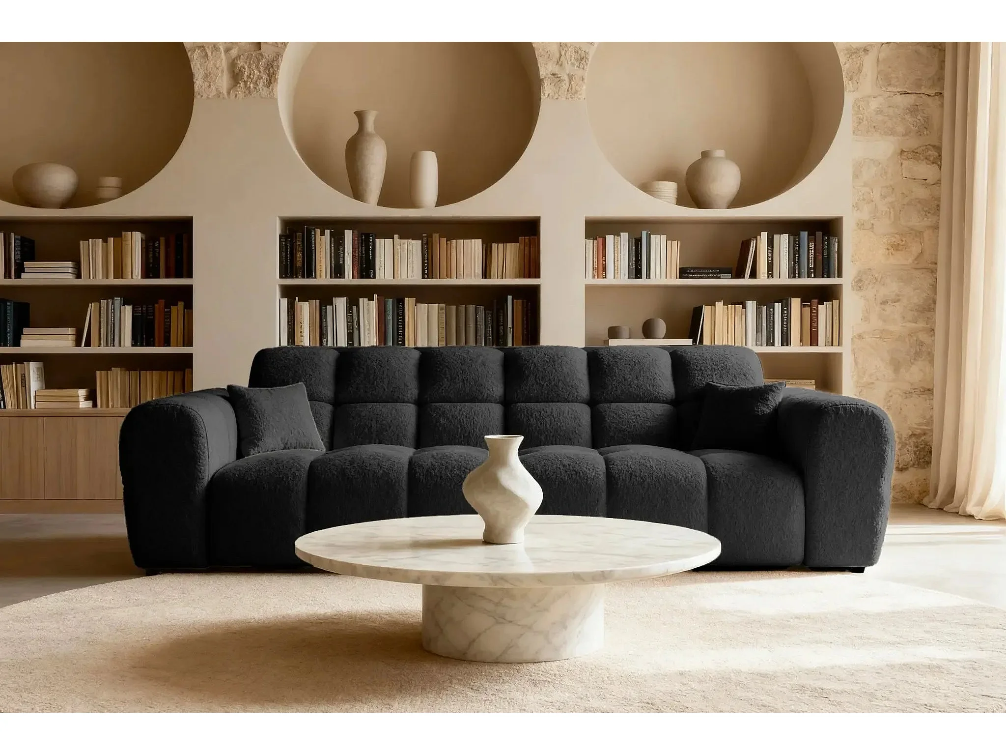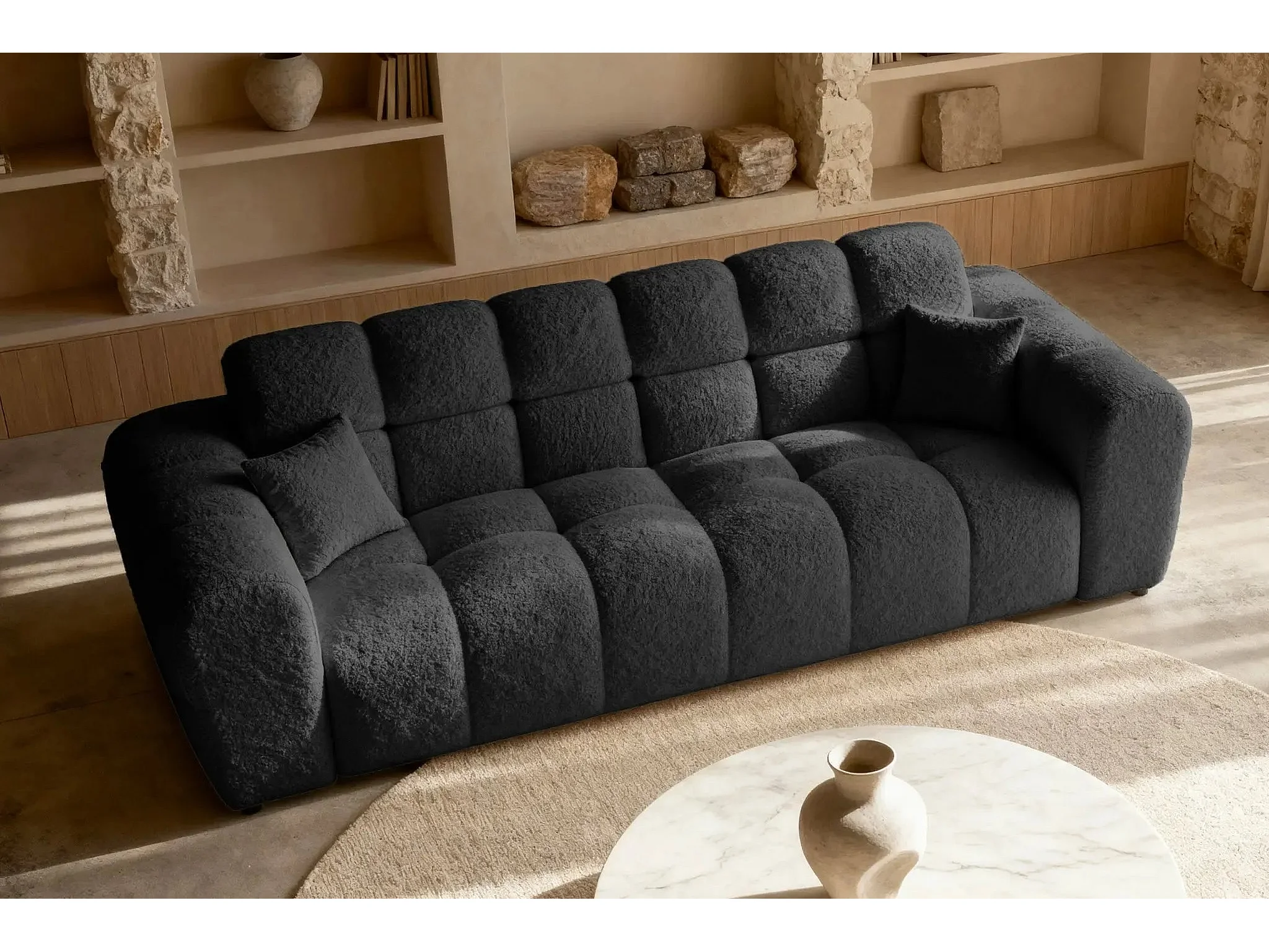 ALEXIA - Canapé droit tissu bouclette 3 places - Noir
