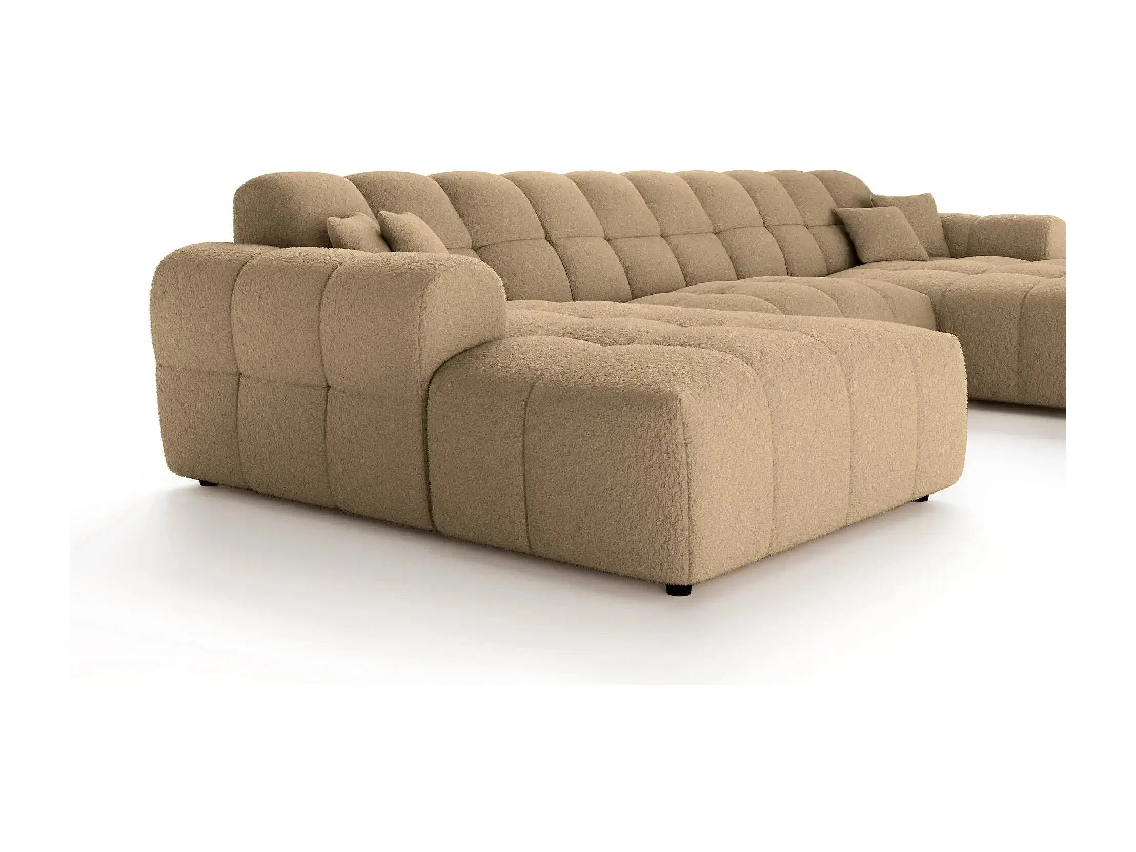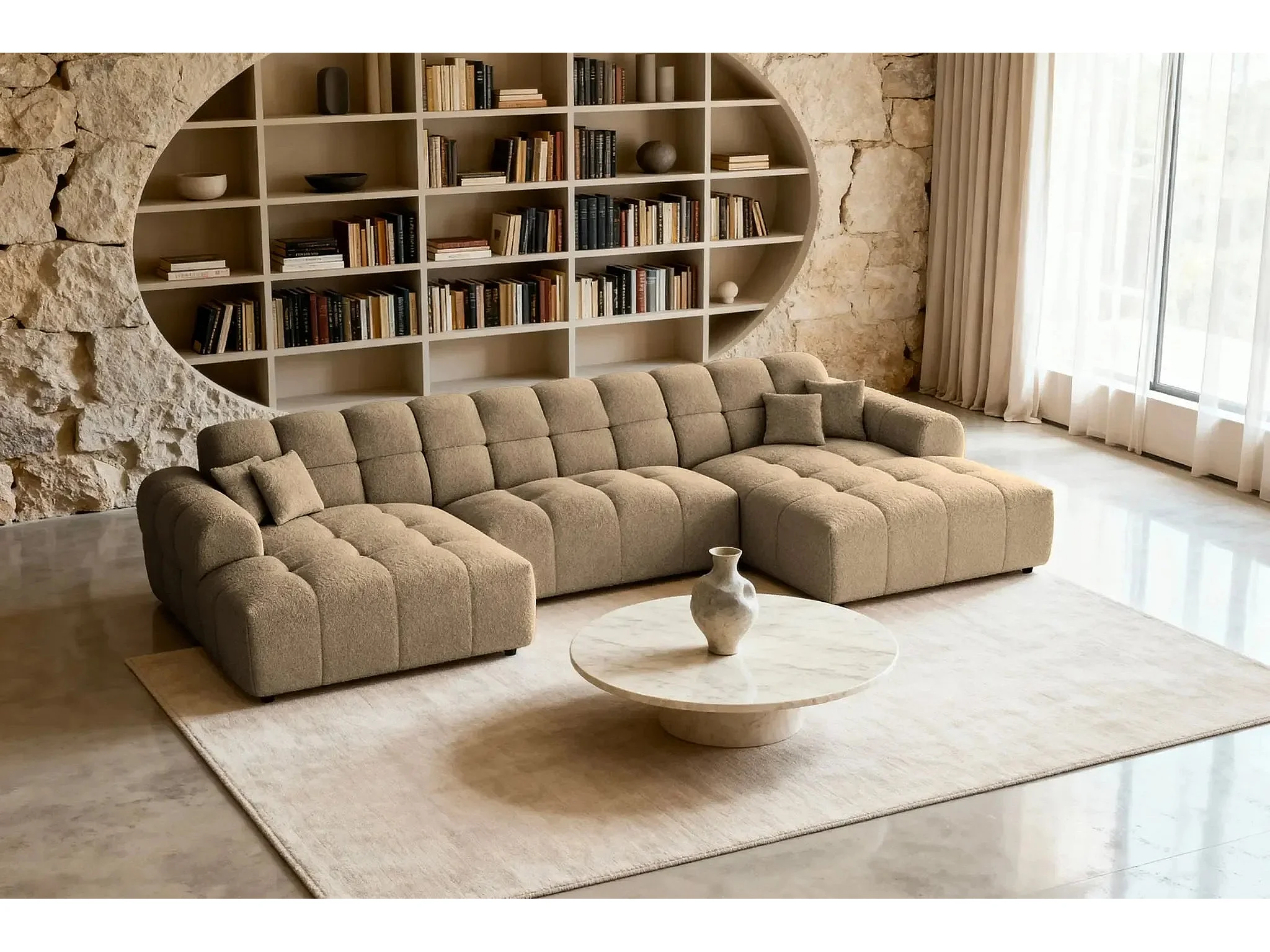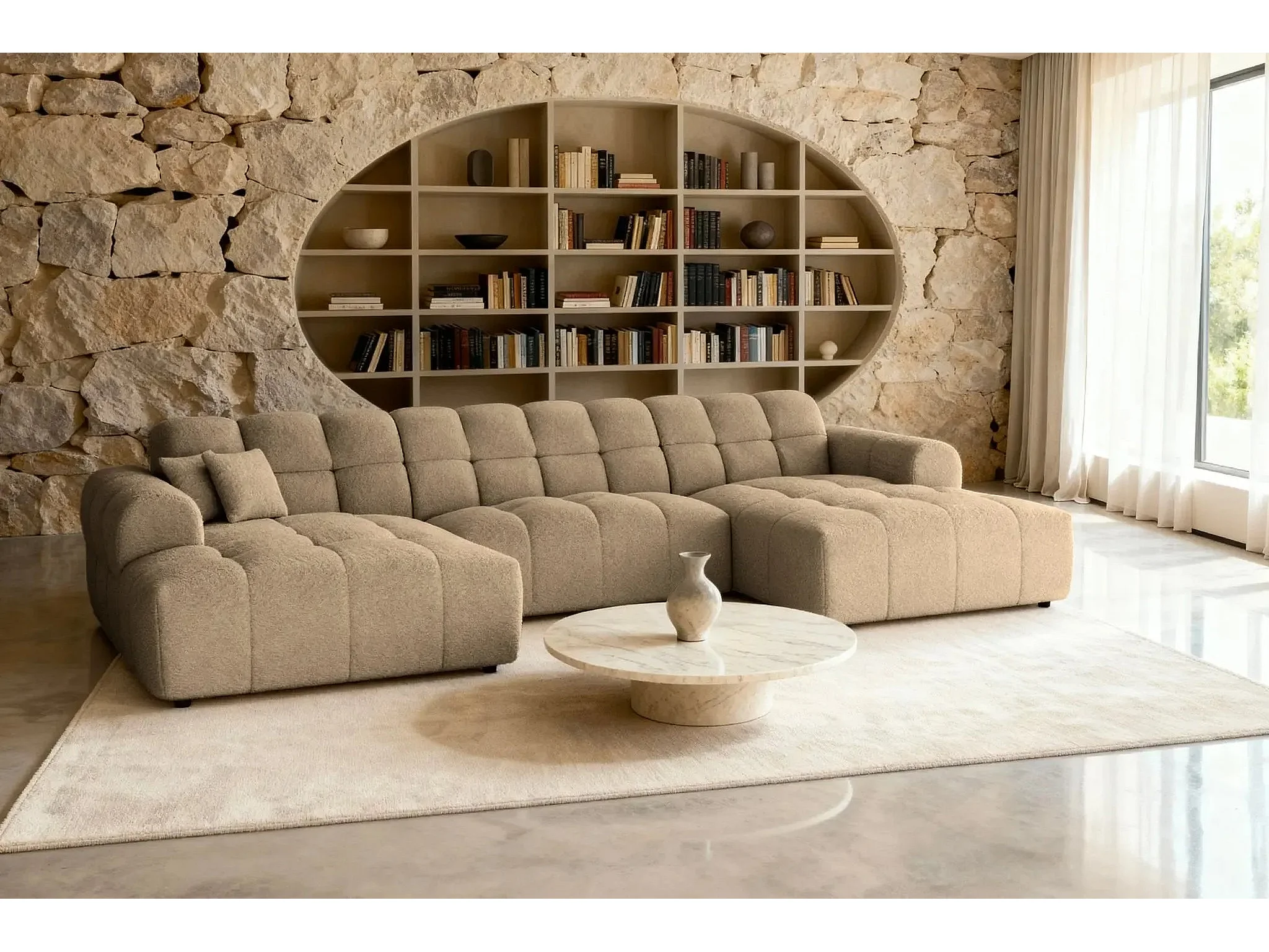 ALEXIA - Canapé panoramique tissu bouclette 5 places - Café