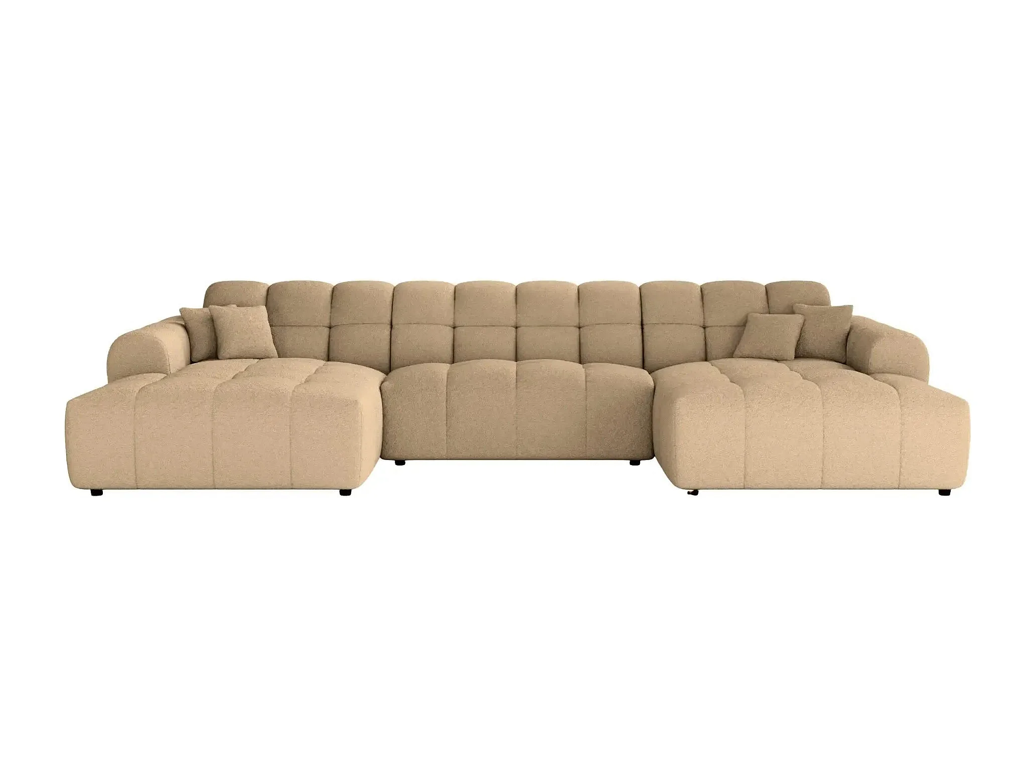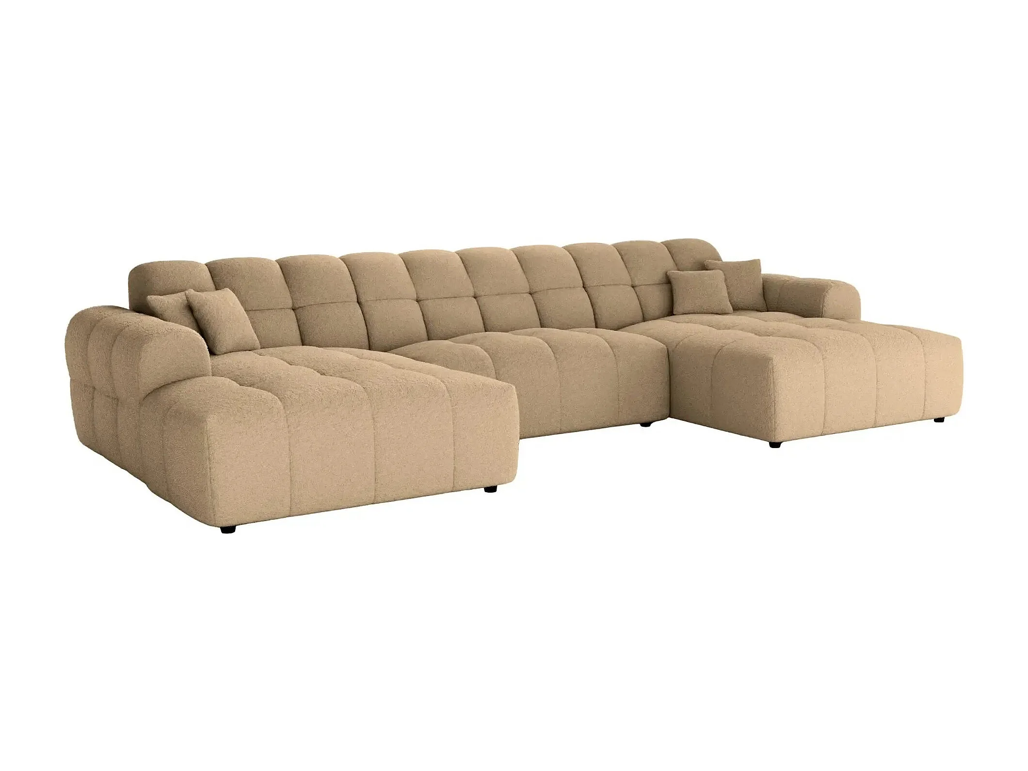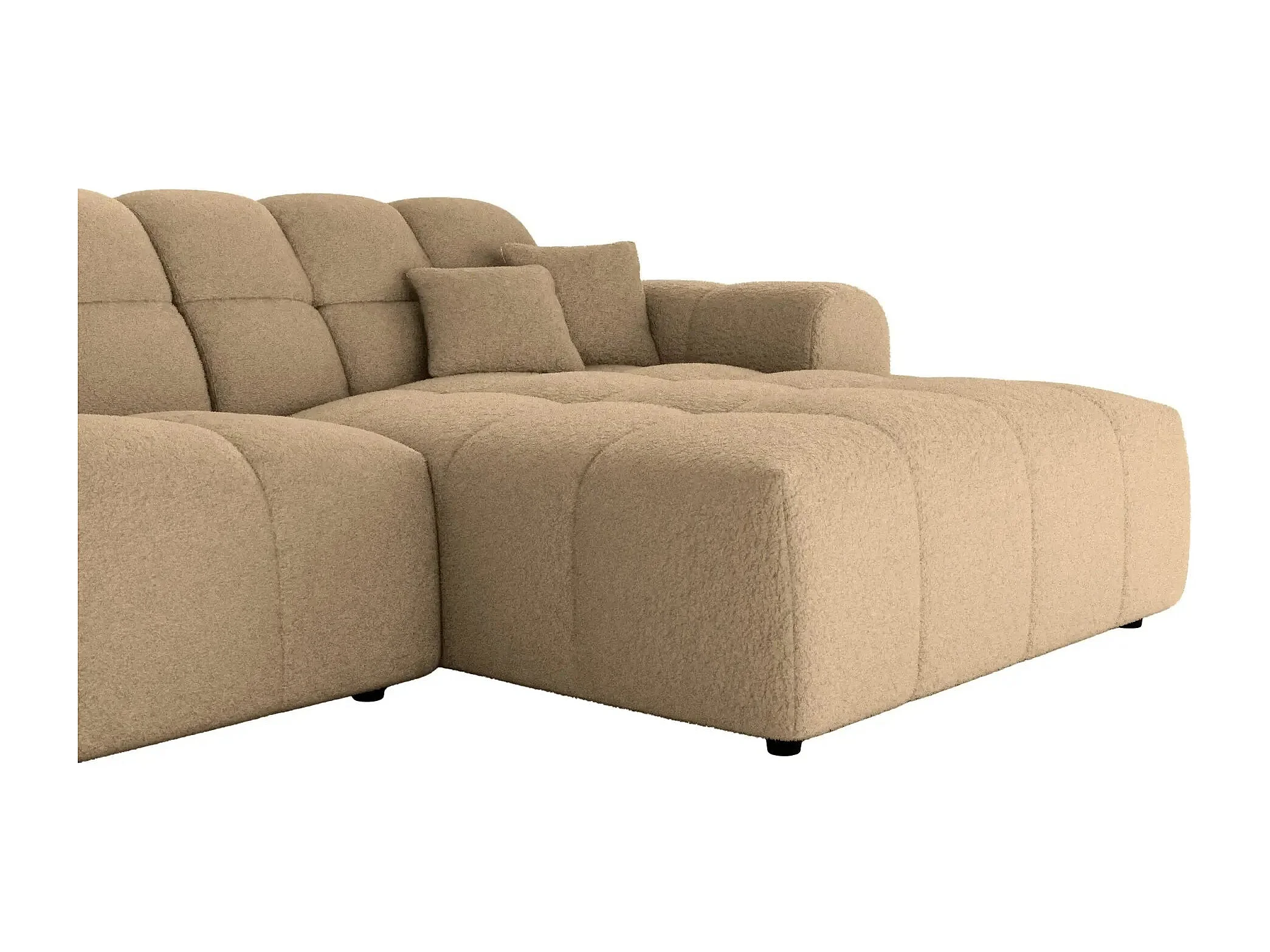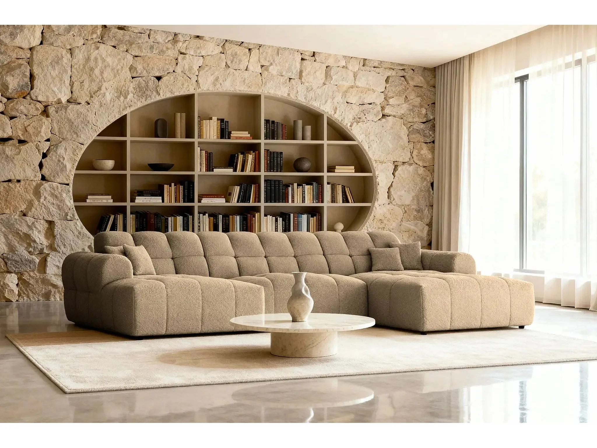 ALEXIA - Canapé panoramique tissu bouclette 5 places - Café
