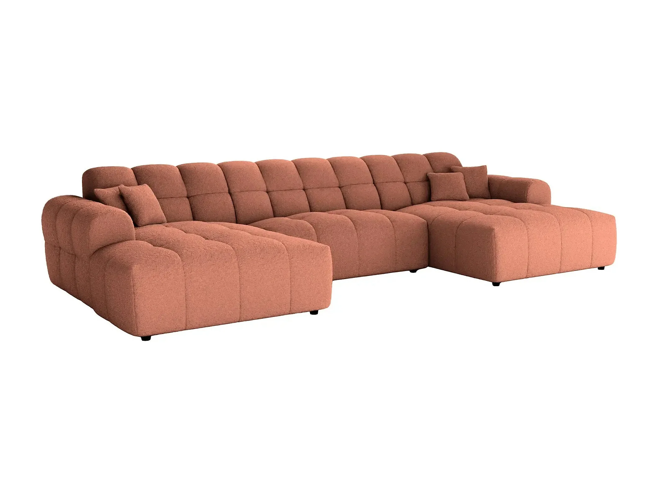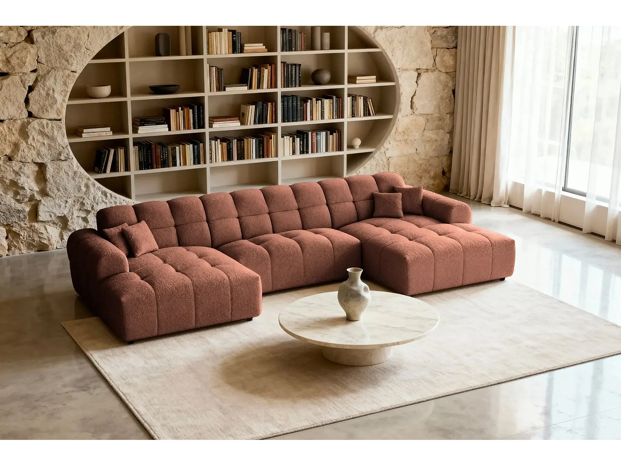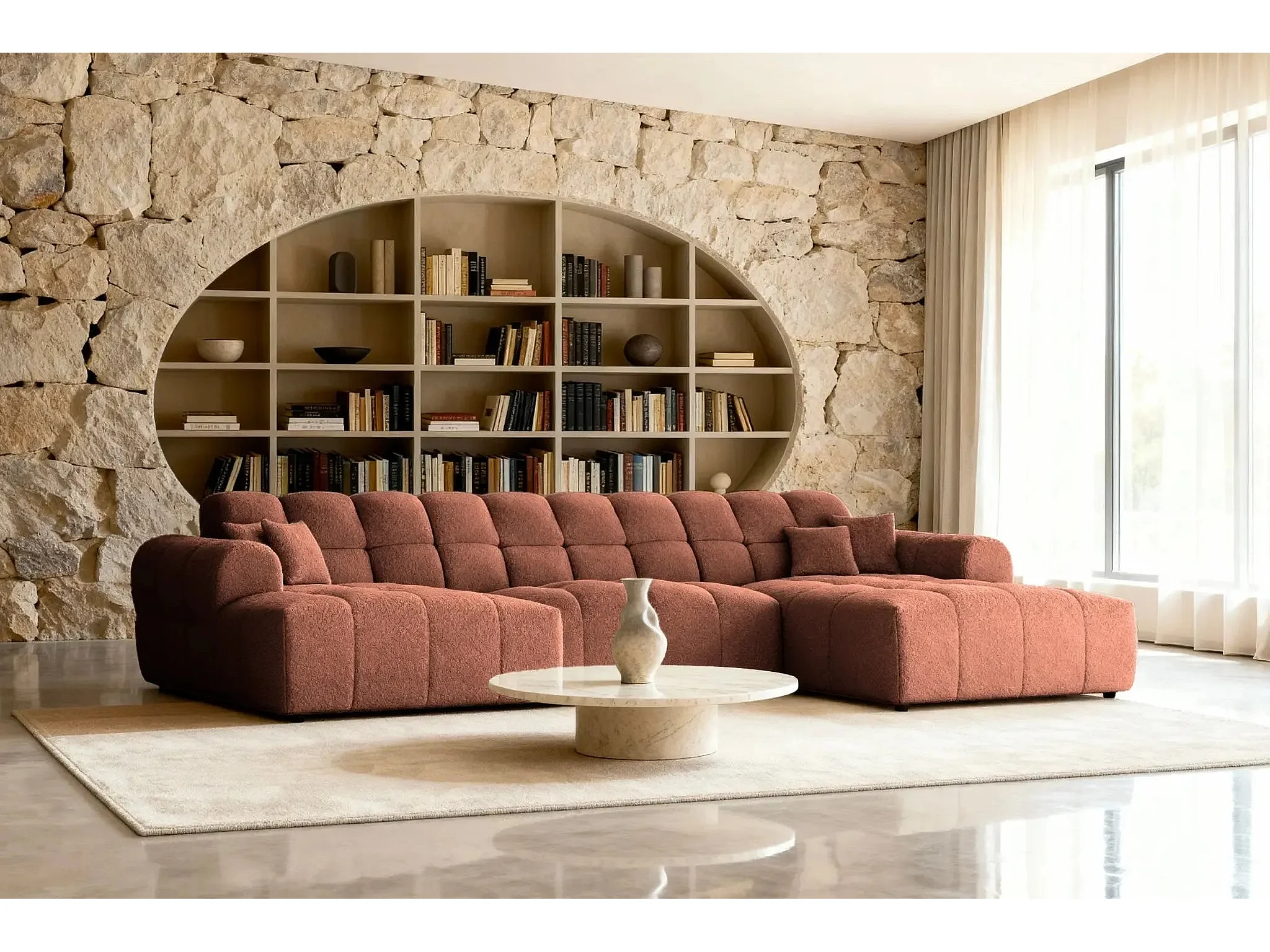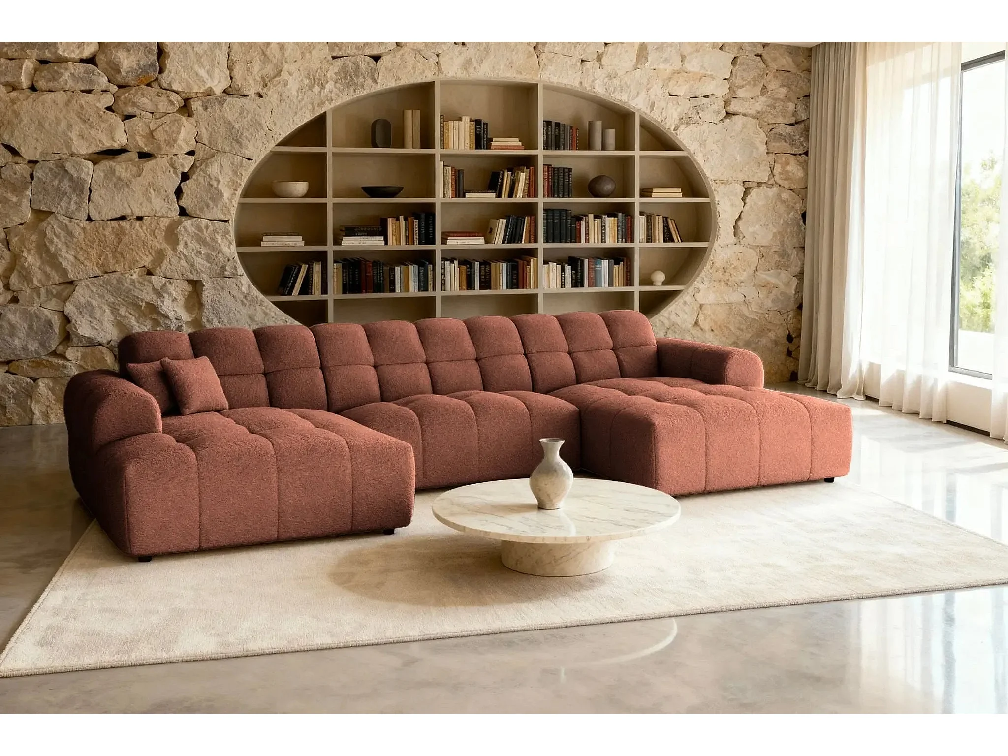 ALEXIA - Canapé panoramique tissu bouclette 5 places - Terracotta
