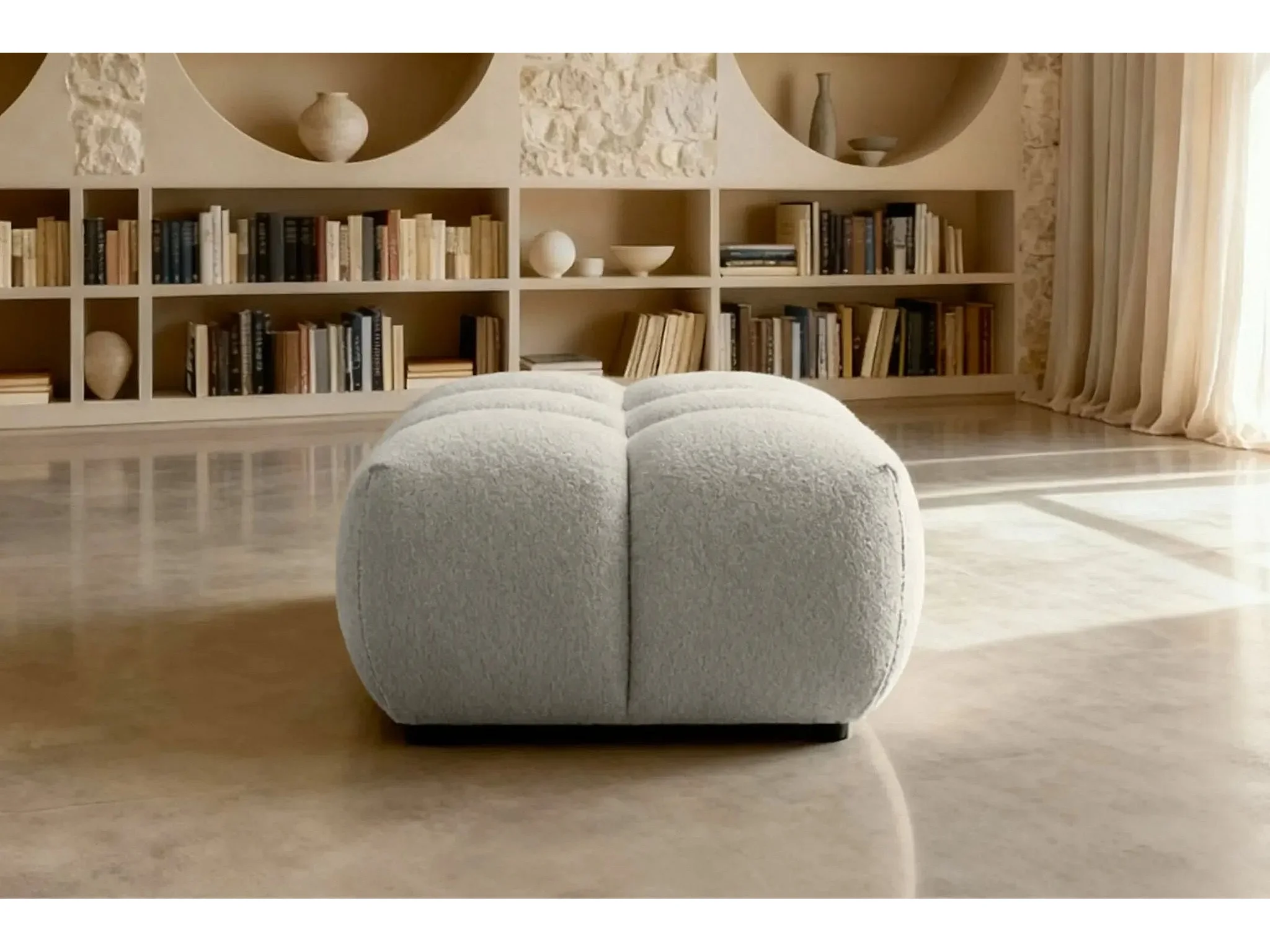 ALEXIA - Pouf en tissu bouclette Beige 120x60x40
