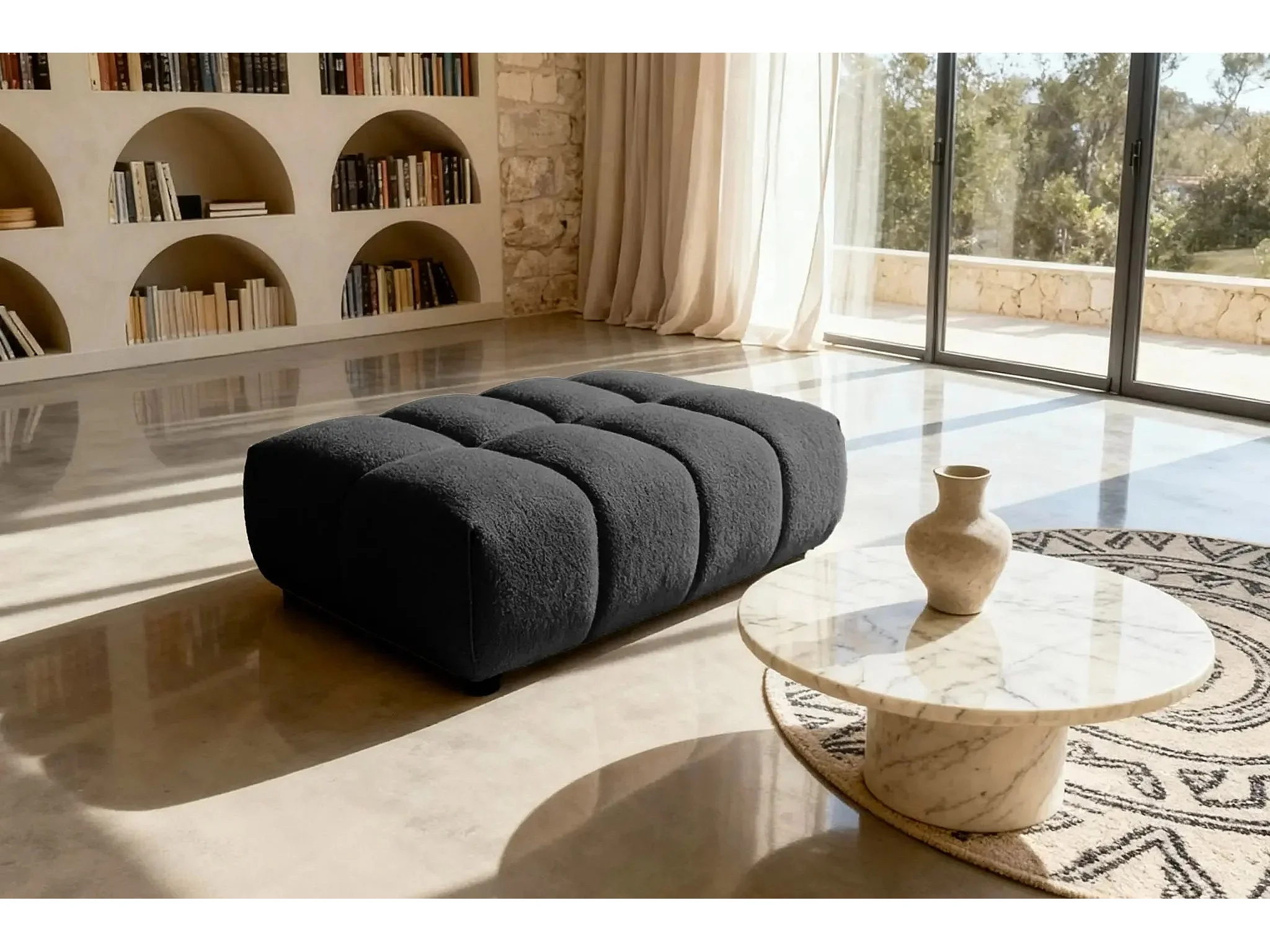 ALEXIA - Pouf en tissu bouclette Noir 120x60x40