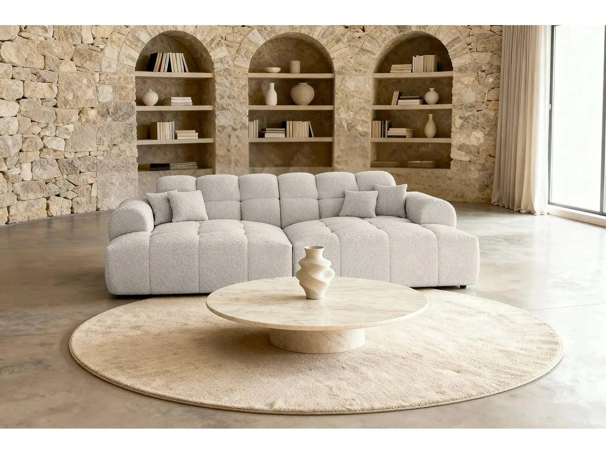 ALEXIA XL - Canapé droit tissu bouclette 4 places - Beige