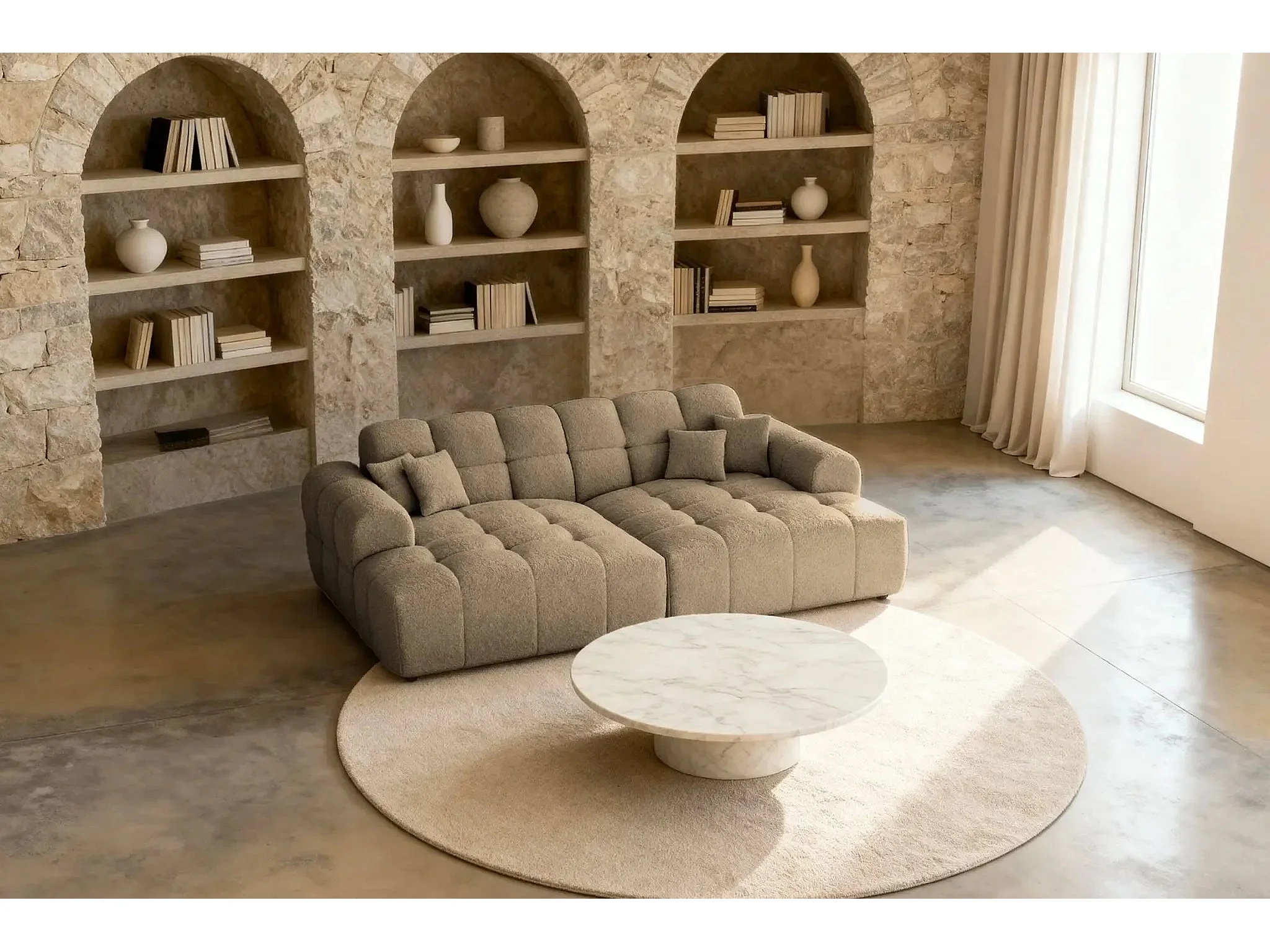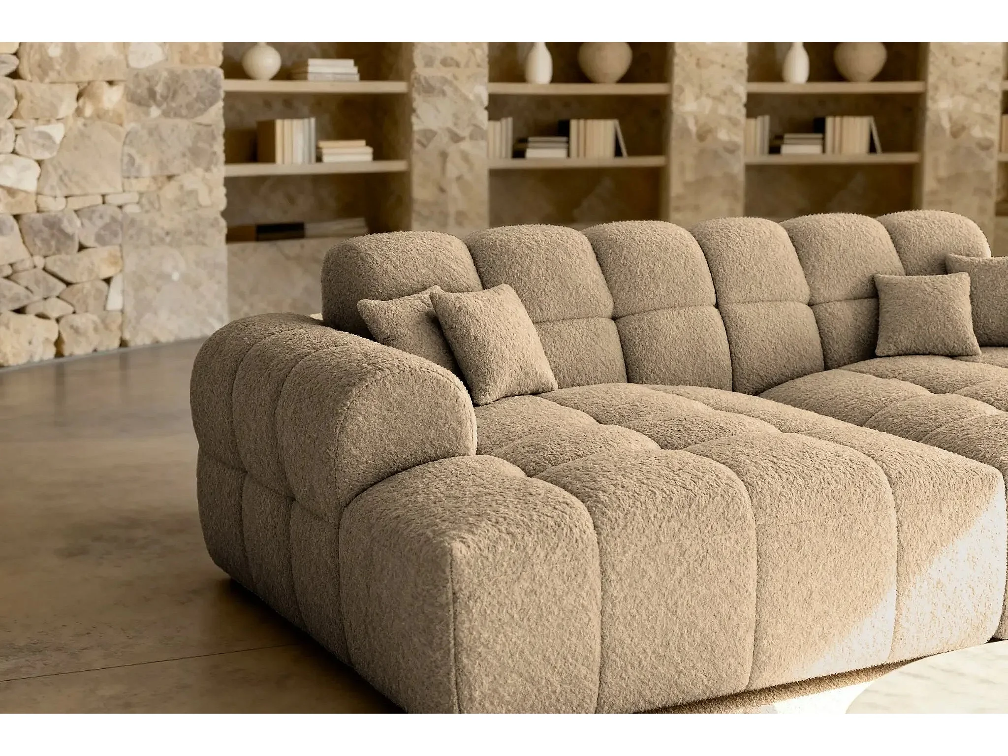 ALEXIA XL - Canapé droit tissu bouclette 4 places - Café