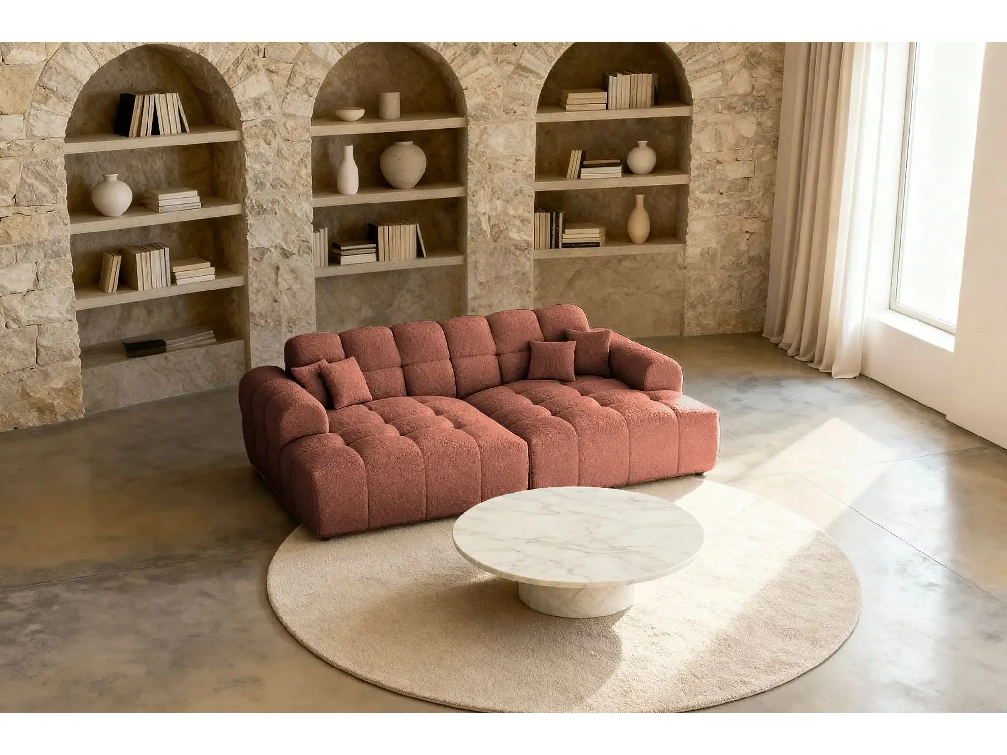ALEXIA XL - Canapé droit tissu bouclette 4 places - Terracotta