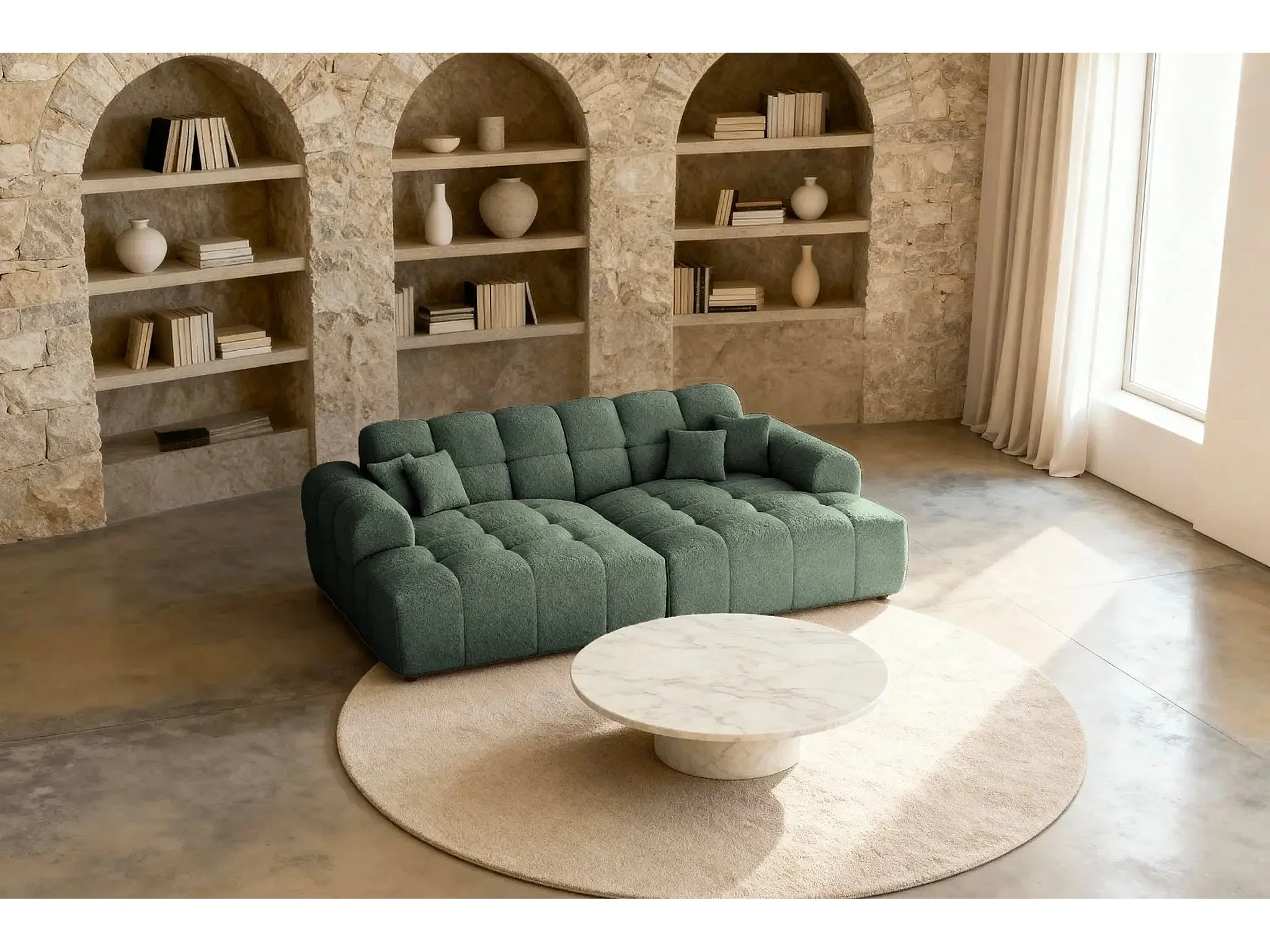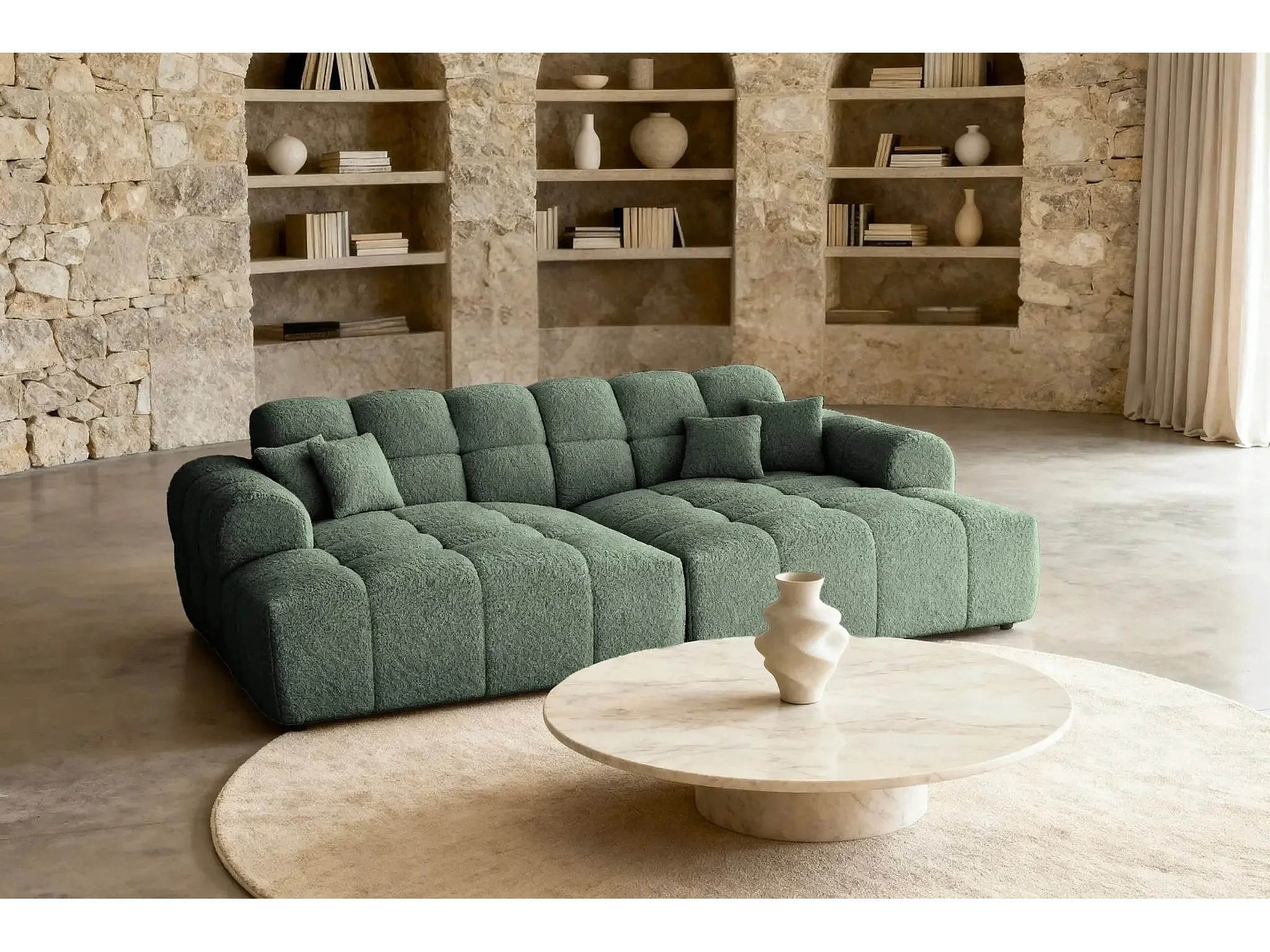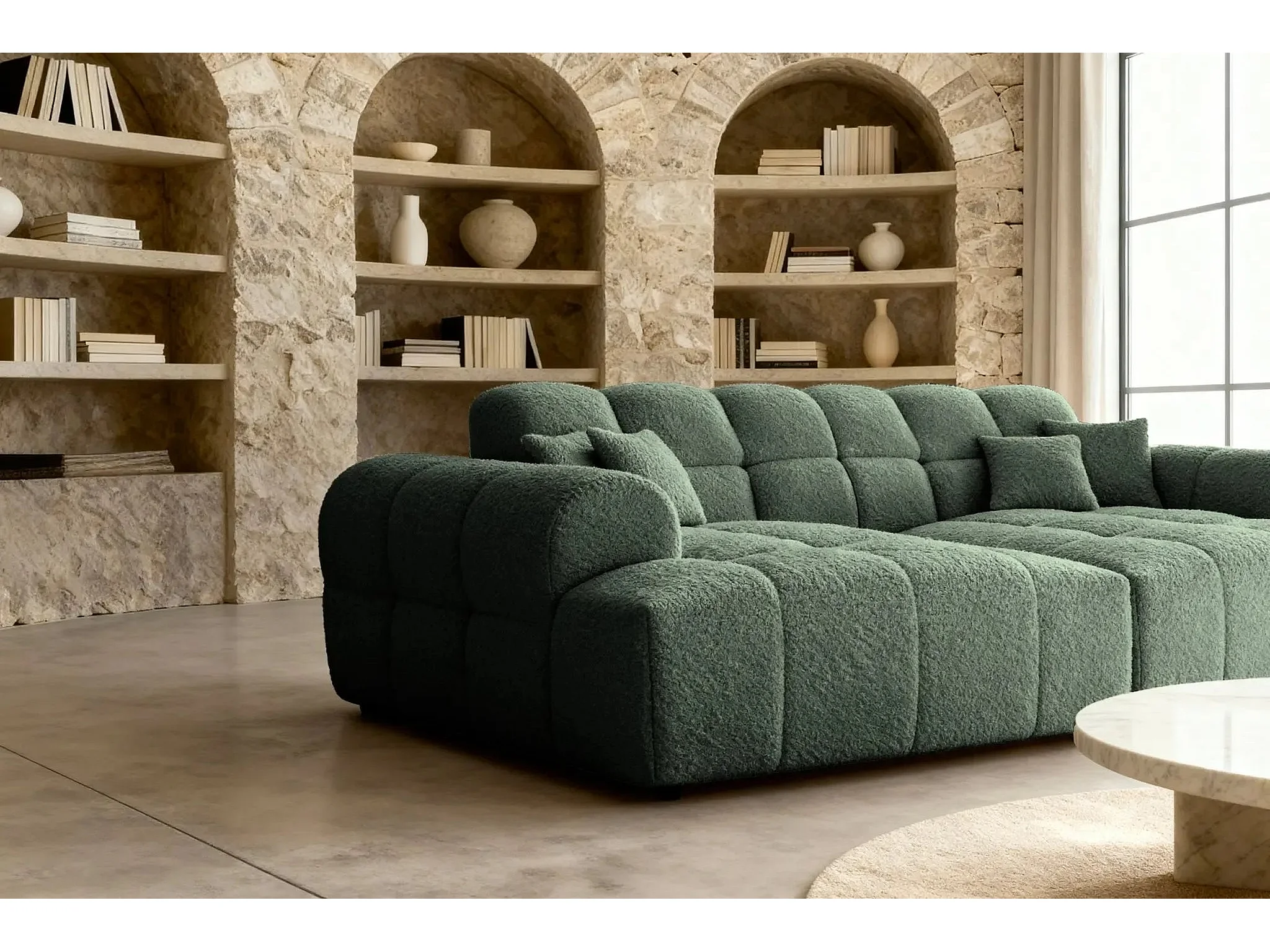 ALEXIA XL - Canapé droit tissu bouclette 4 places - Vert