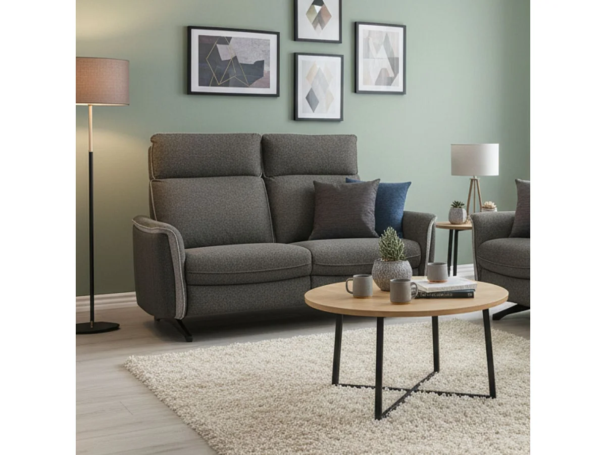 ALICANTE - Canapé Fixe 2 Places Tissu Gris Foncé Chiné 2 Tons