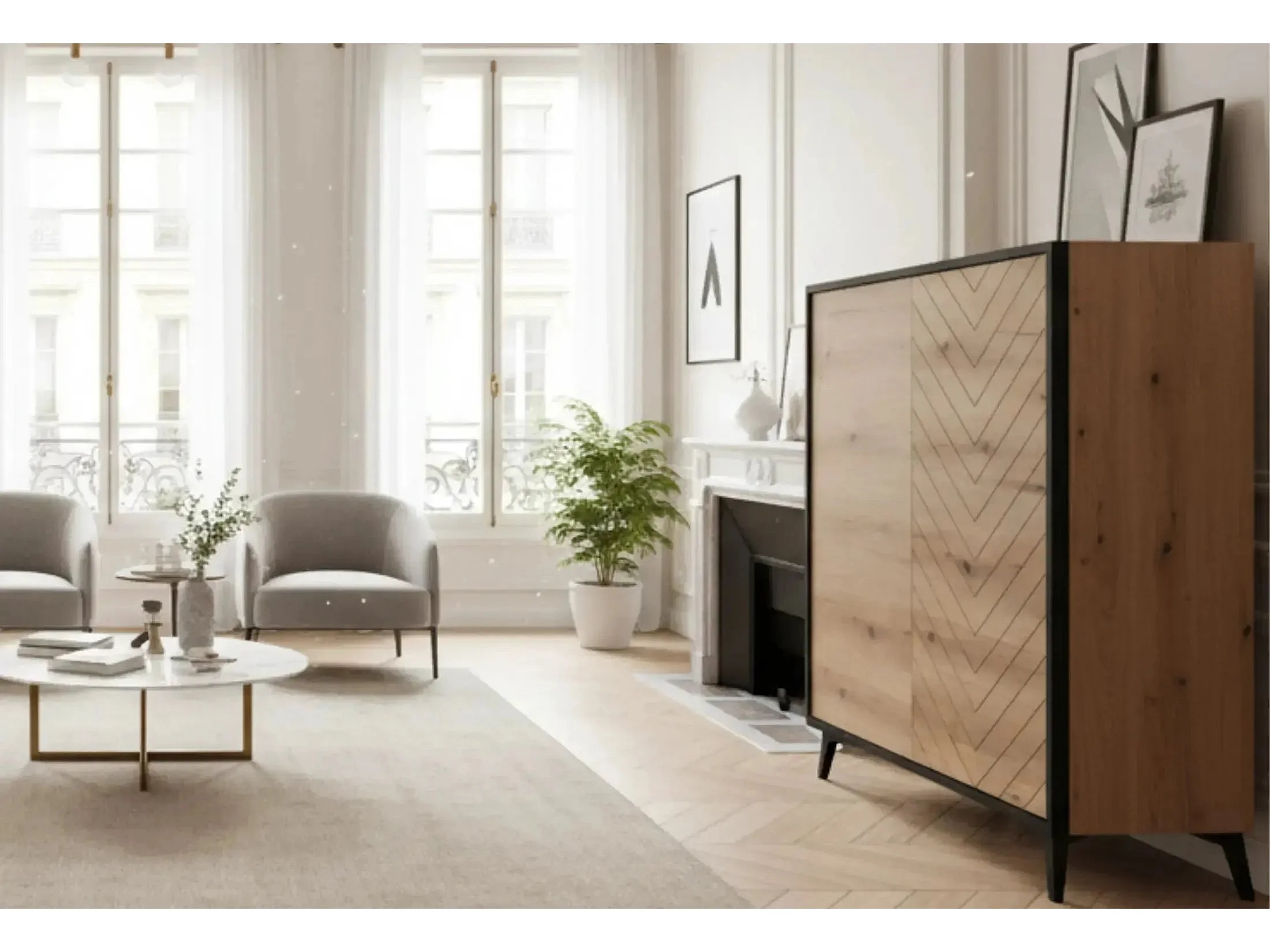 ALICE - Commode 2 portes en bois 100cm - Marron et noir