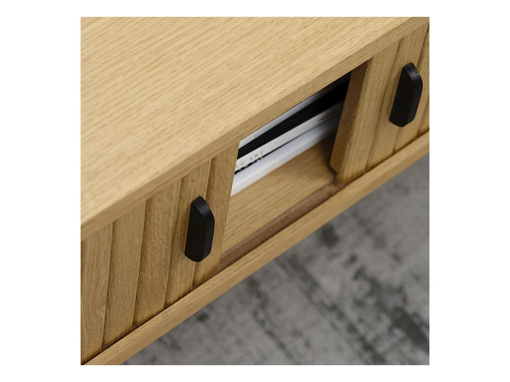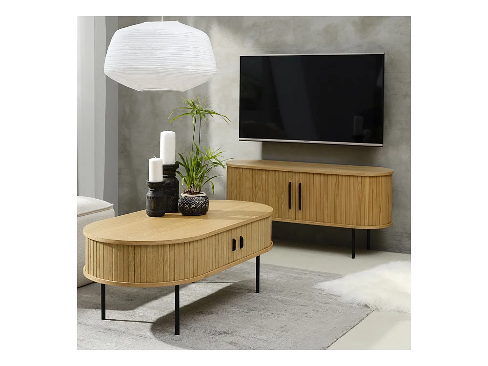 Alicia - Table basse 2 portes aux angles arrondis en bois et métal - Bois clair