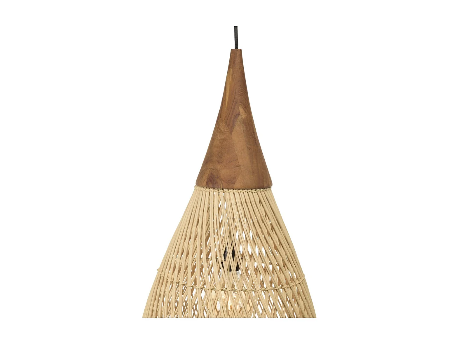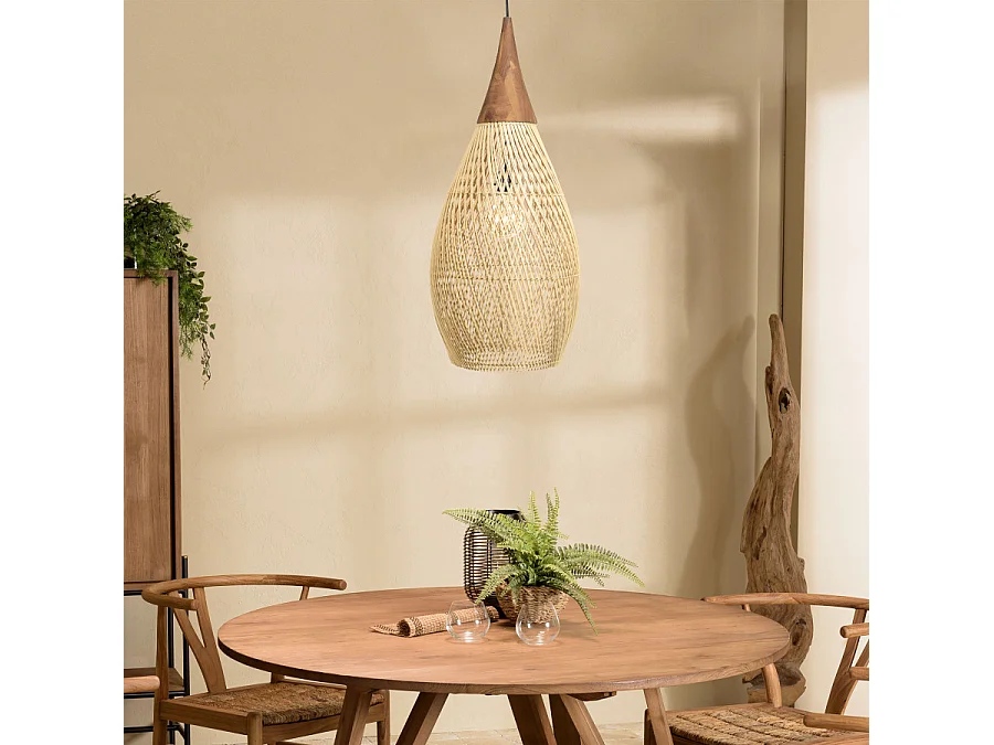 SIXTINE - Suspension 'goutte' 35x35cm bois de teck et rotin naturelle