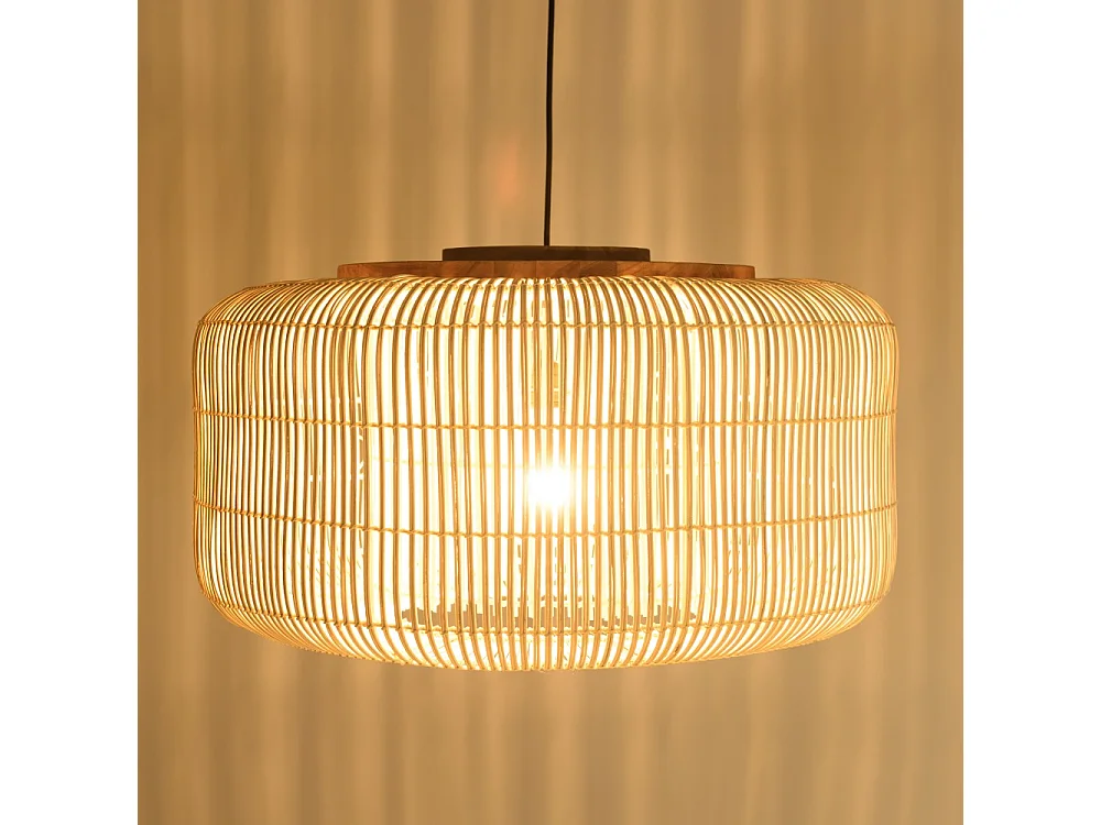 SIXTINE - Suspension 'seau' 76x76cm bois de teck et rotin naturelle