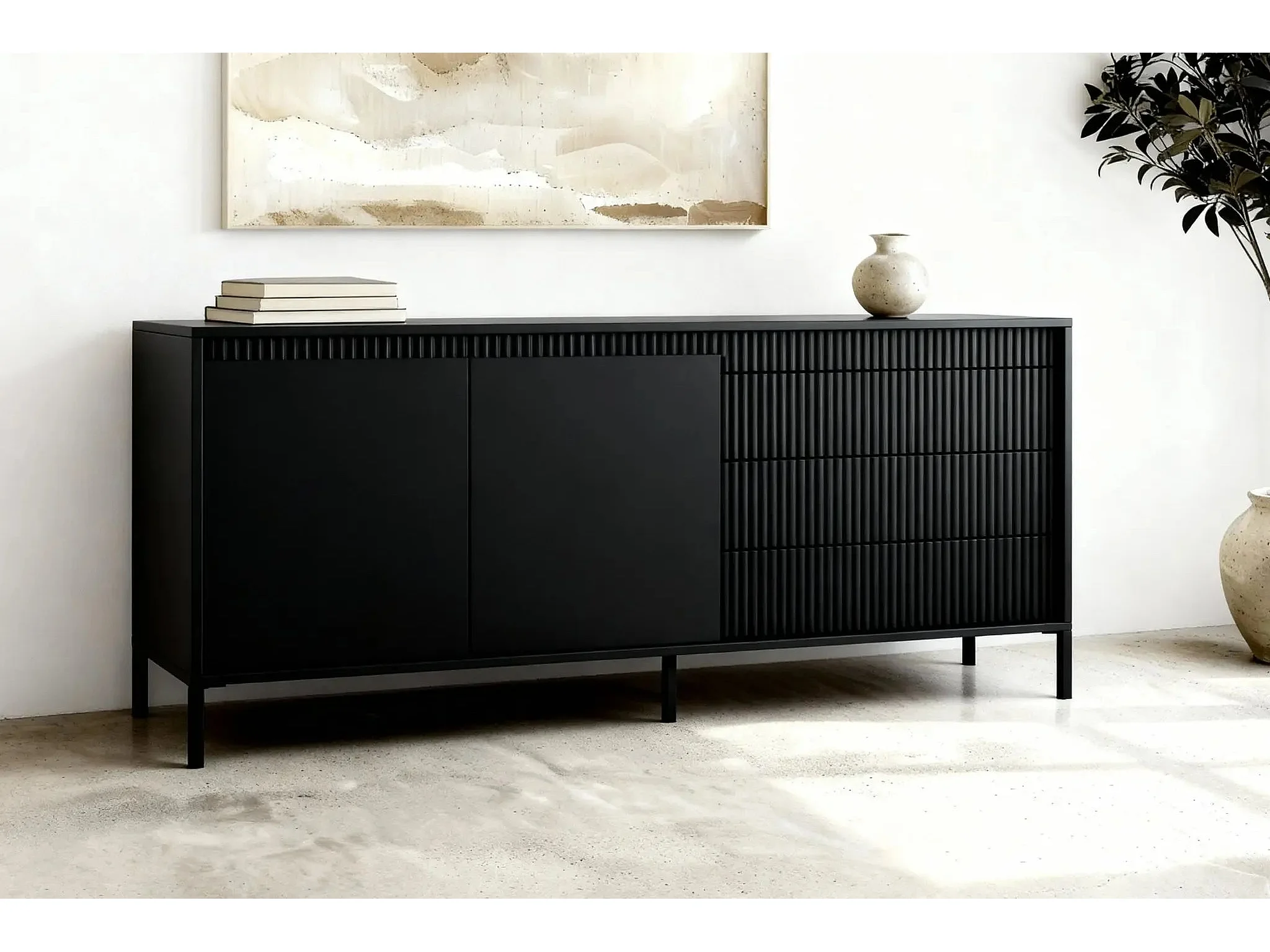 ALINA - Buffet 187cm pieds en métal - Noir