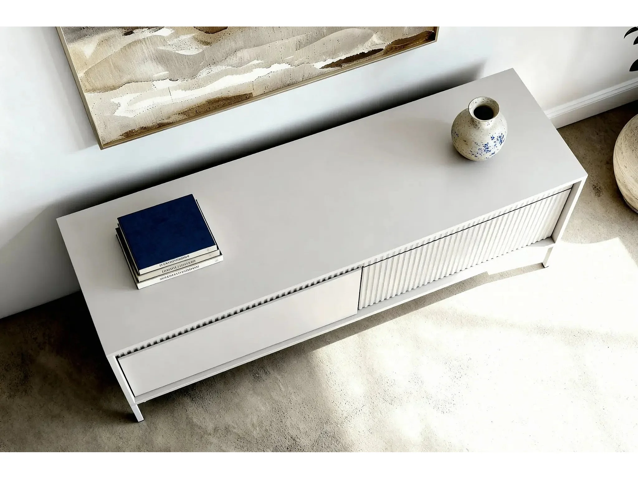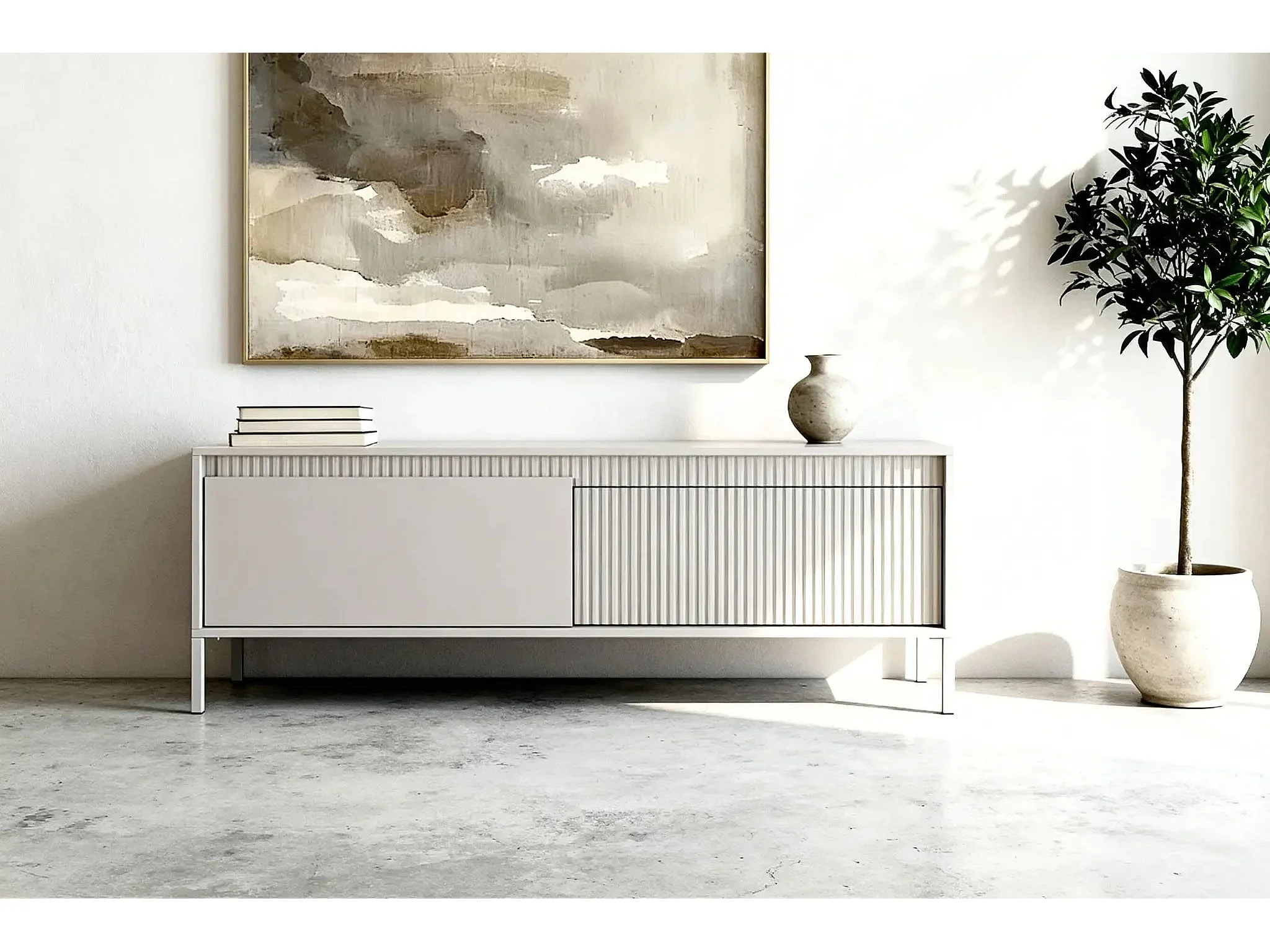 ALINA - Meuble TV 153cm pieds en métal - Beige