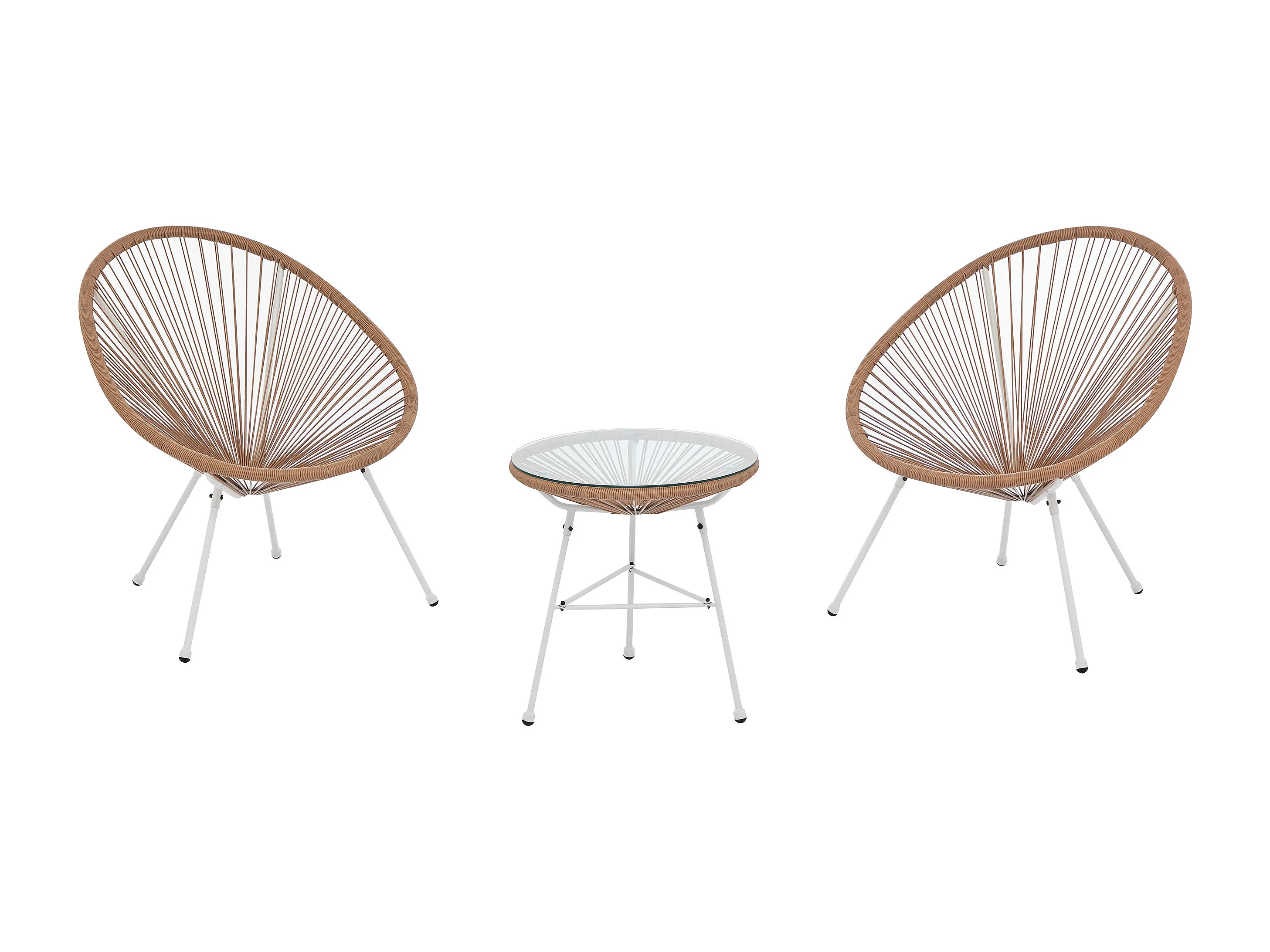 Salon de jardin en fils de résine tressés : 2 fauteuils et une table - Naturel clair - ALIOS III de MYLIA