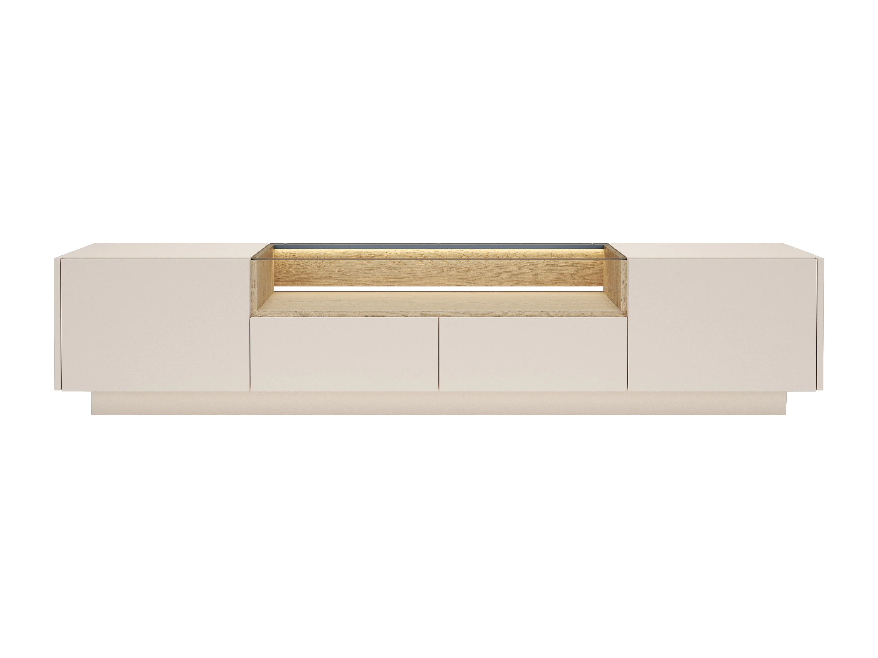 Meuble TV 2 portes, 2 tiroirs et 1 niche avec LEDs - Beige et naturel clair - ALIVENTO