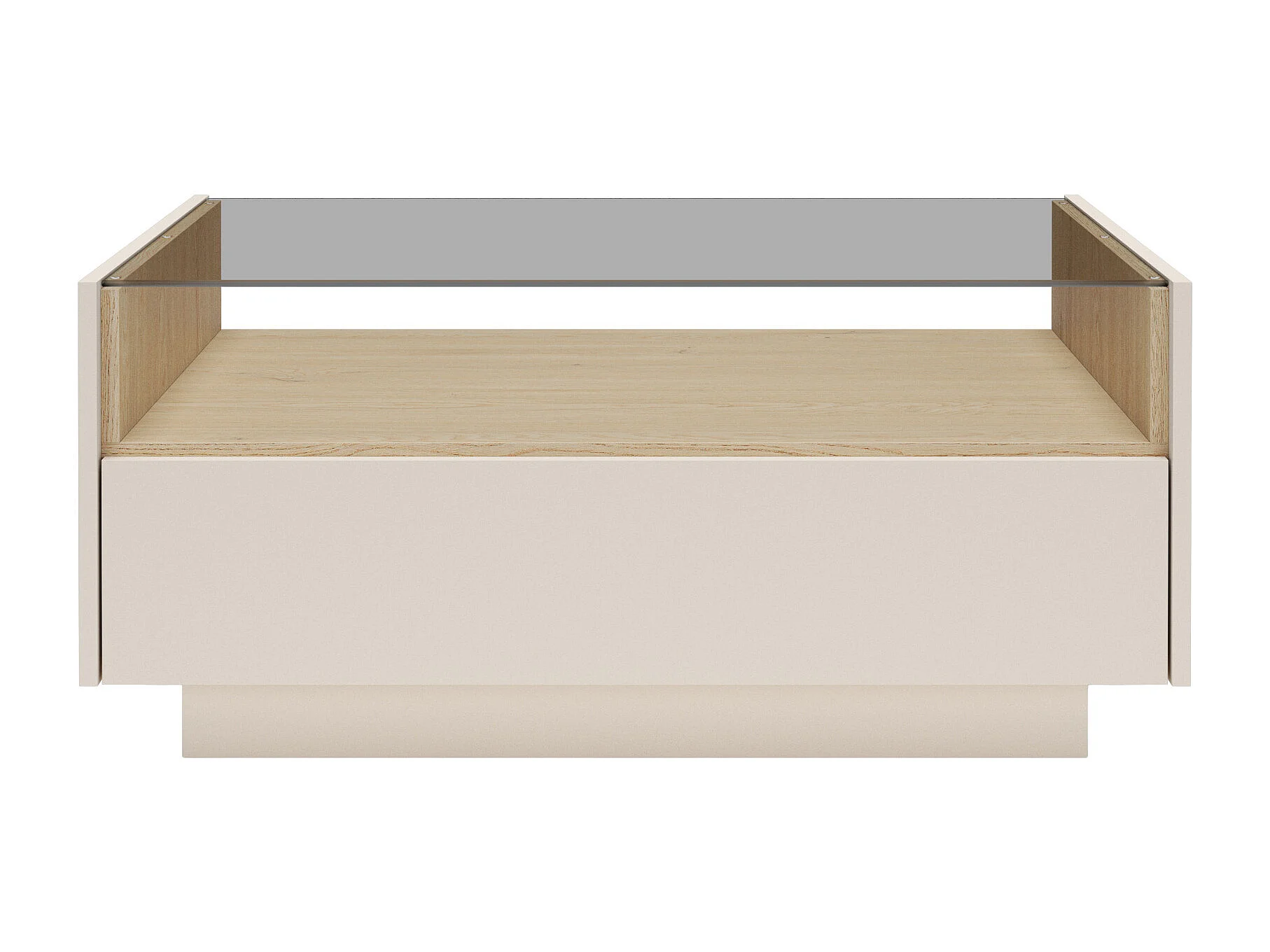 Table basse avec 2 tiroirs et 1 niche - Beige et naturel clair - ALIVENTO