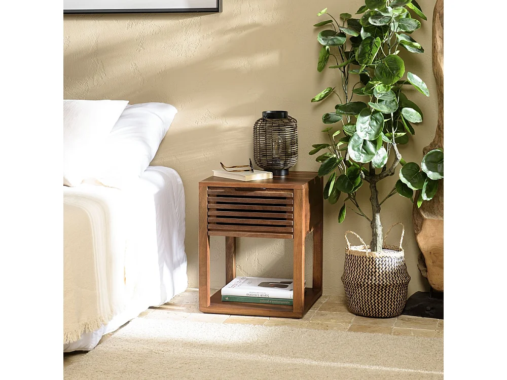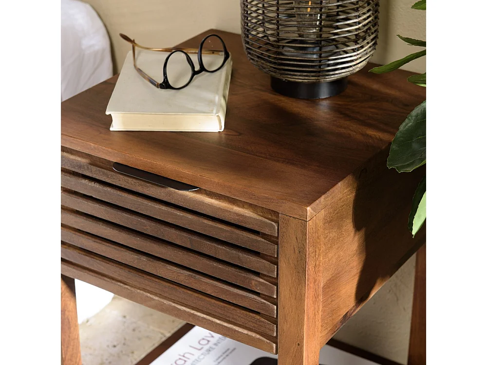ALIX - Table de chevet en bois de manguier 1 tiroir ajouré