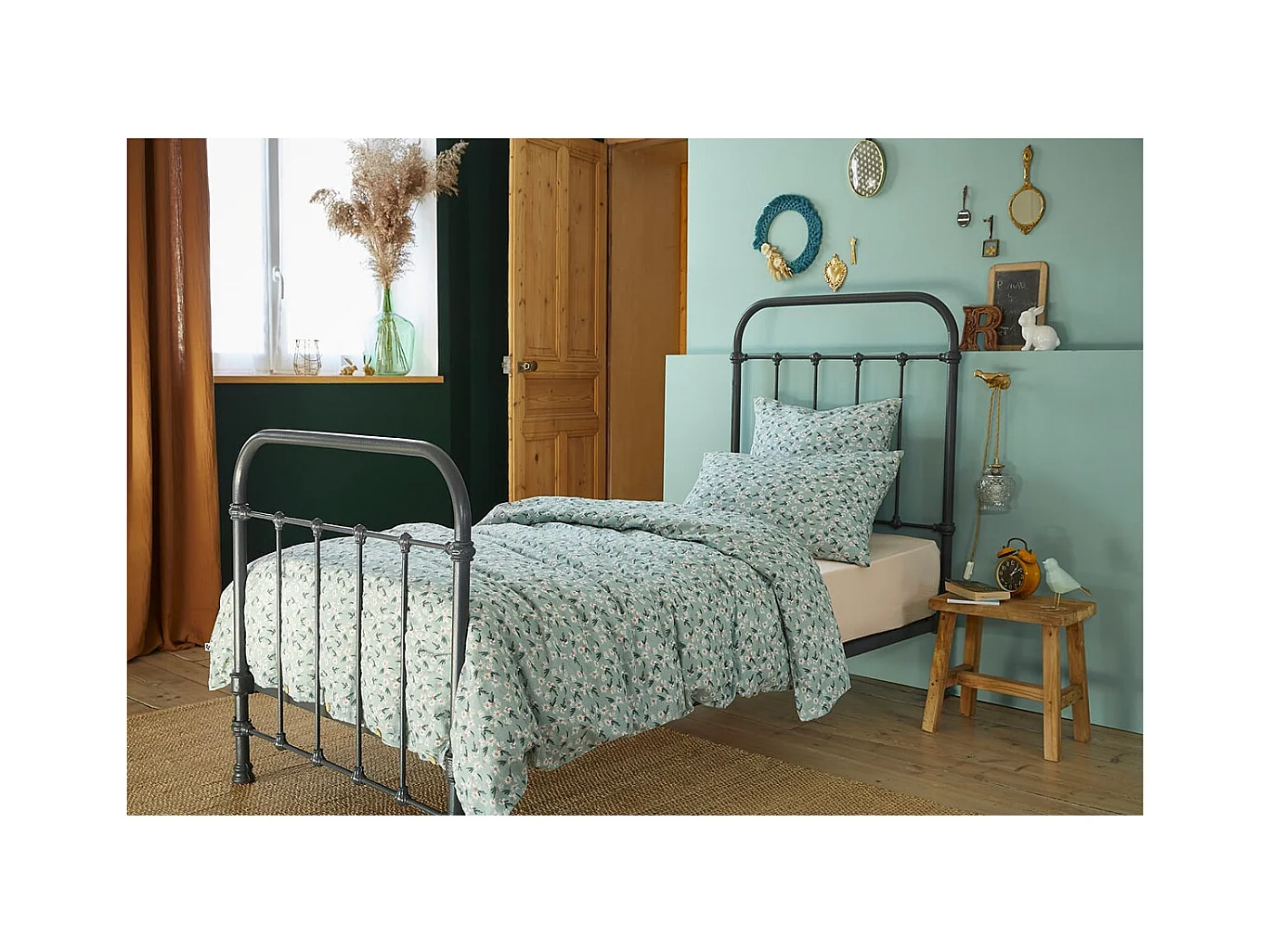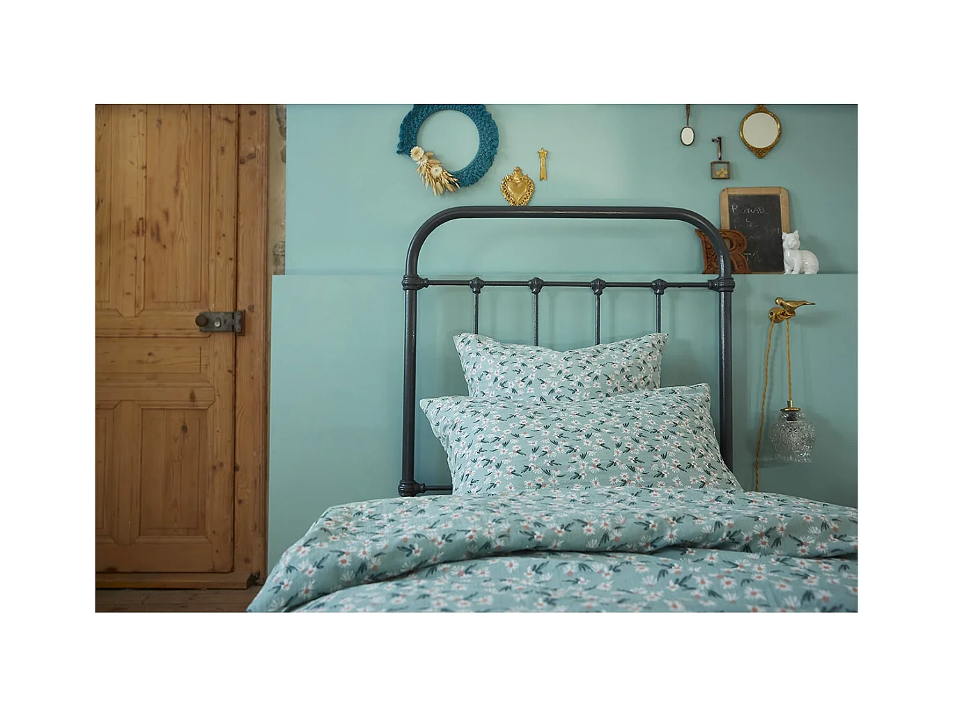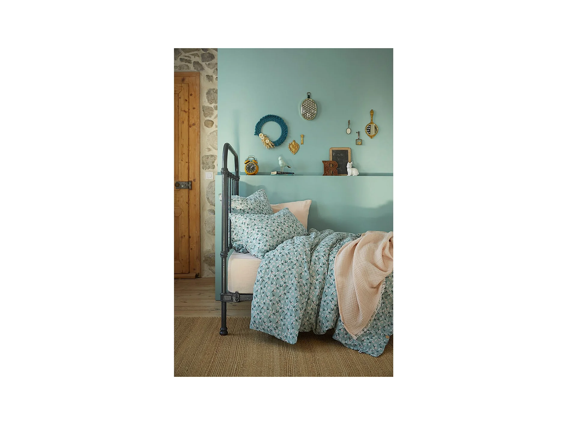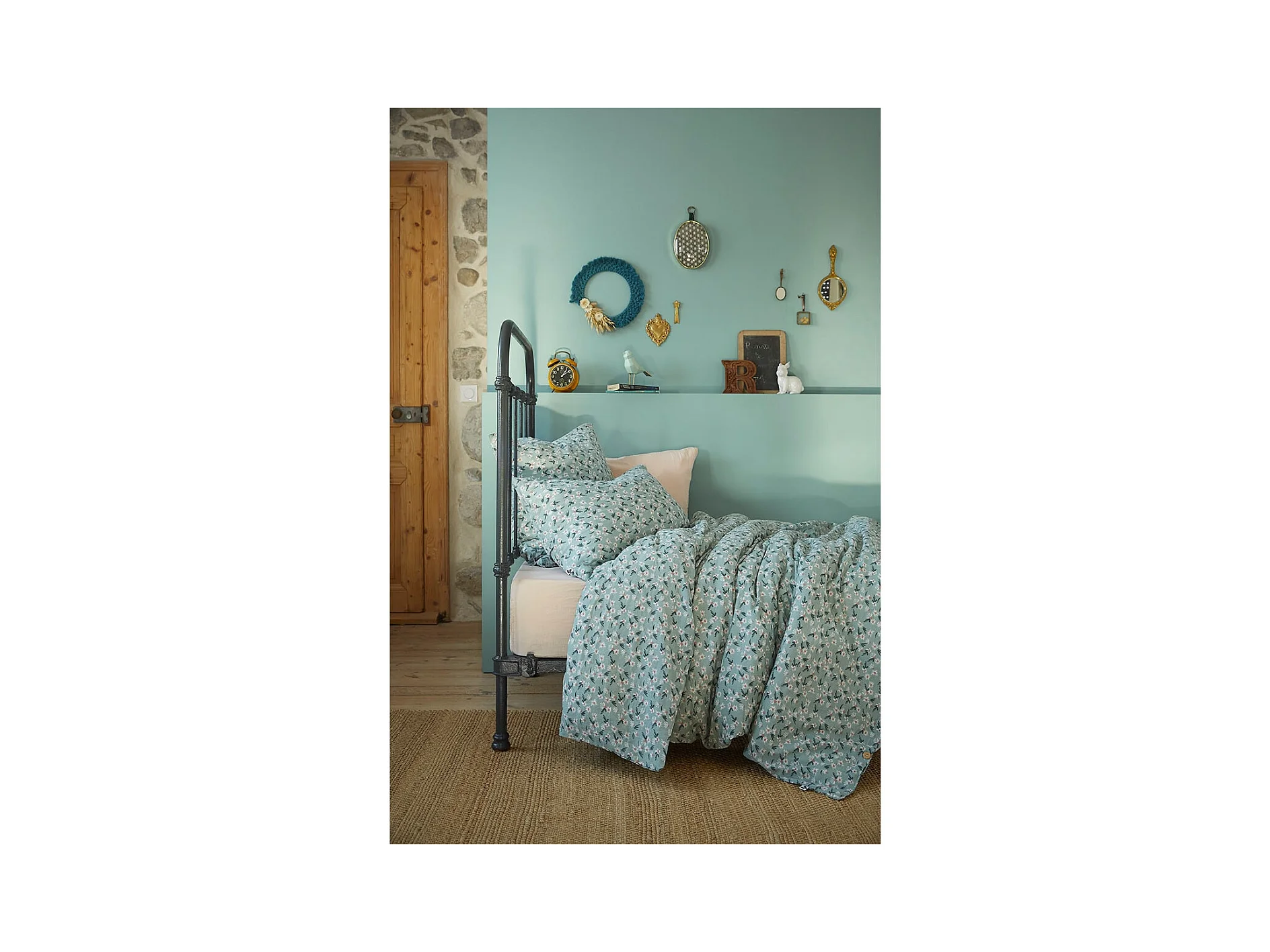 ALLISON - Housse de Couette 140x200cm Gaze de Coton Coloris Bleu Motifs Fleurs