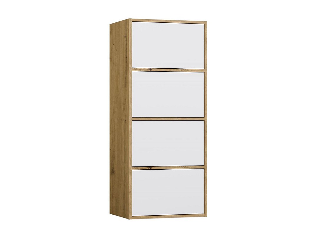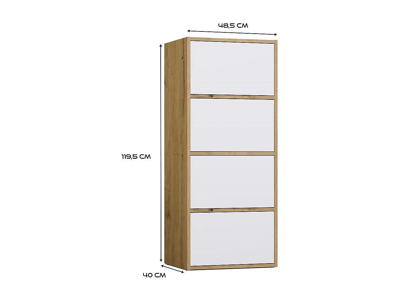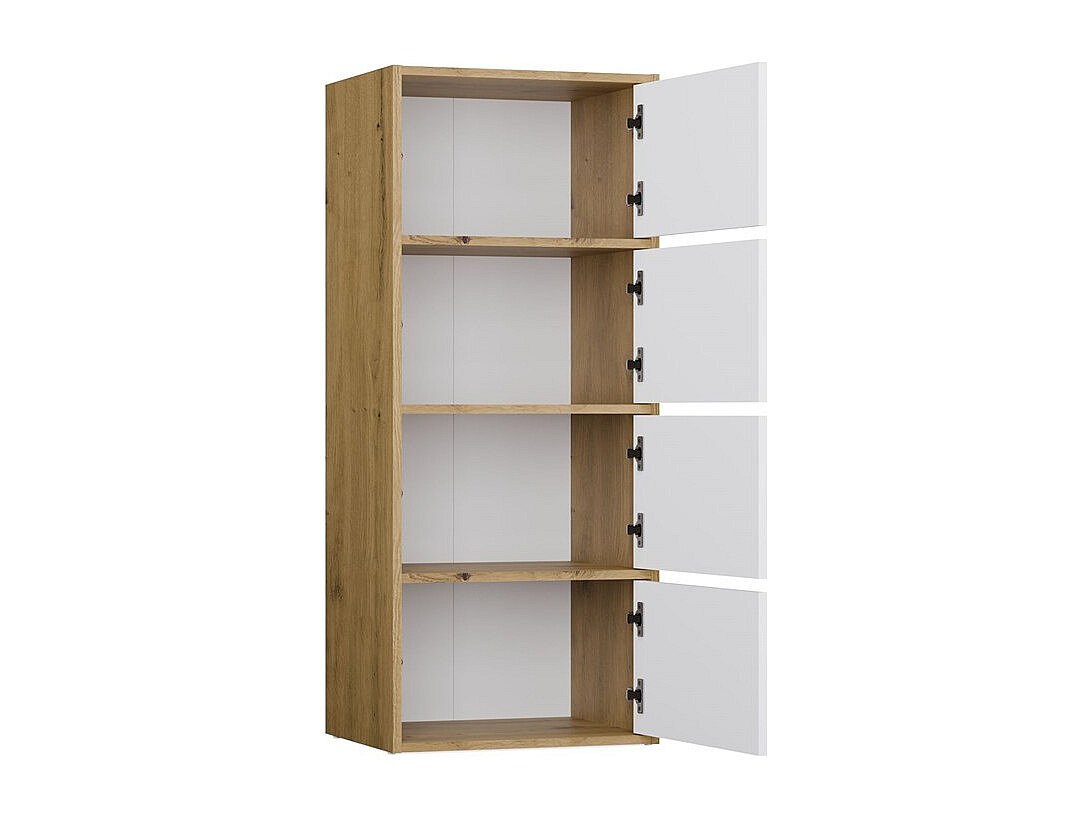 ALMA - Commode haute de rangement 4 portes avec ouverture tip-on - Artisan et Blanc