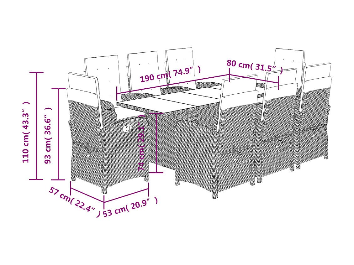 Almkerk Ensemble à manger de jardin 9 pcs coussins gris résine tressée