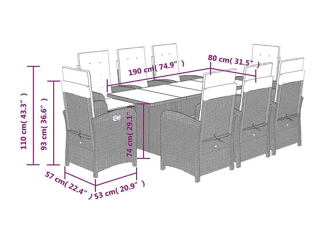 Almkerk Ensemble à manger de jardin et coussins 9 pcs gris clair rotin