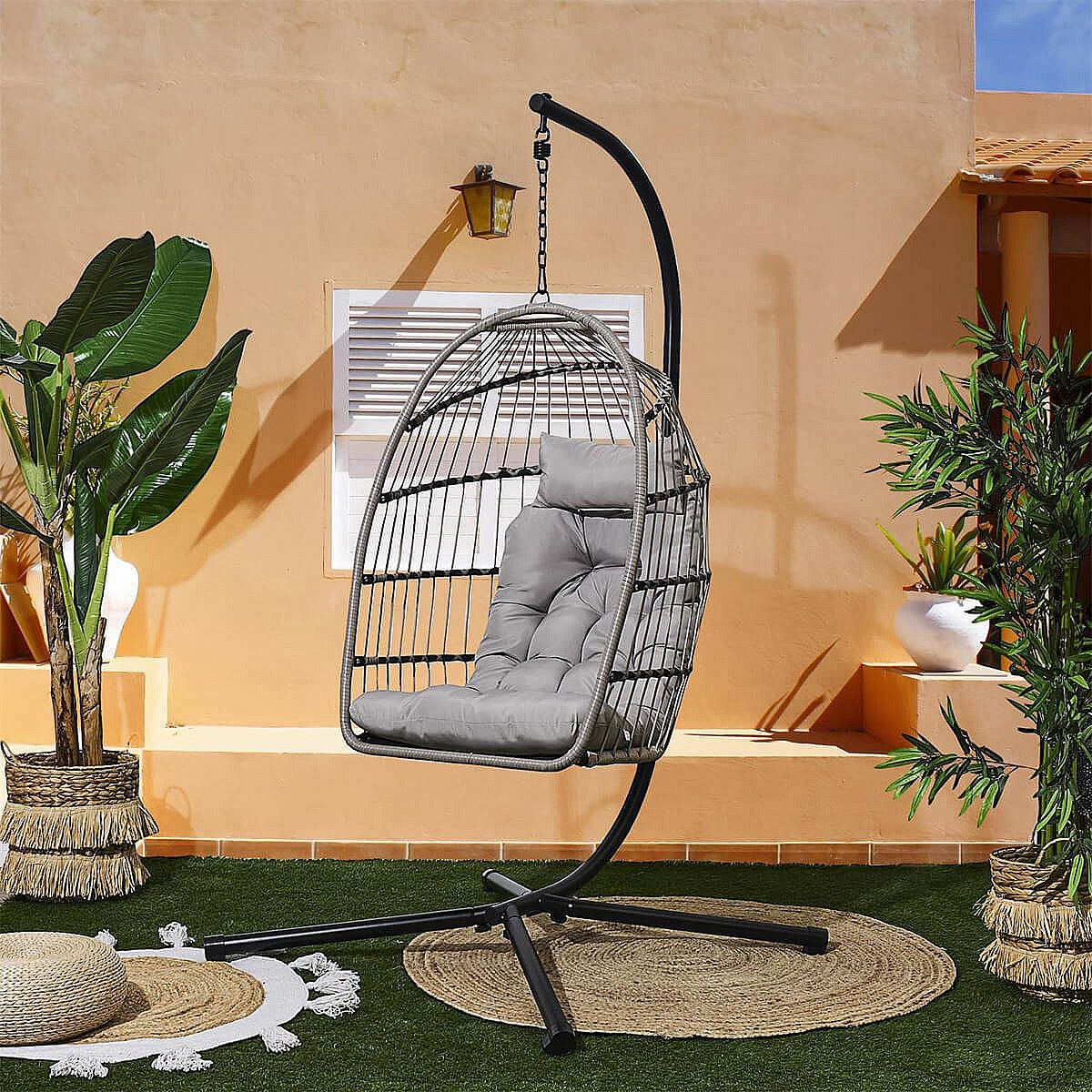 ALOHA - Fauteuil Suspendu Gris Structure en Métal et Plastique avec Coussins