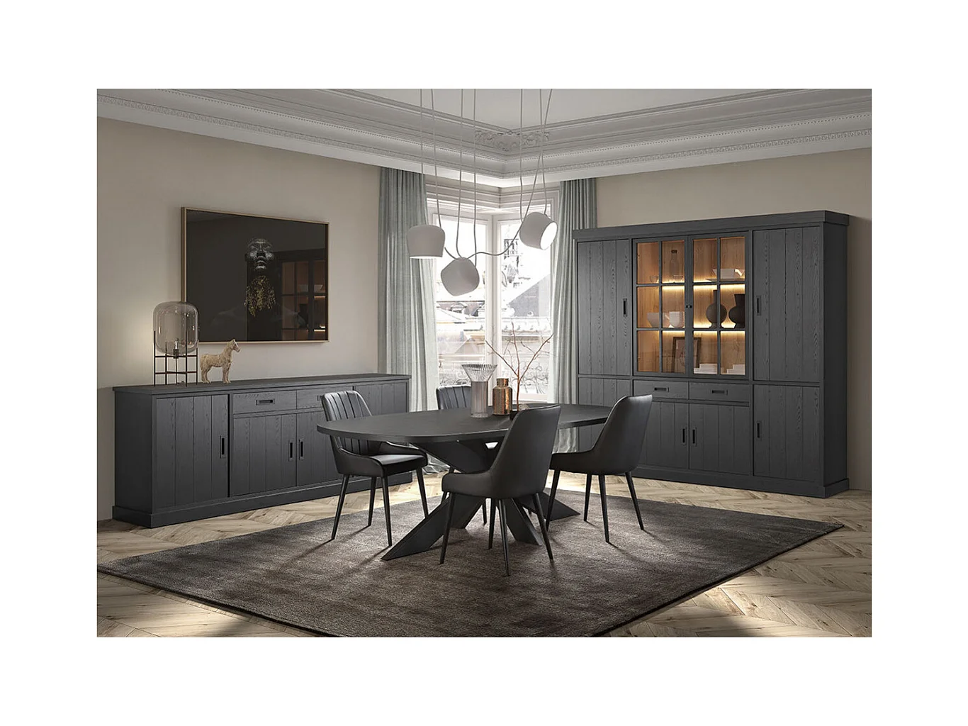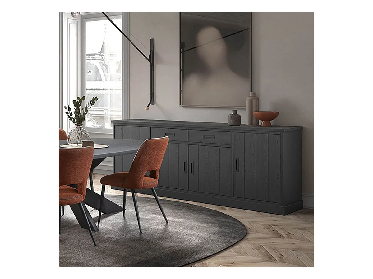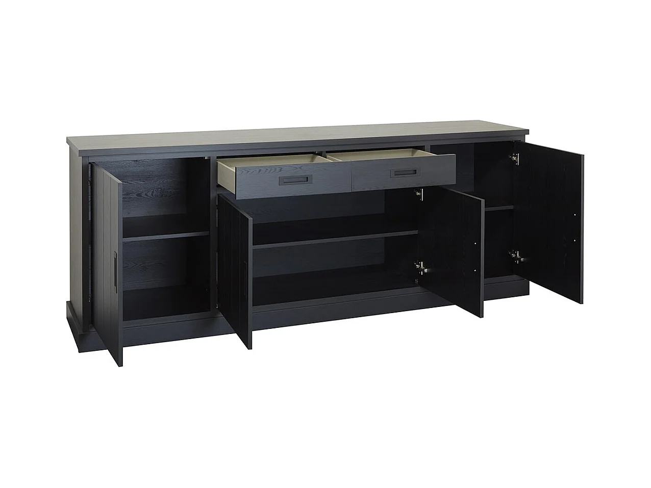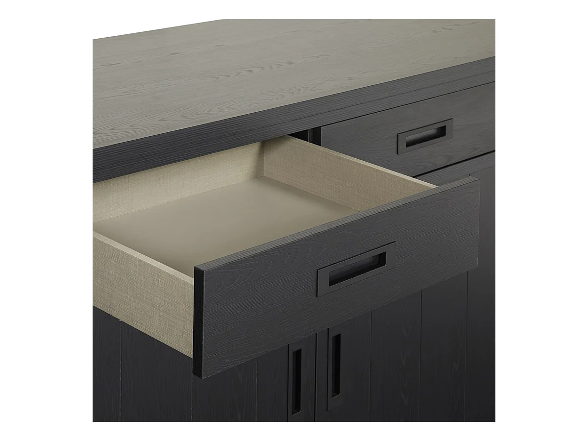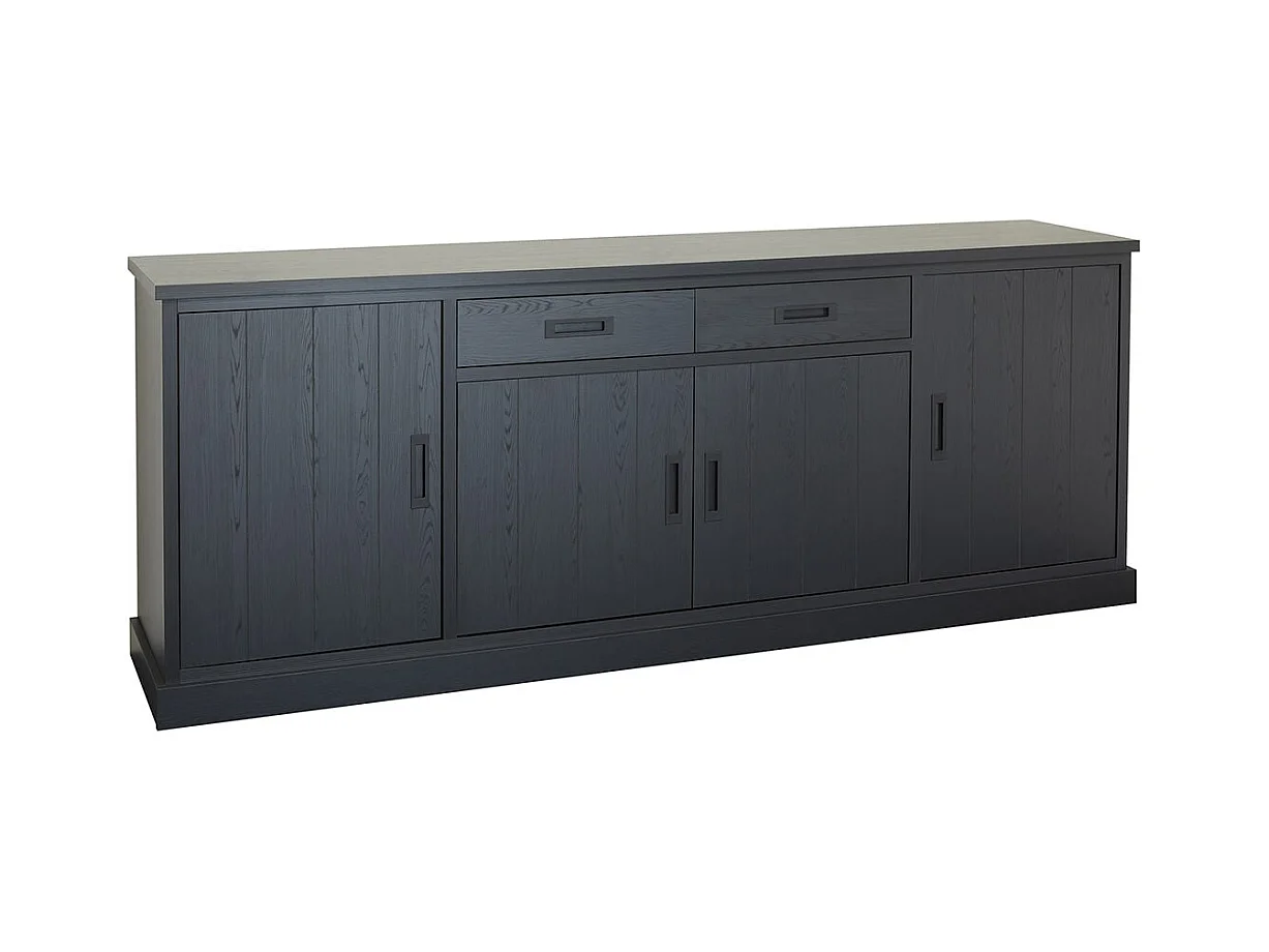 ALPHA - Buffet 4 Portes 2 Tiroirs Aspect Bois Noir