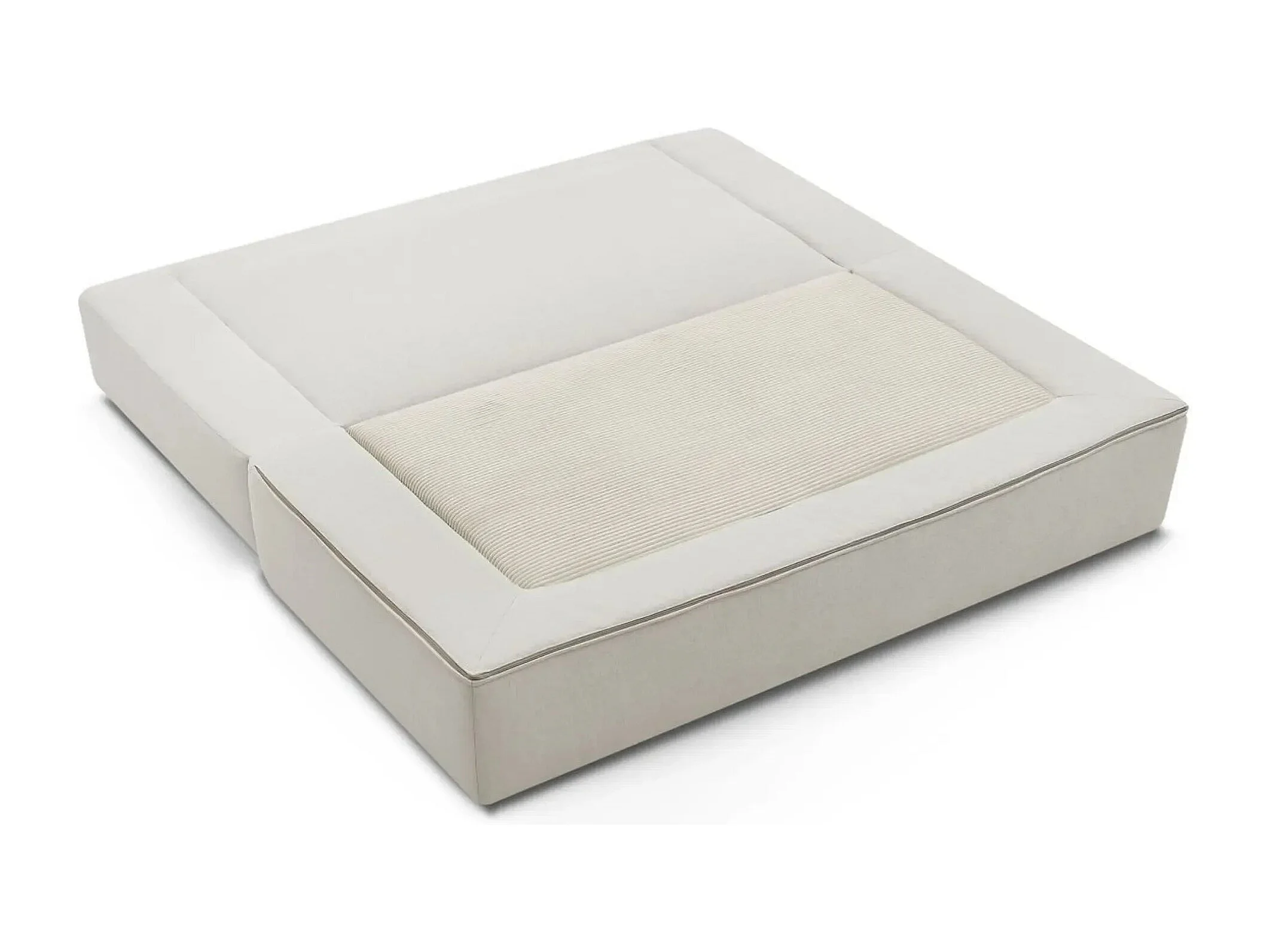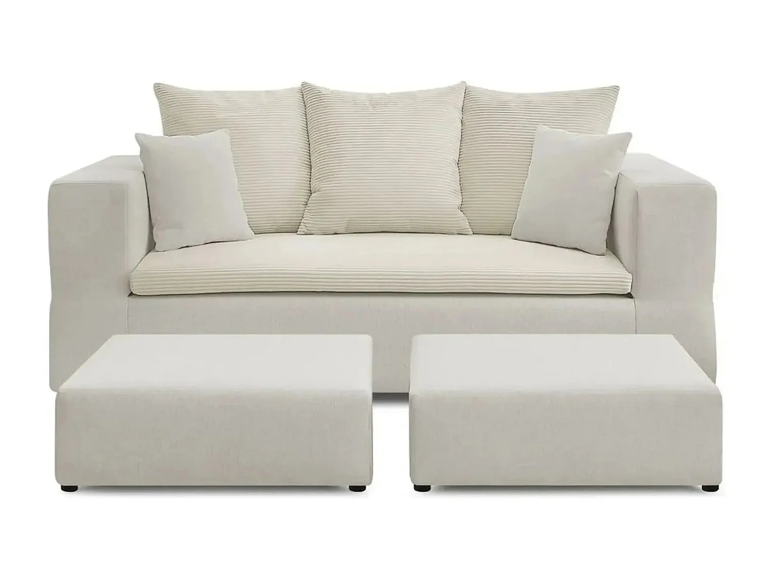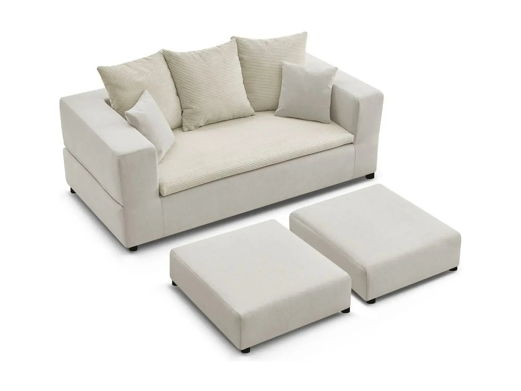 AMBRE - Canapé droit convertible bi matière avec deux poufs 4 places - Beige