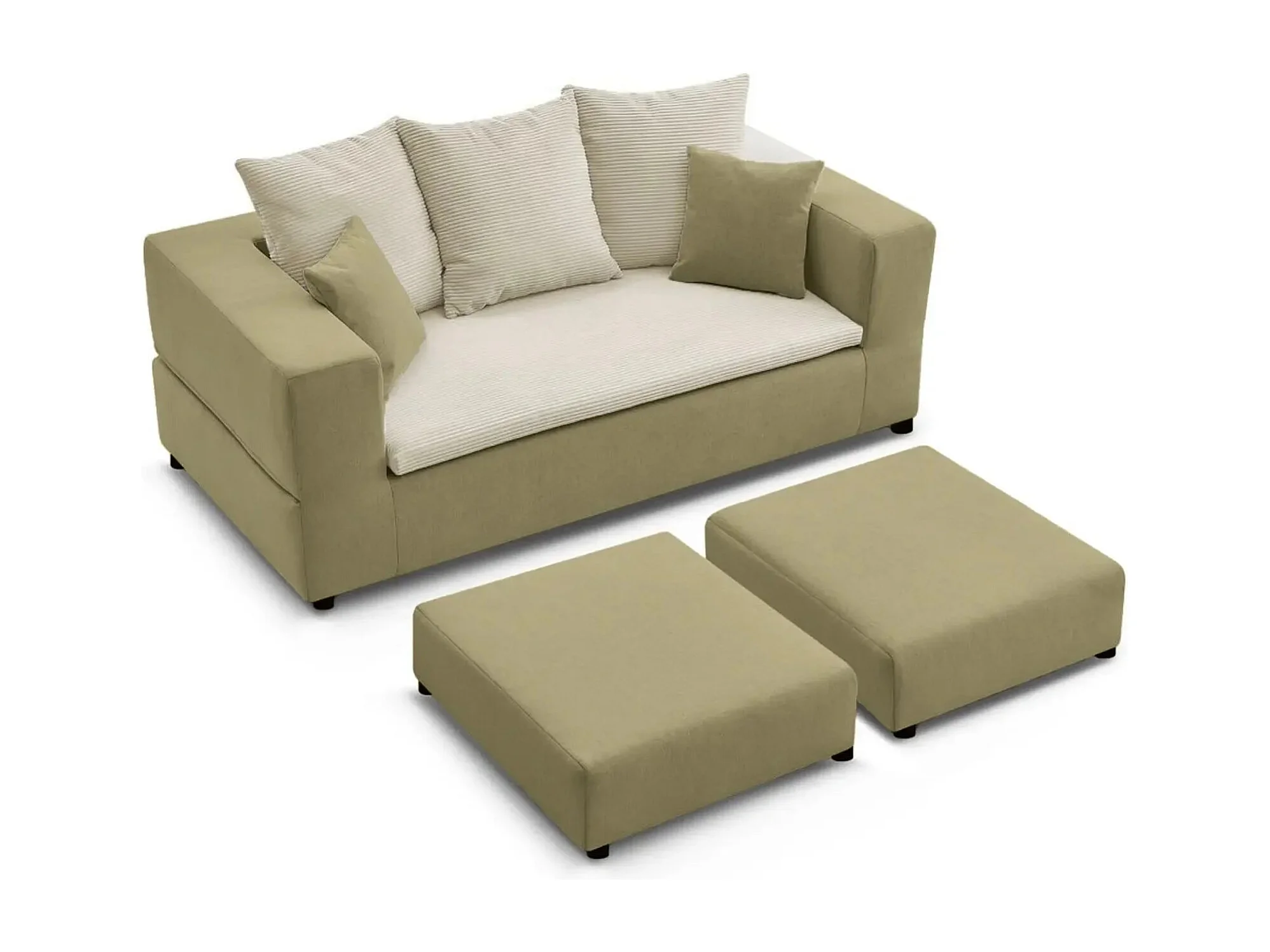 AMBRE - Canapé droit convertible bi matière avec deux poufs 4 places - Vert