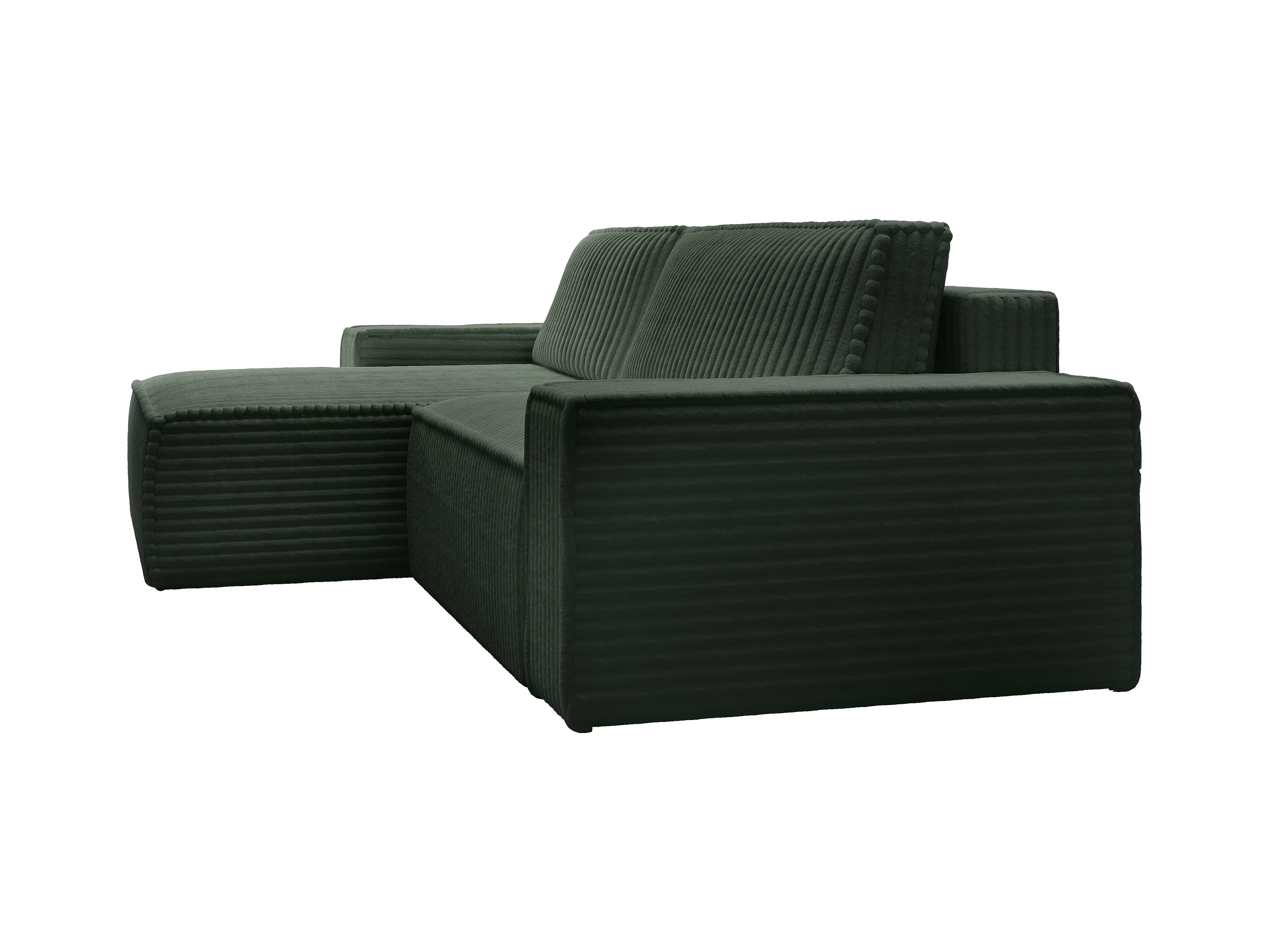 Canapé d'angle gauche convertible en velours côtelé grosses côtes vert sapin AMELIA