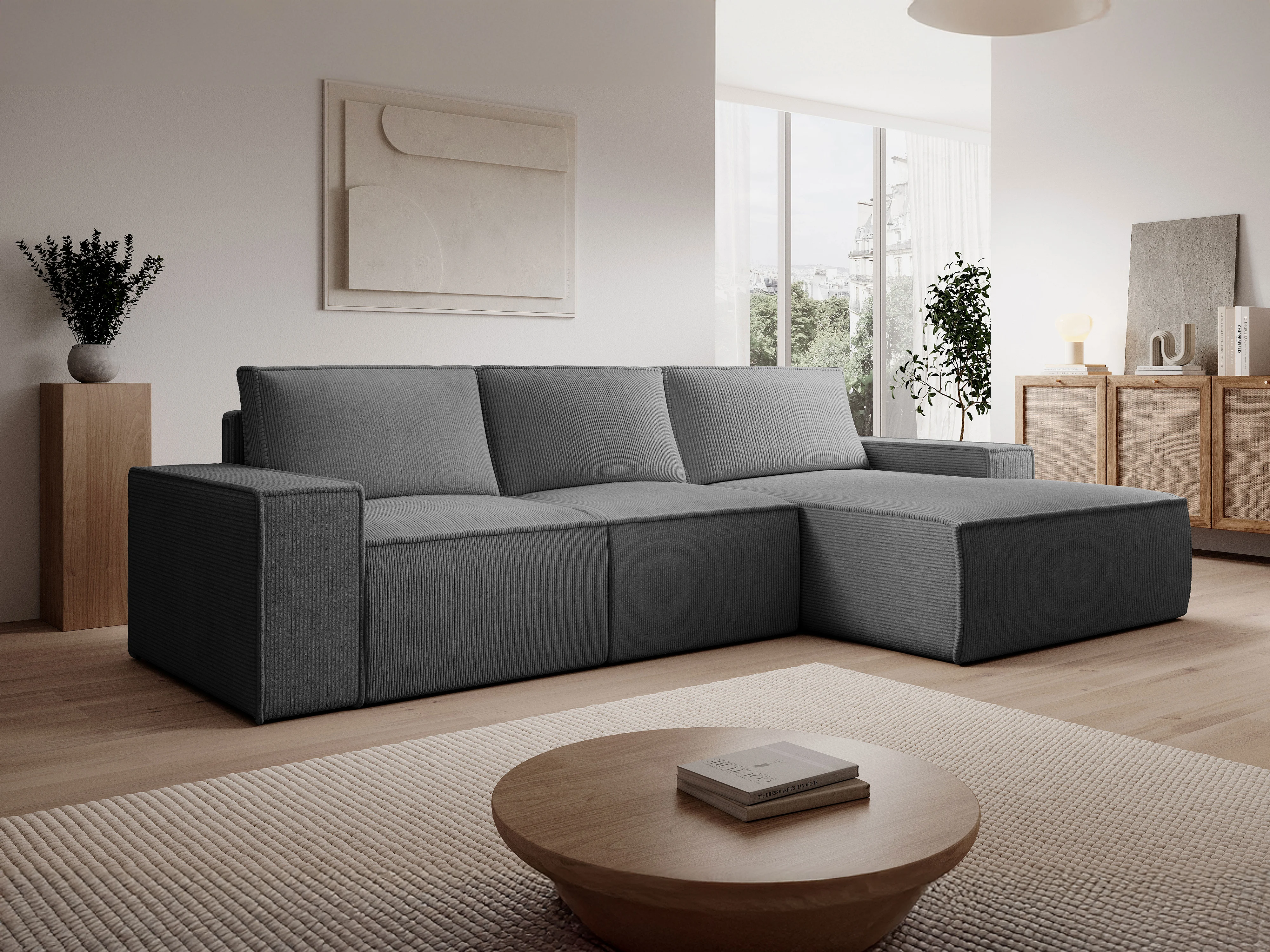 Grand canapé d'angle droit convertible en velours côtelé gris anthracite AMELIA